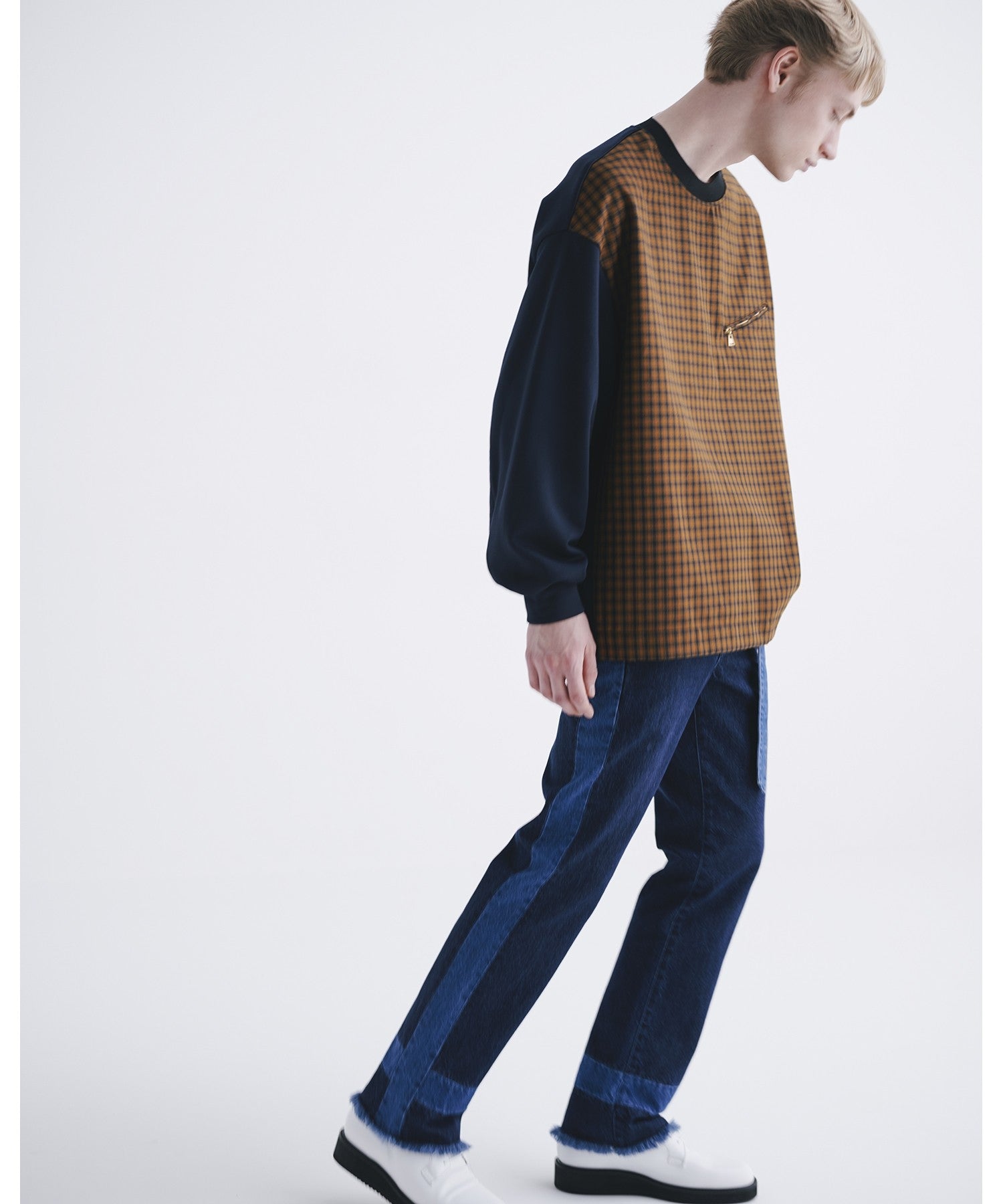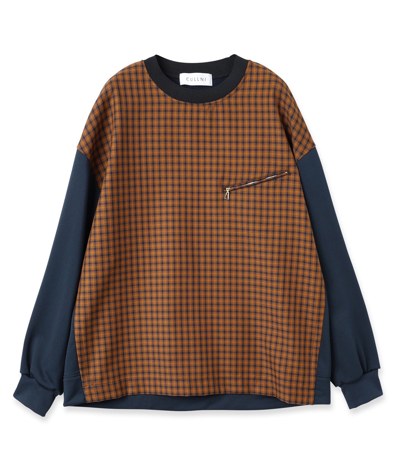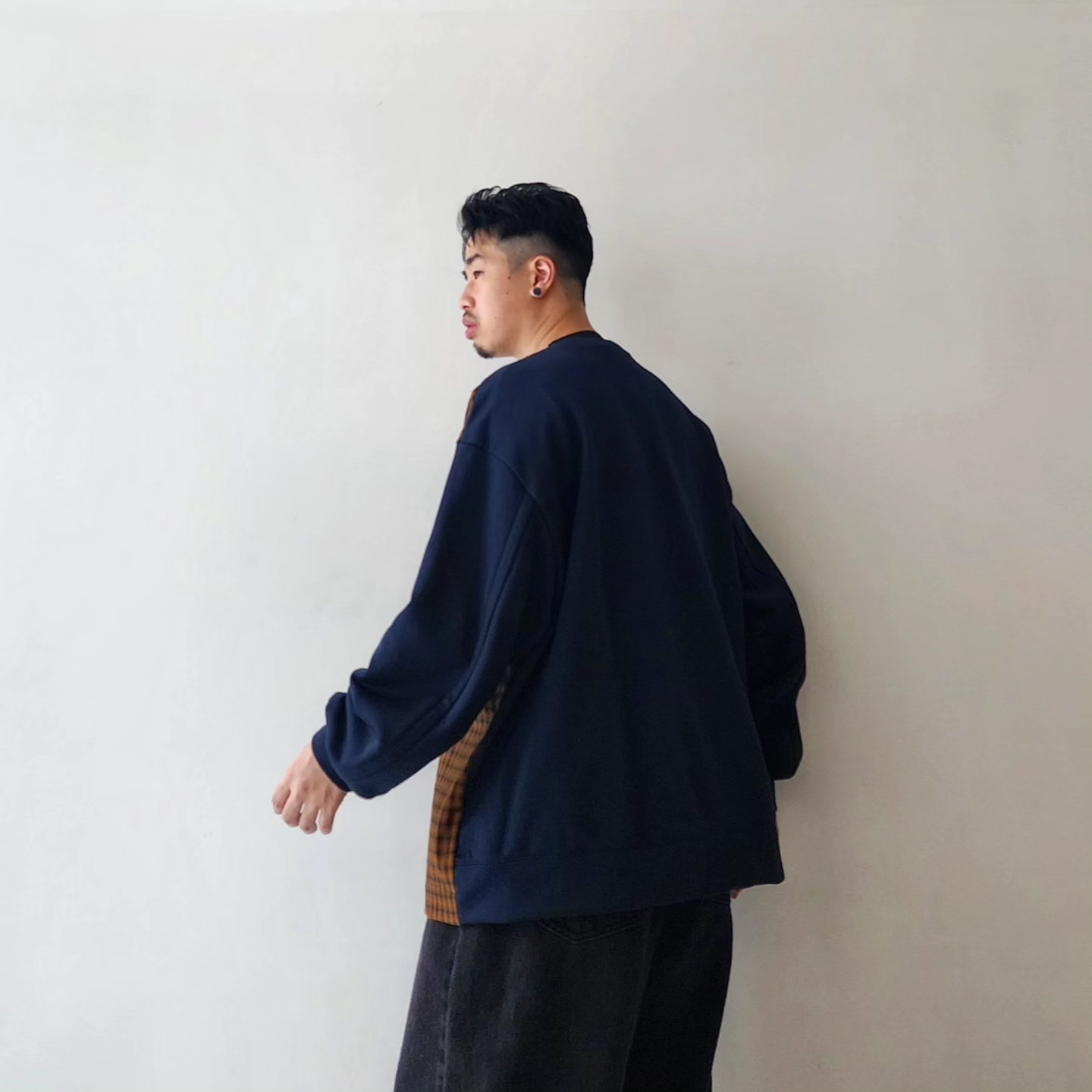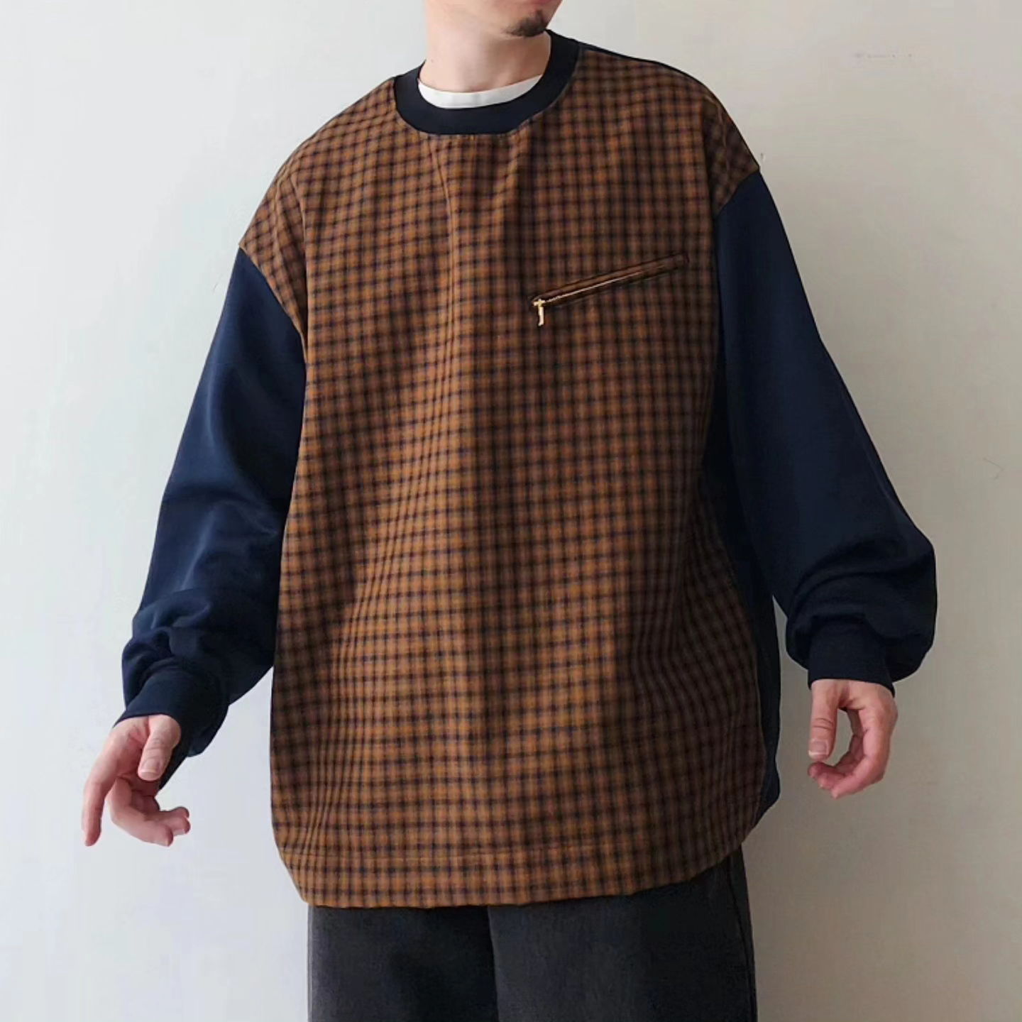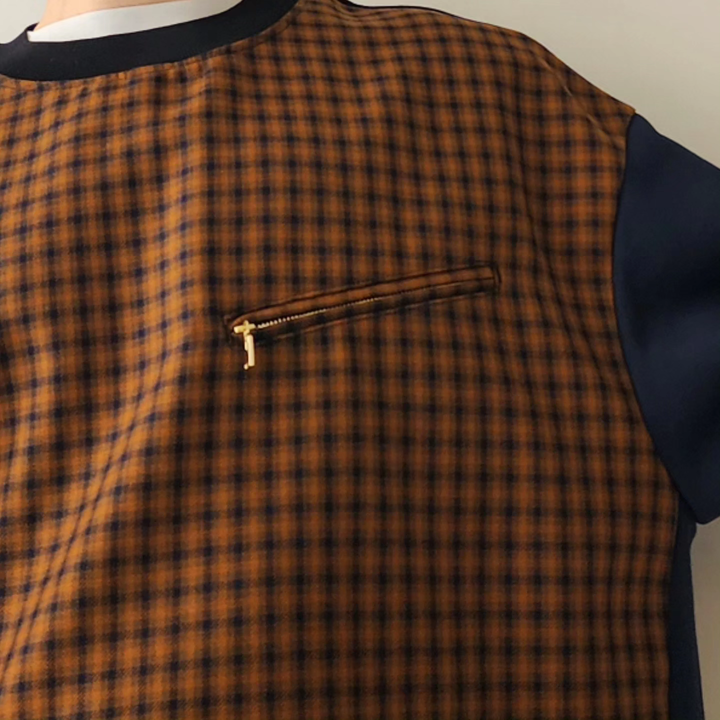 -Combination design of gun club check made from Shetland and recycled polyester and puffy twill fleece.