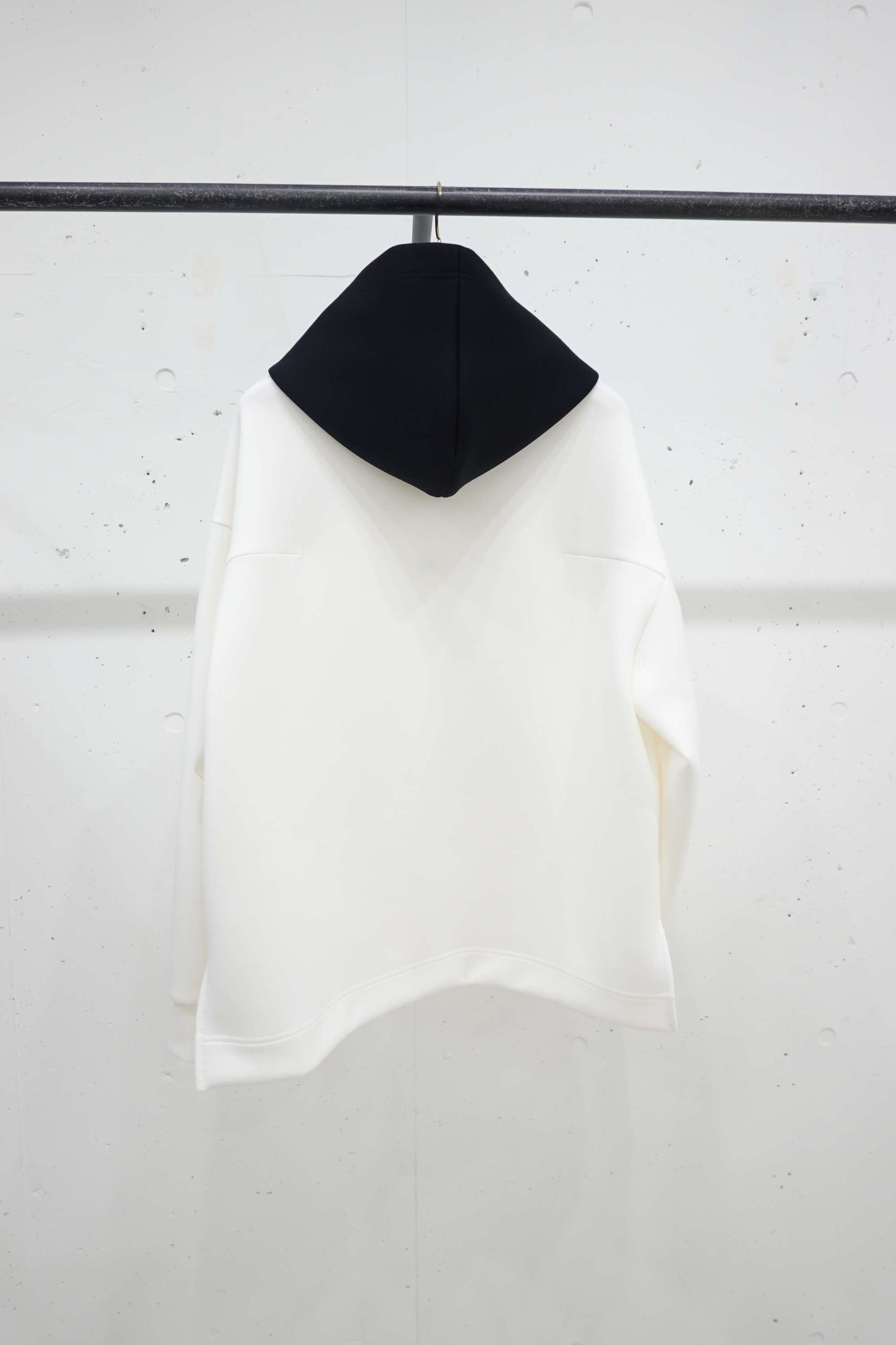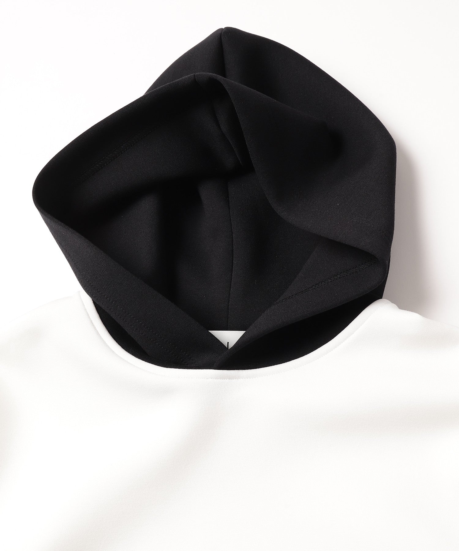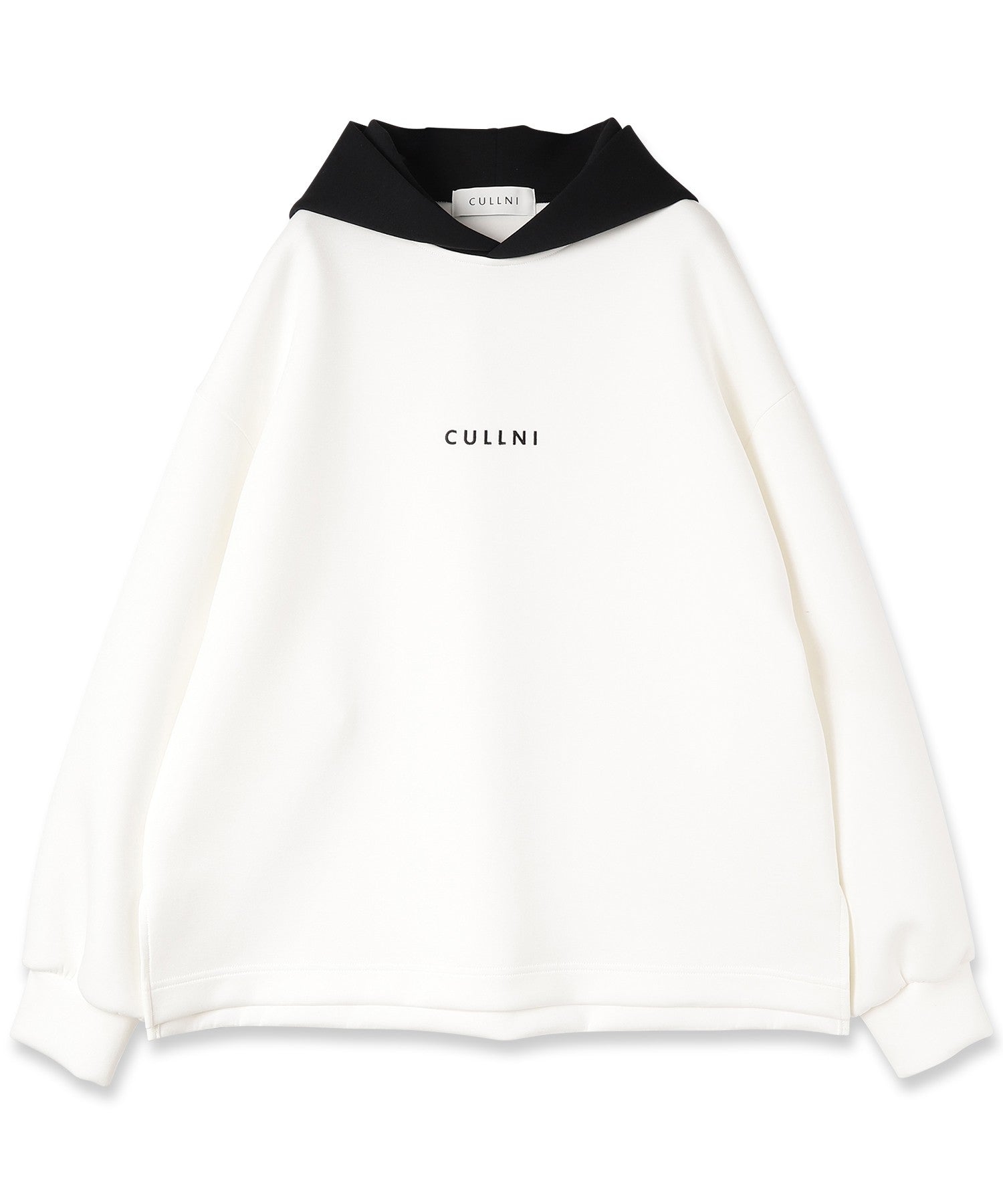 -A hoodie made of thick cardboard jersey with a bulging feel. The side slits on the body and the loose silhouette of the sleeves make this a simple yet elegant piece. A hoodie made from thick, puffy cardboard jersey. A classic item with the CULLNI logo embroidered on it. The siles with side slits on the body, etc. are simple yet elegantly finished with attention to detail.