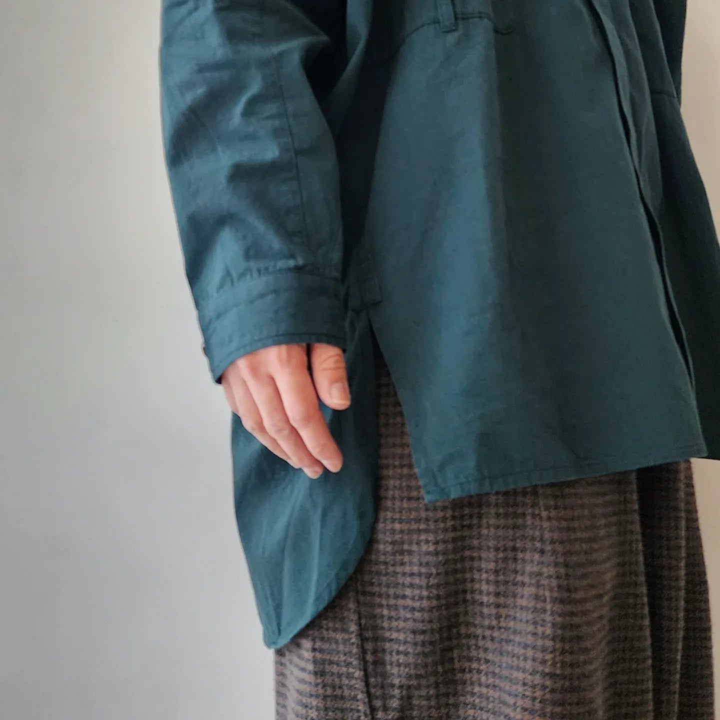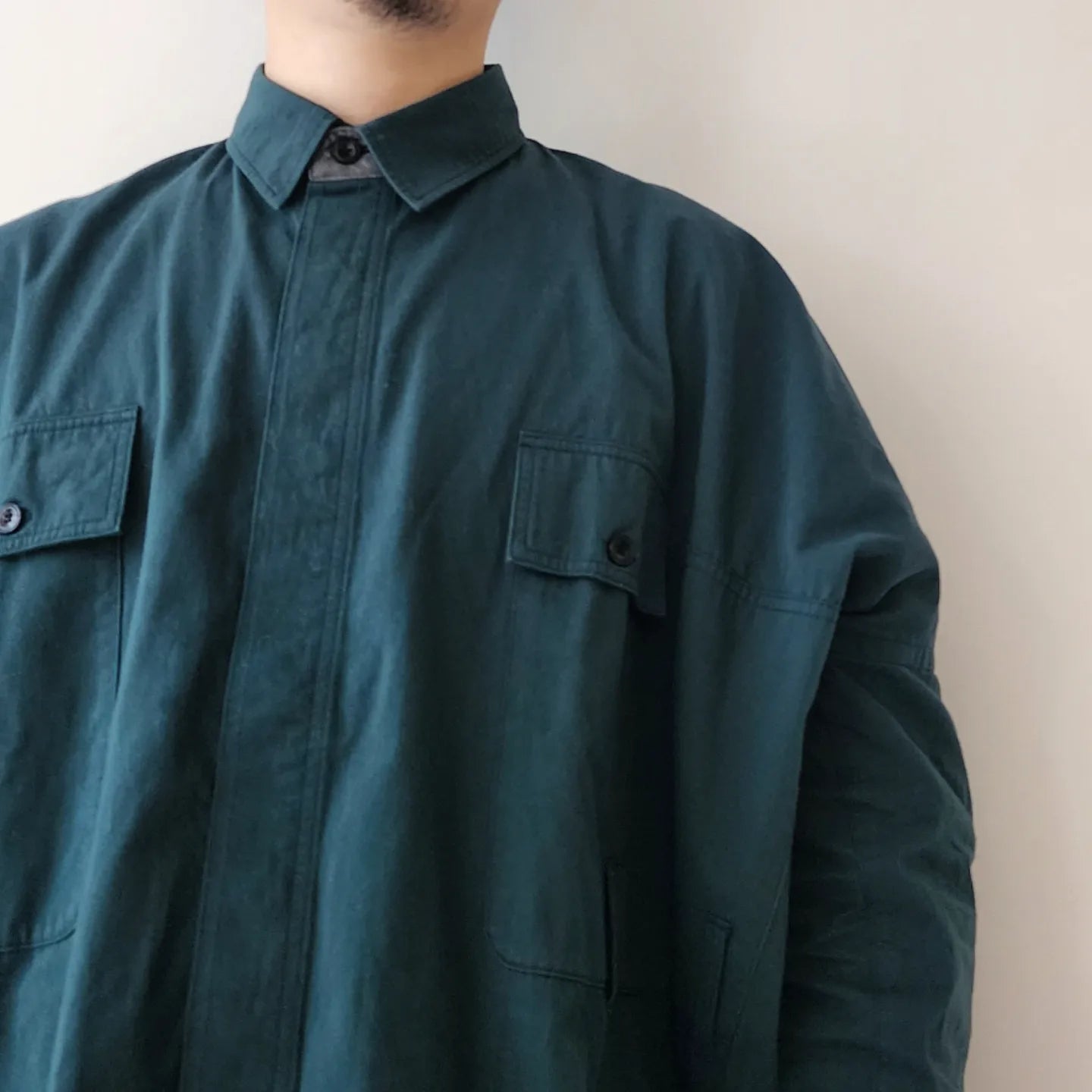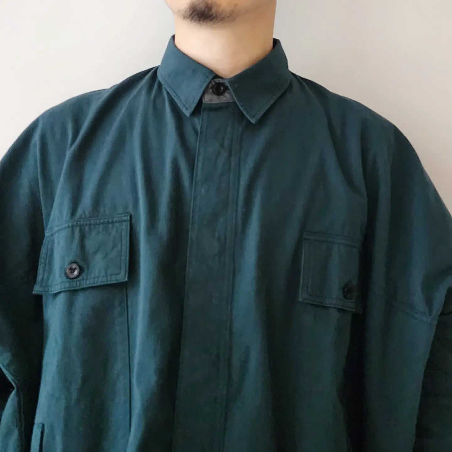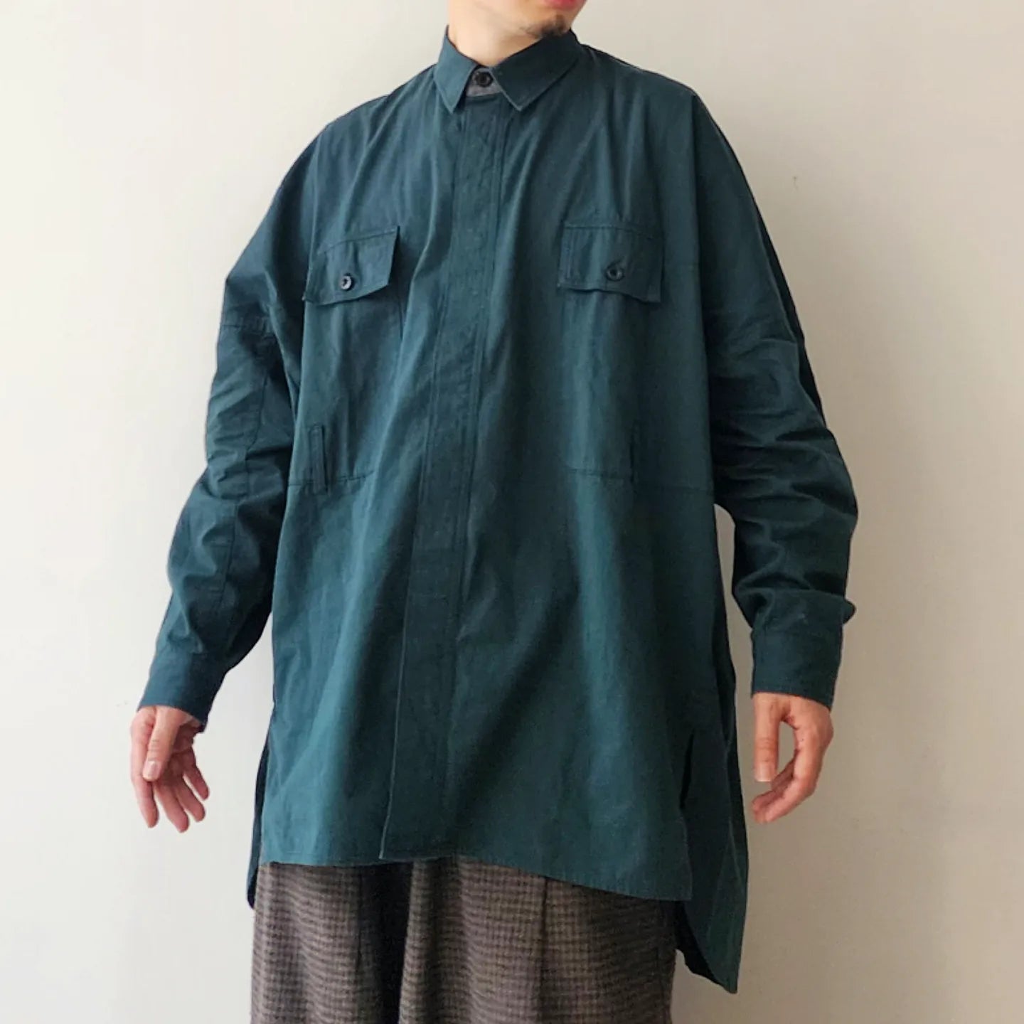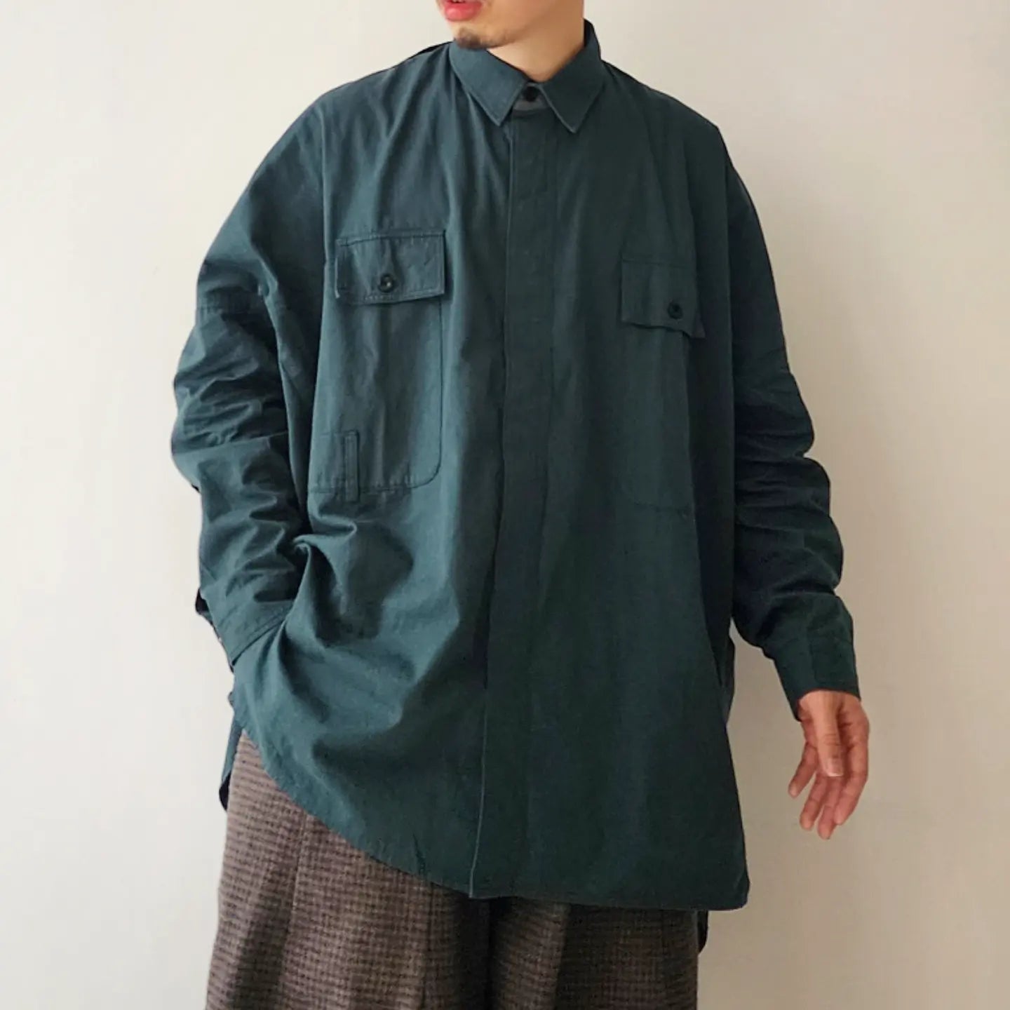 - Beautiful stitching similar to a dress shirt with fine count and fine needles. The contrast between the unique pattern work and utility design is exquisite and good design, and it is proposed as a cardigan shirt.