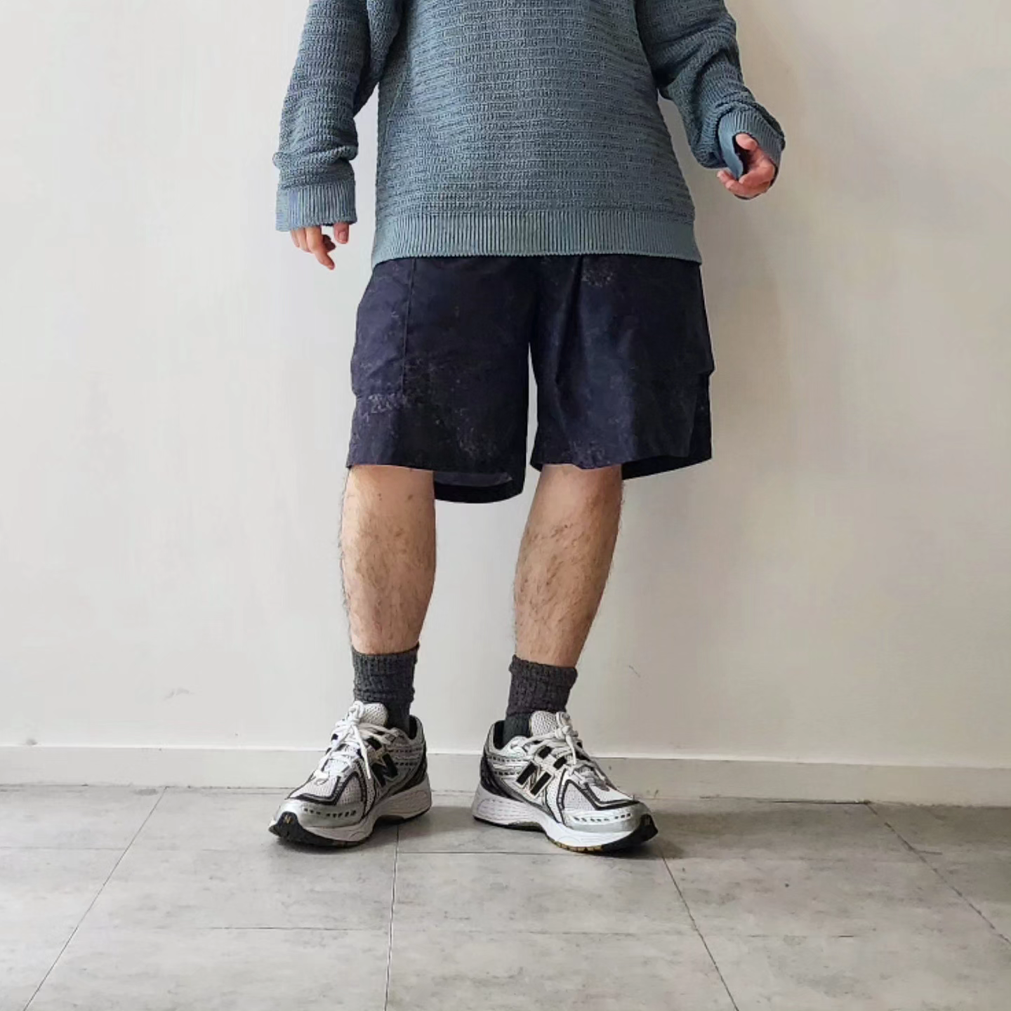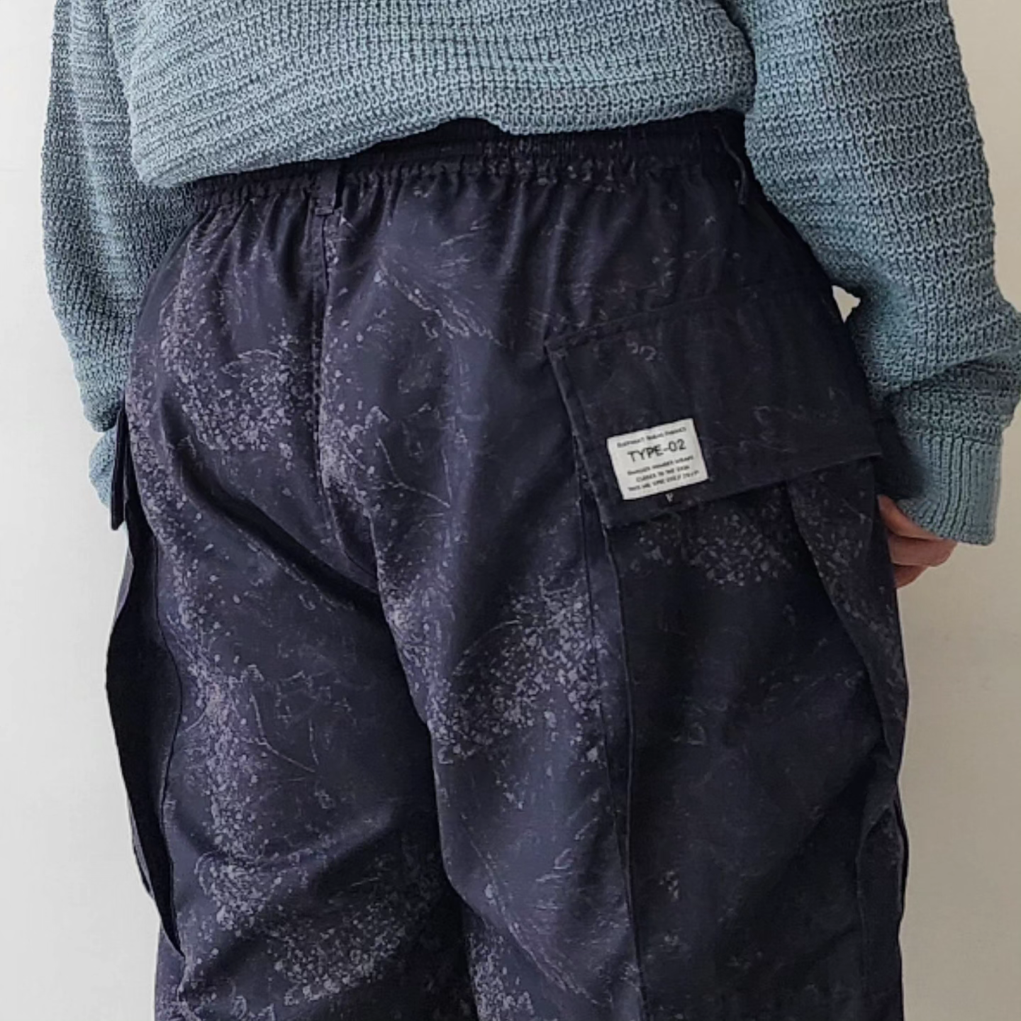 - Elastic and drawcord are added to the waist part, and easy pants specifications.