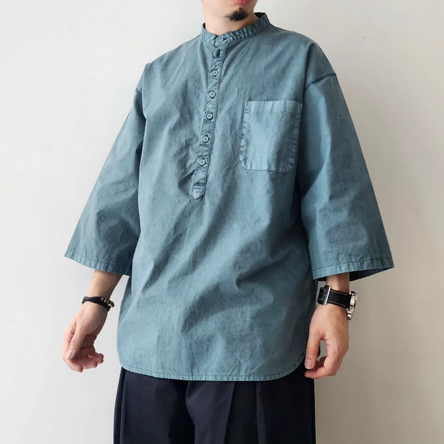 -A popular pullover shirt from EEL Products is now available in collaboration with Good On. By applying pigment dyeing to cotton ox with a rustic texture, it has a new look. The design features a pullover design and a clean henley neck. The relaxed sizing with dropped shoulders gives it a light and relaxed silhouette. It is a highly versatile piece that can be worn as an inner layer, as well as in hot weather.