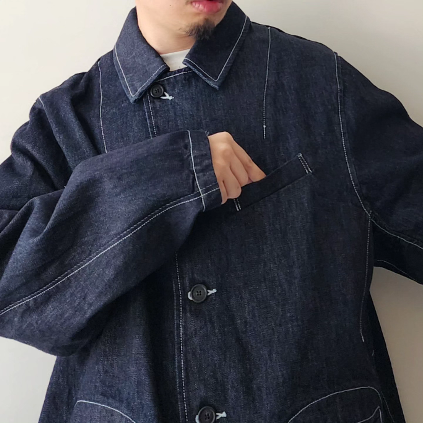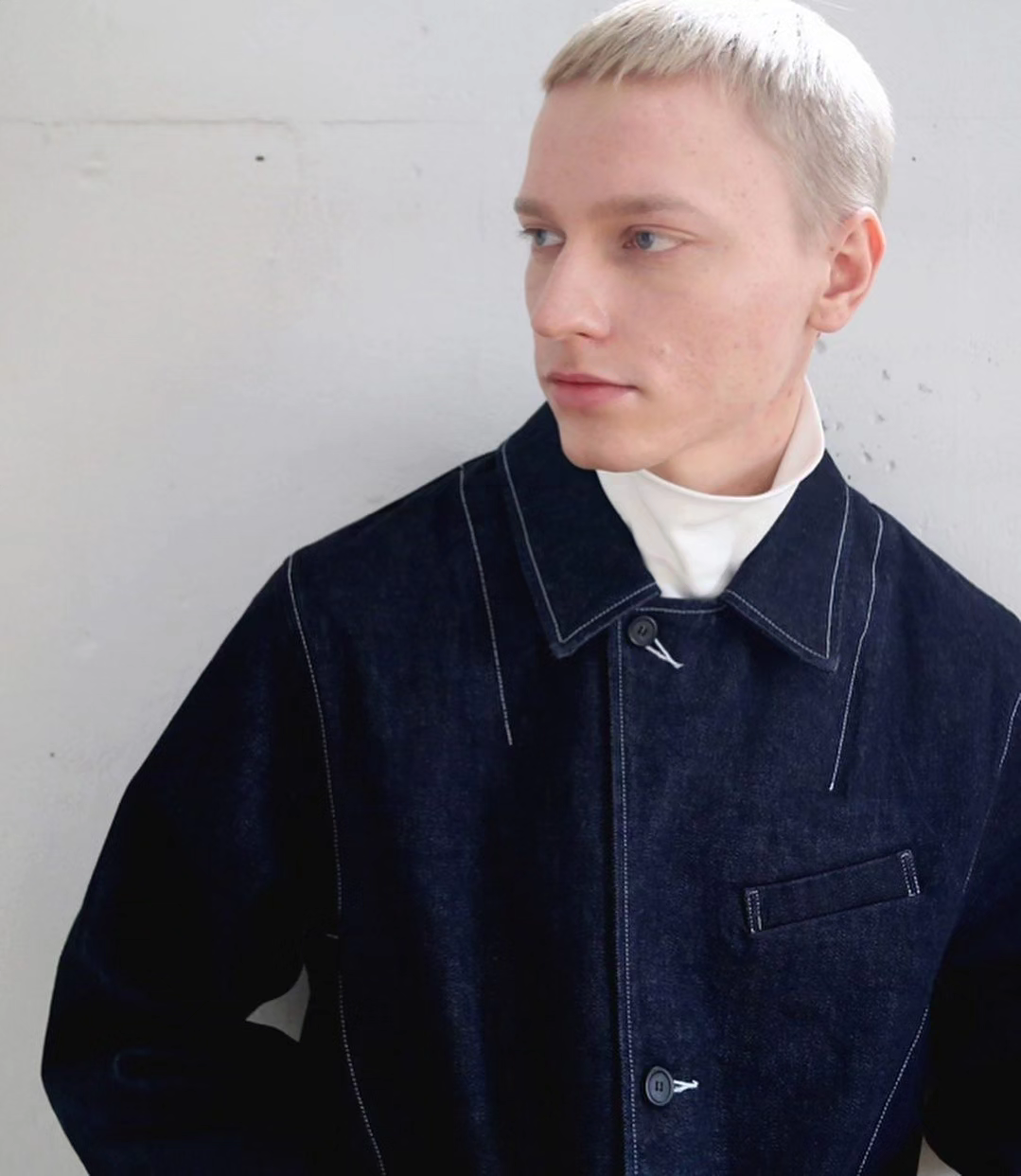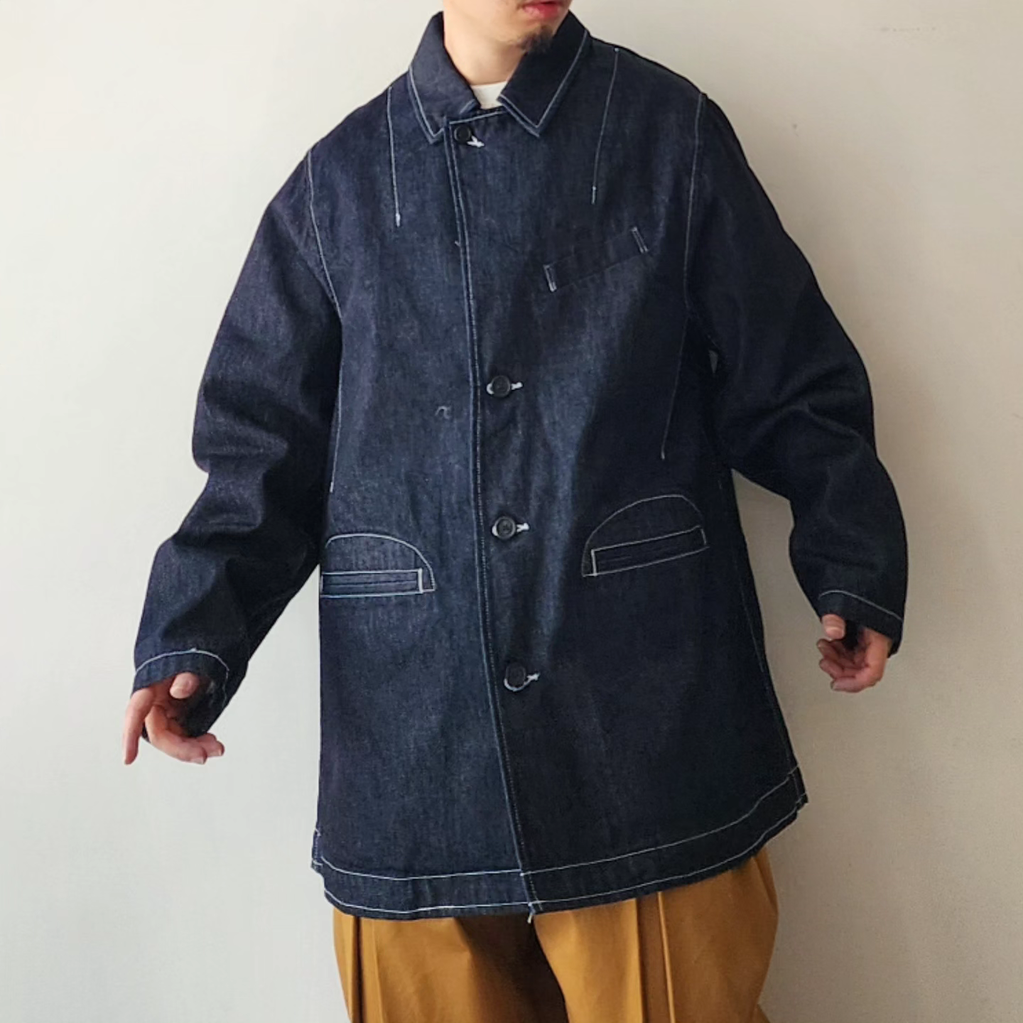 This jacket mixes the essence of tailoring with 3D patterns and the tool-like elements of coveralls"