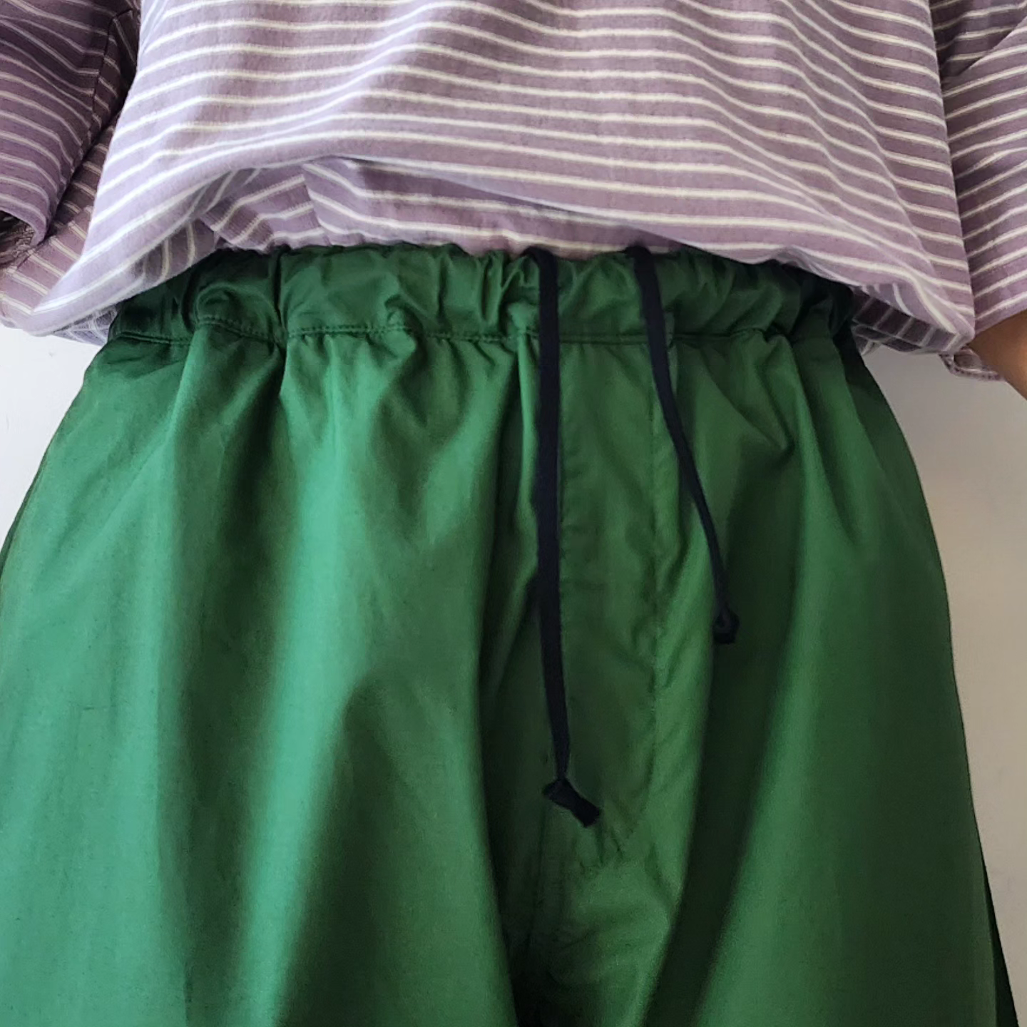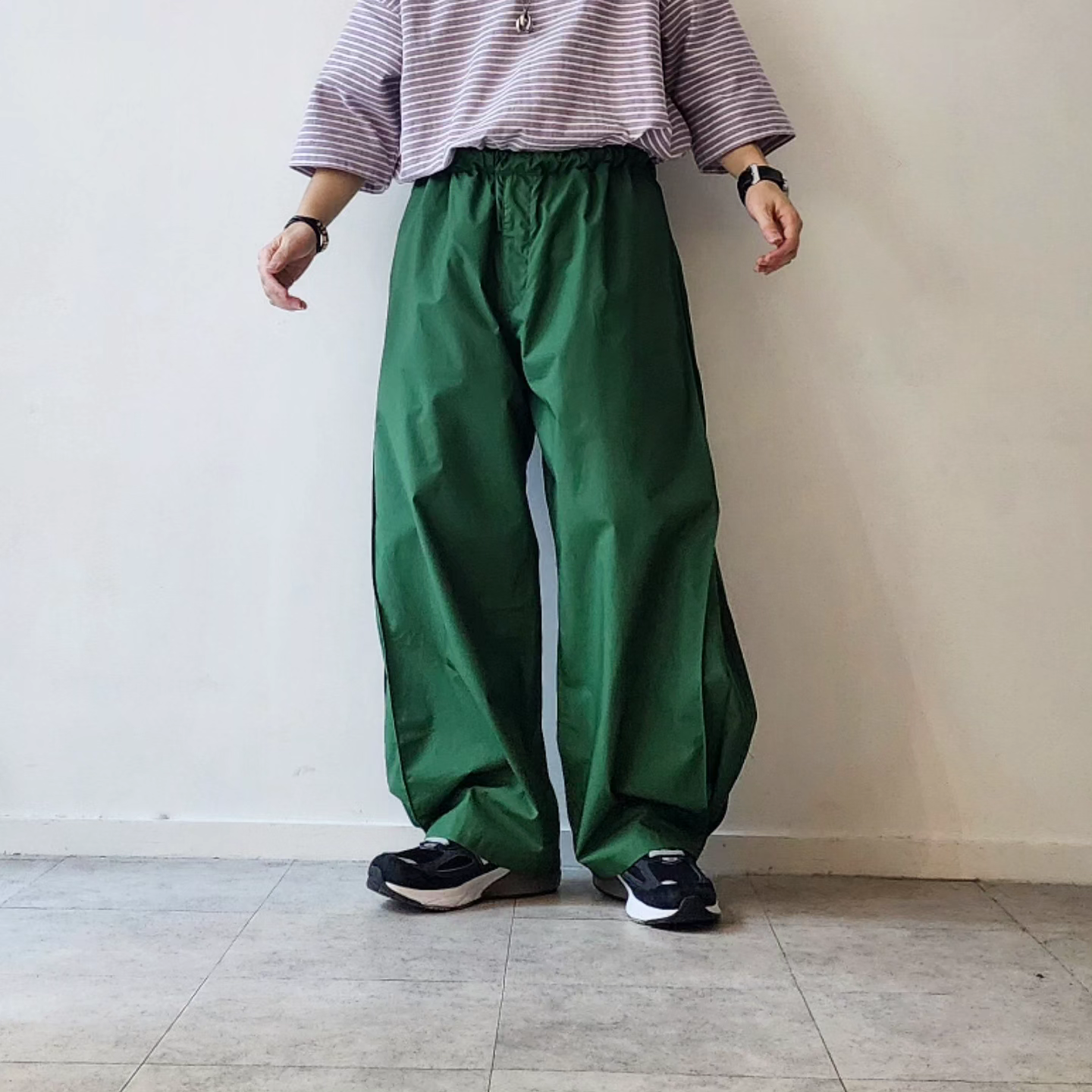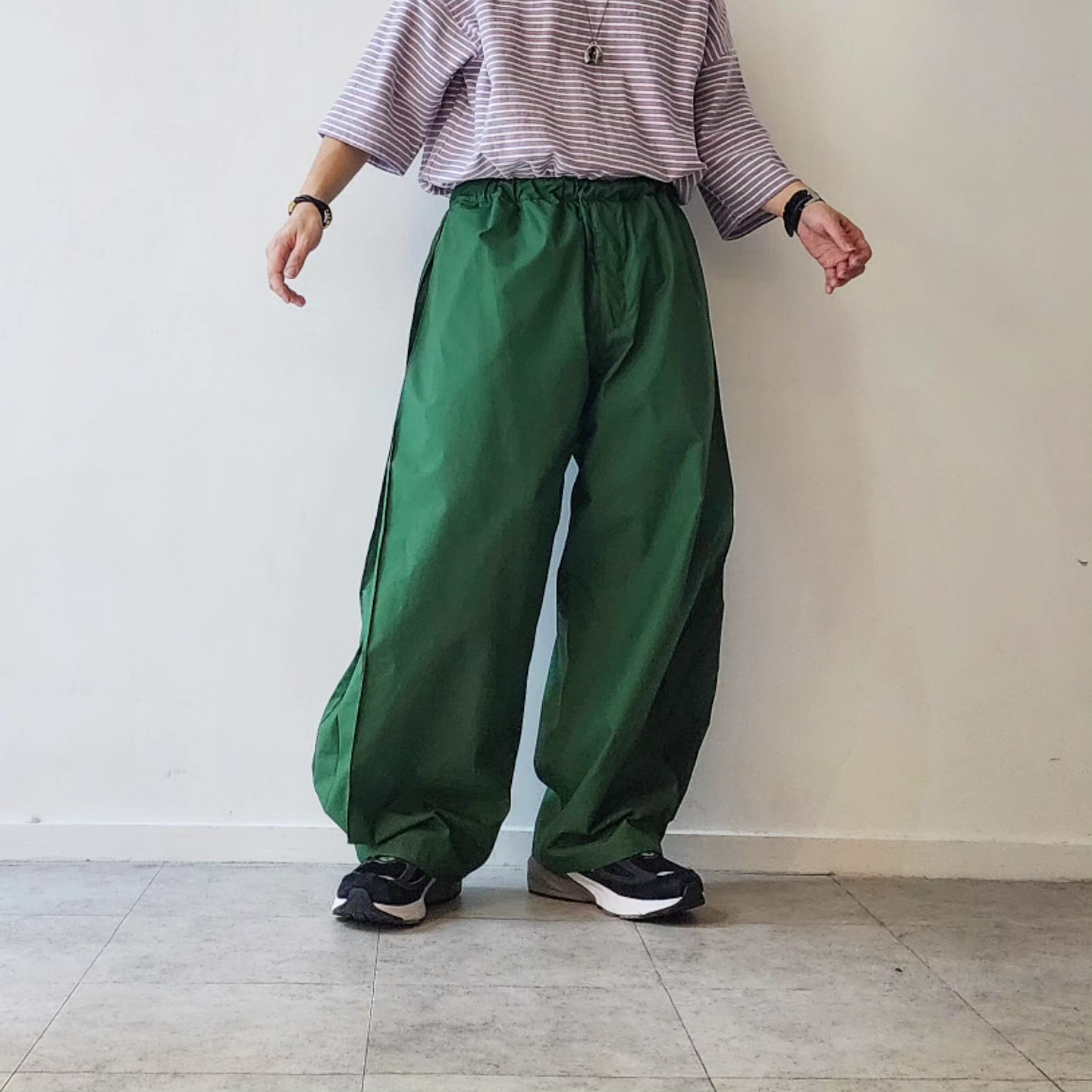 -The side tucks create a bold volume, and the hem creates an impressive silhouette.  With a cute, rounded expression and a line that gives you a sense of quality, it would be nice to wear it with a shirt or jacket.  The waist is elastic and drawstring, and the rise and thighs are roomy, making it easy to wear.  You can enjoy styling with free ideas, such as wearing sandals or leather shoes on your feet.
