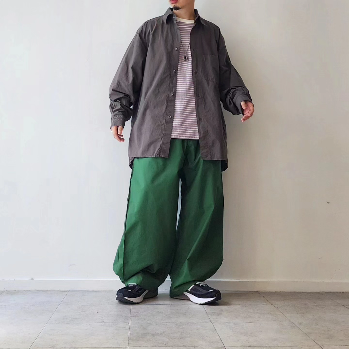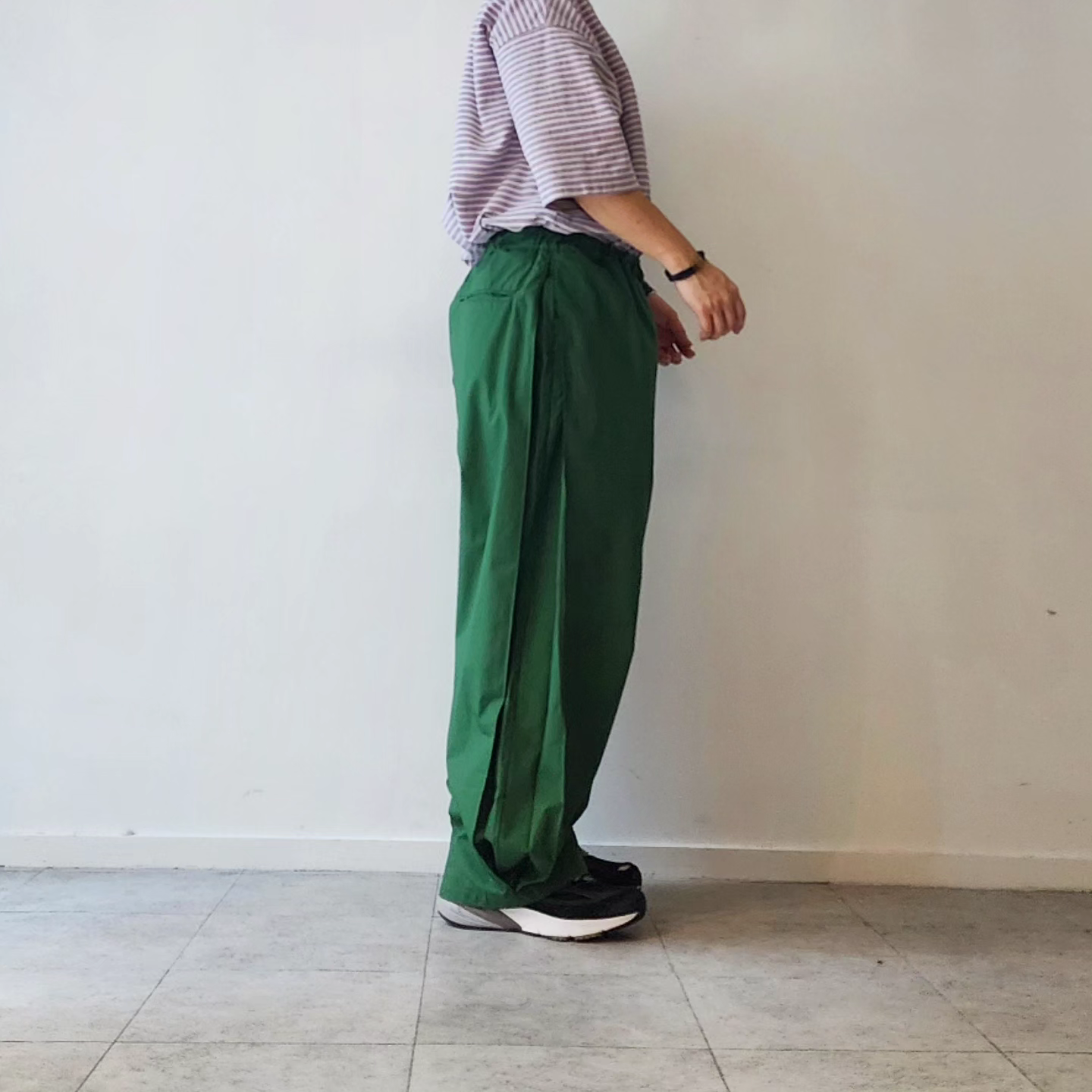 -Easy pants with bold side tucks that are cute with an exquisite sense of volume that seems to contain air.