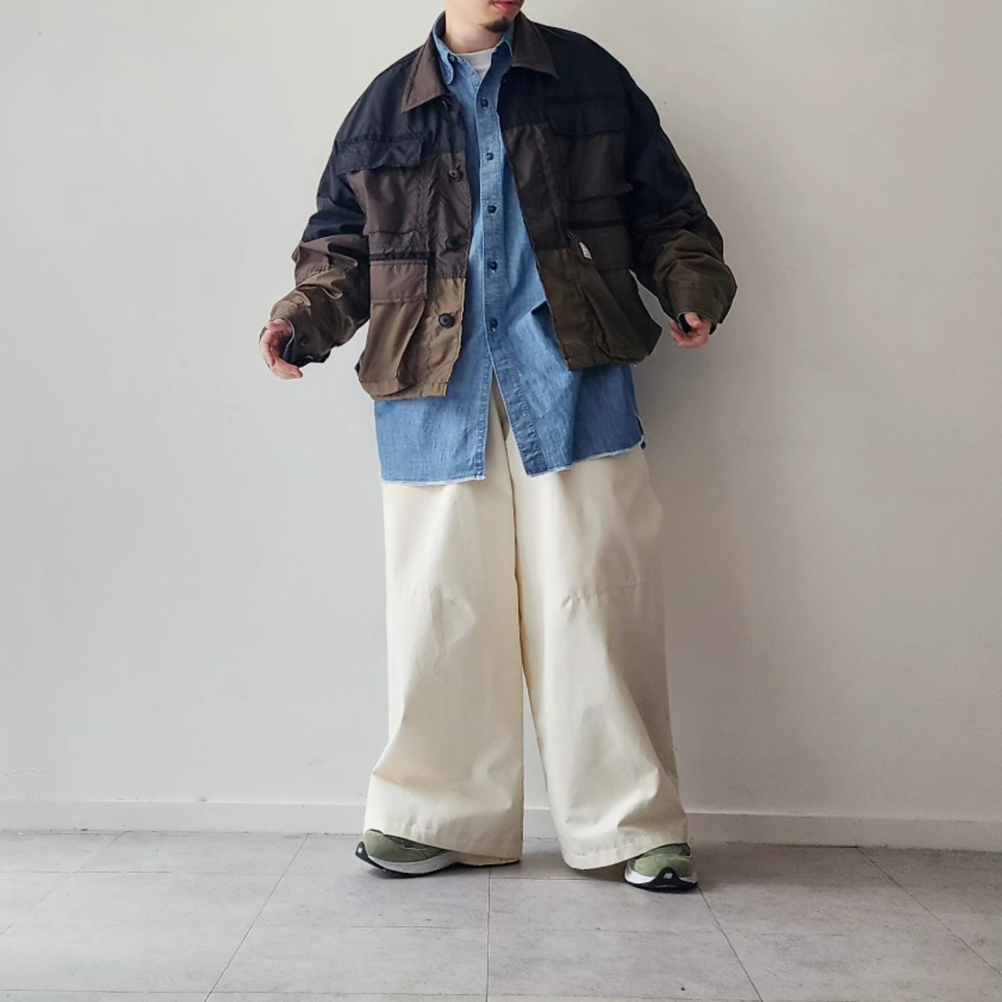 -When the inner pants are tucked in, the pattern is made with a short length that is slightly lowered in the front so that it does not feel unfashionable and heavy, which is typical of military items.