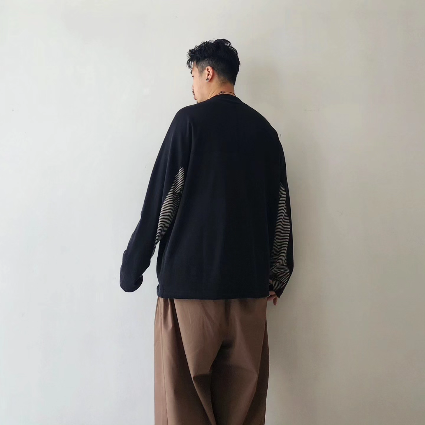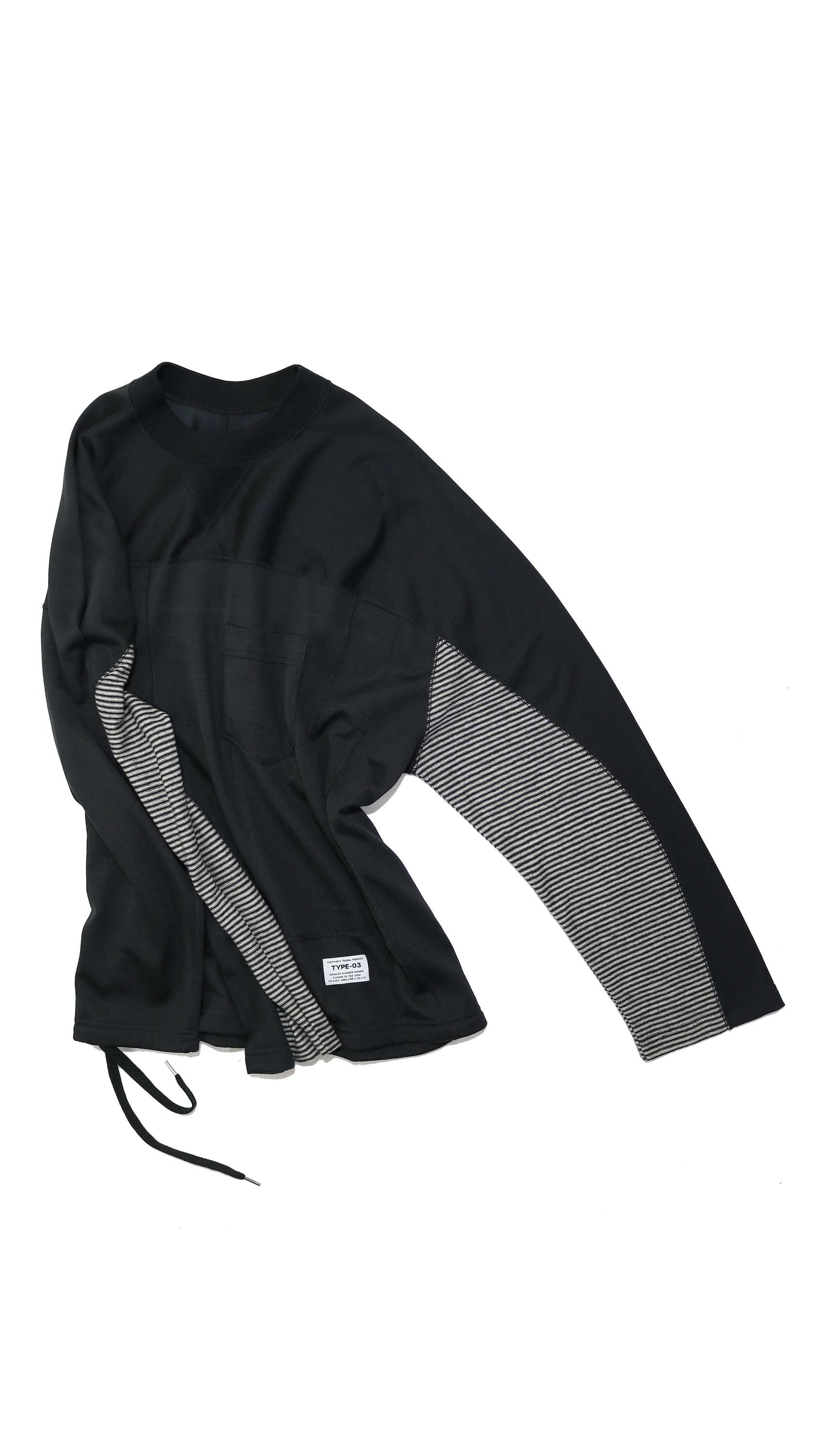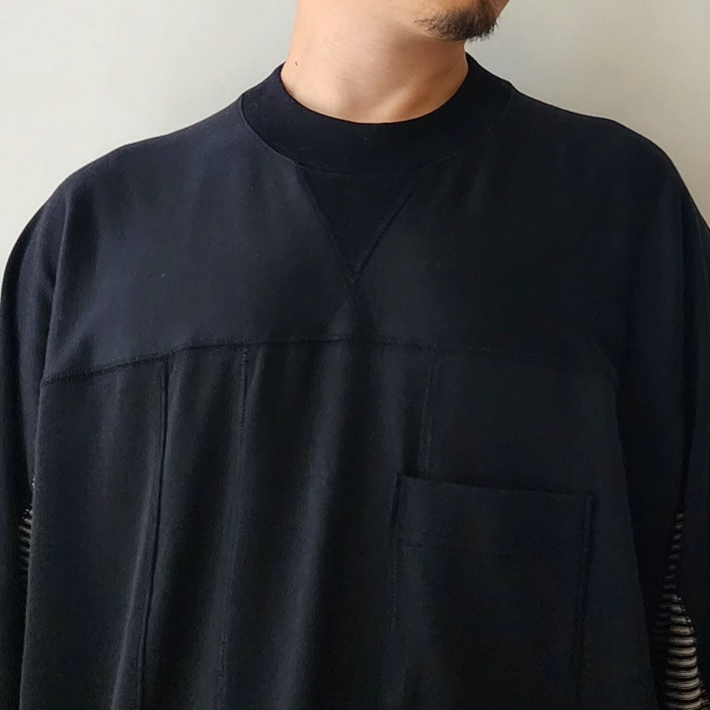 -The base is a field hockey shirt made of rayon-blend jersey and a linen border long T. The front has a patchwork design made of the same material.