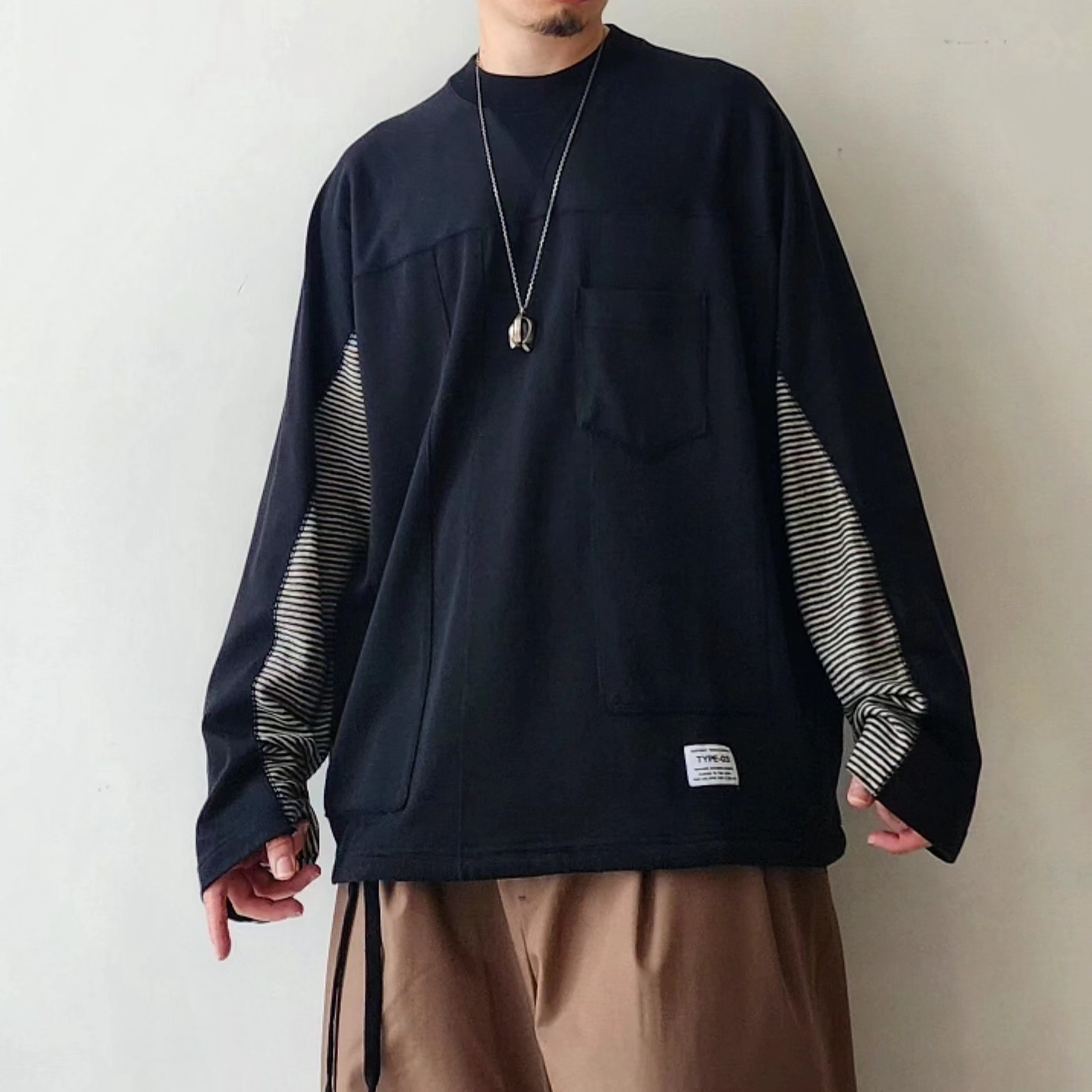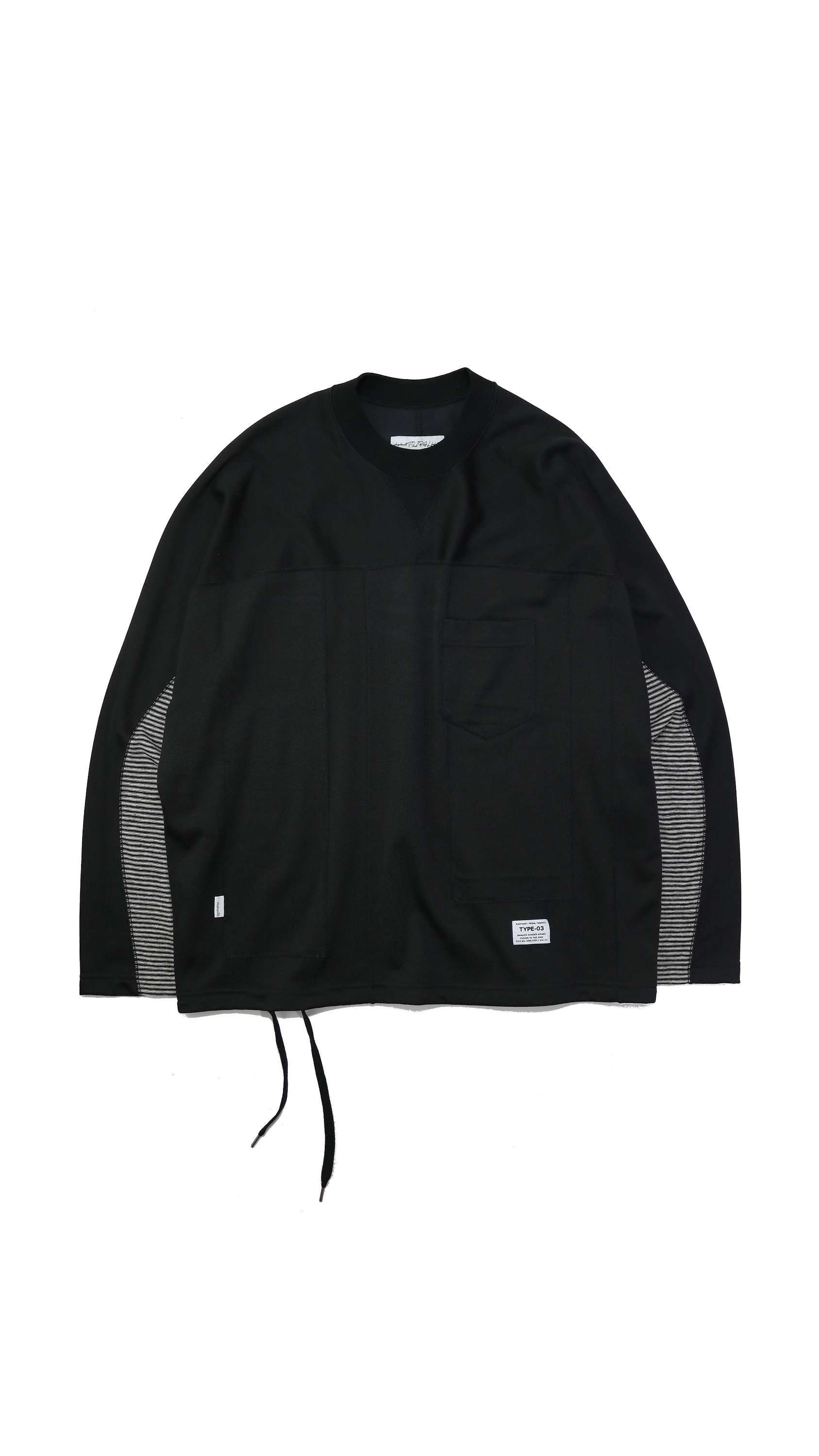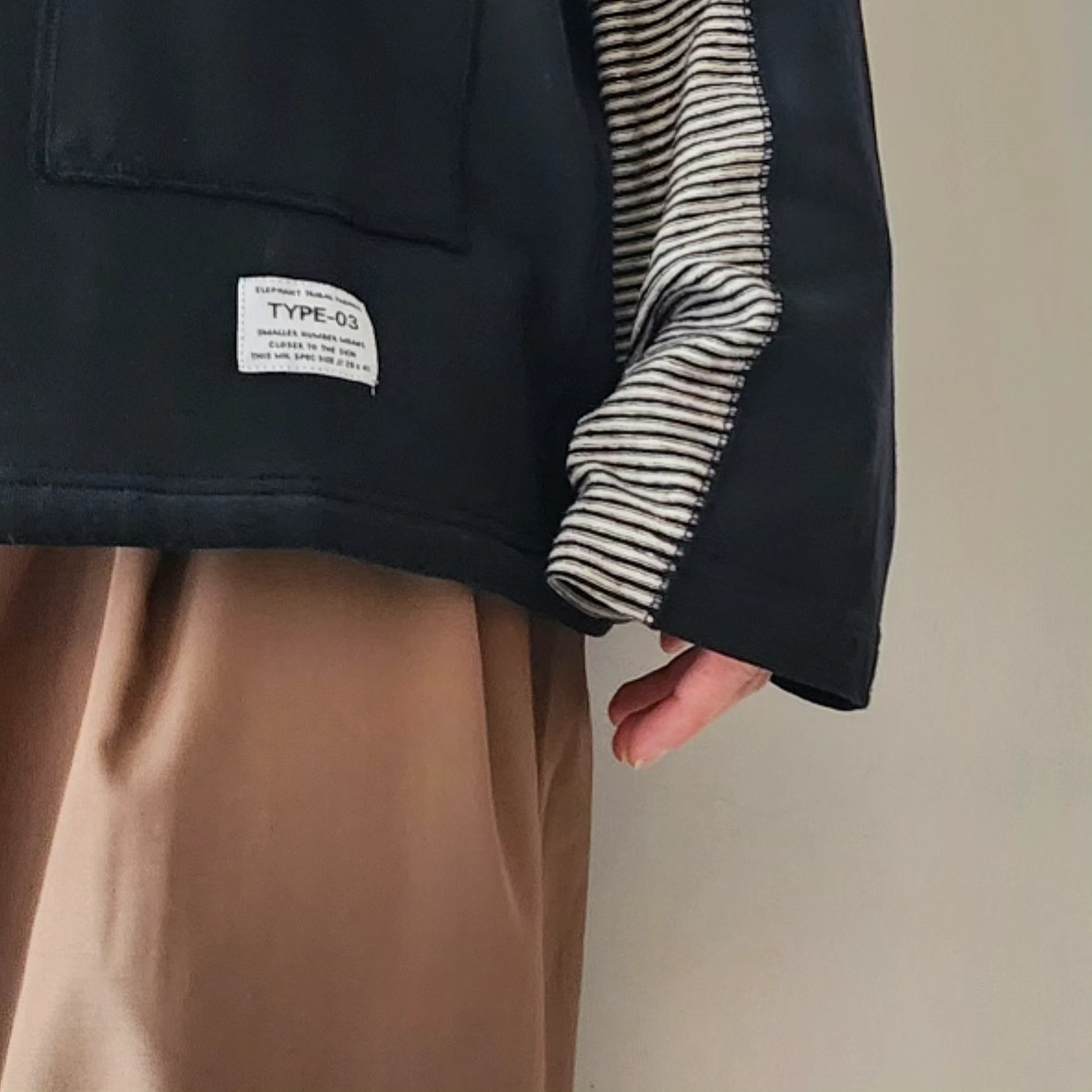 -The base is a field hockey shirt made of rayon-blend jersey and a linen border long T. The front has a patchwork design made of the same material.