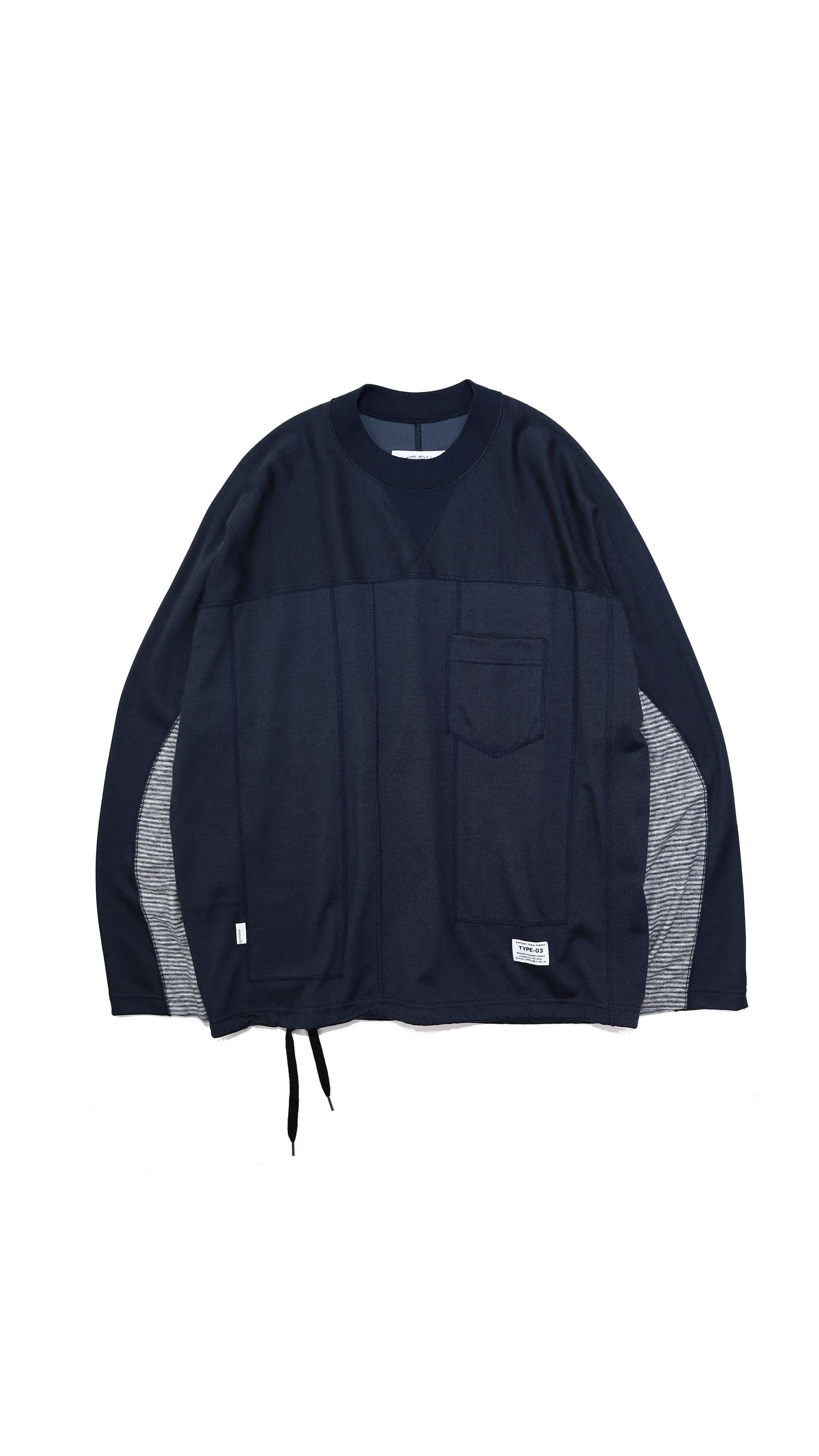 -The base is a field hockey shirt made of rayon-blend jersey and a linen border long T. The front has a patchwork design made of the same material.