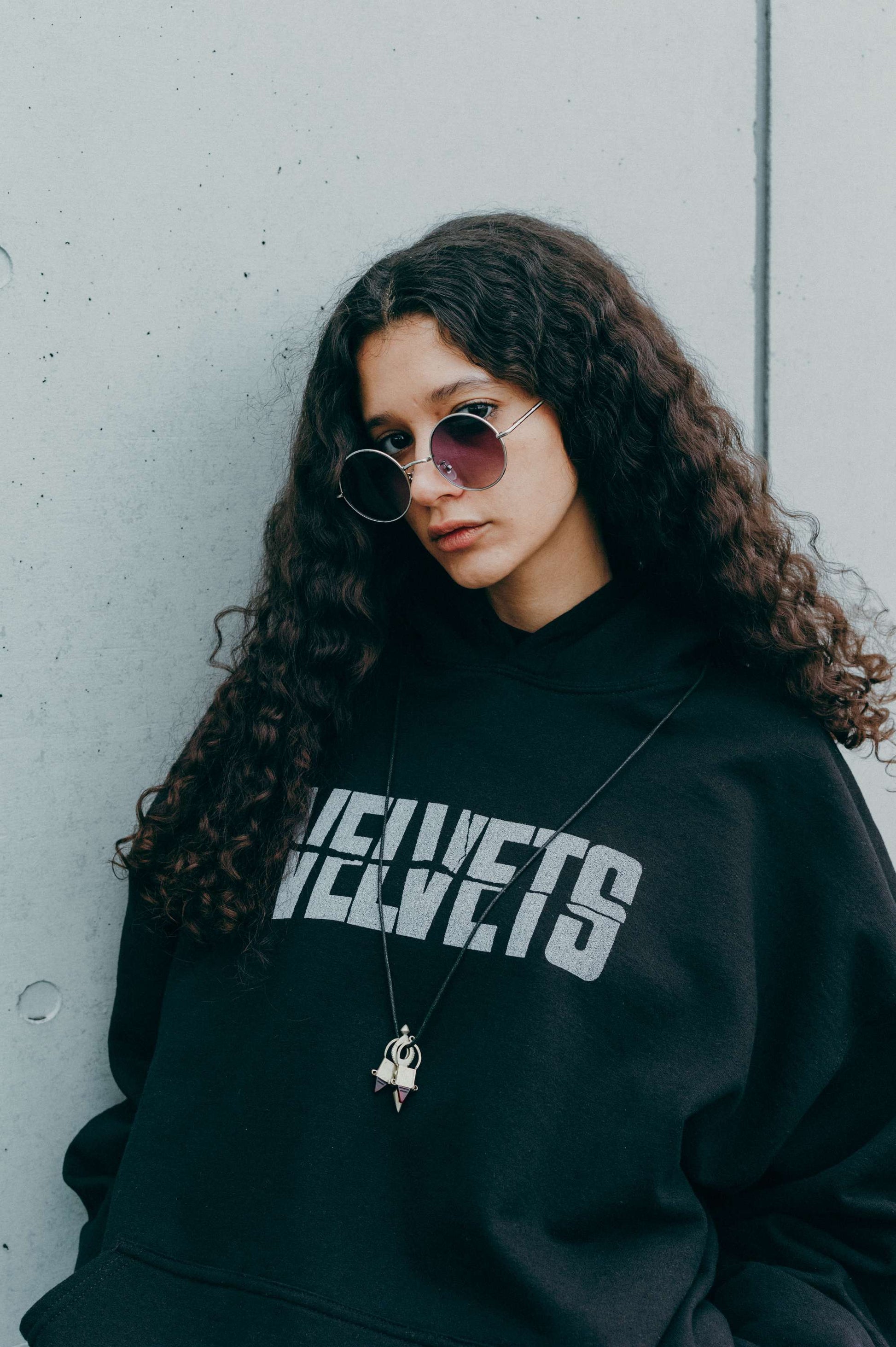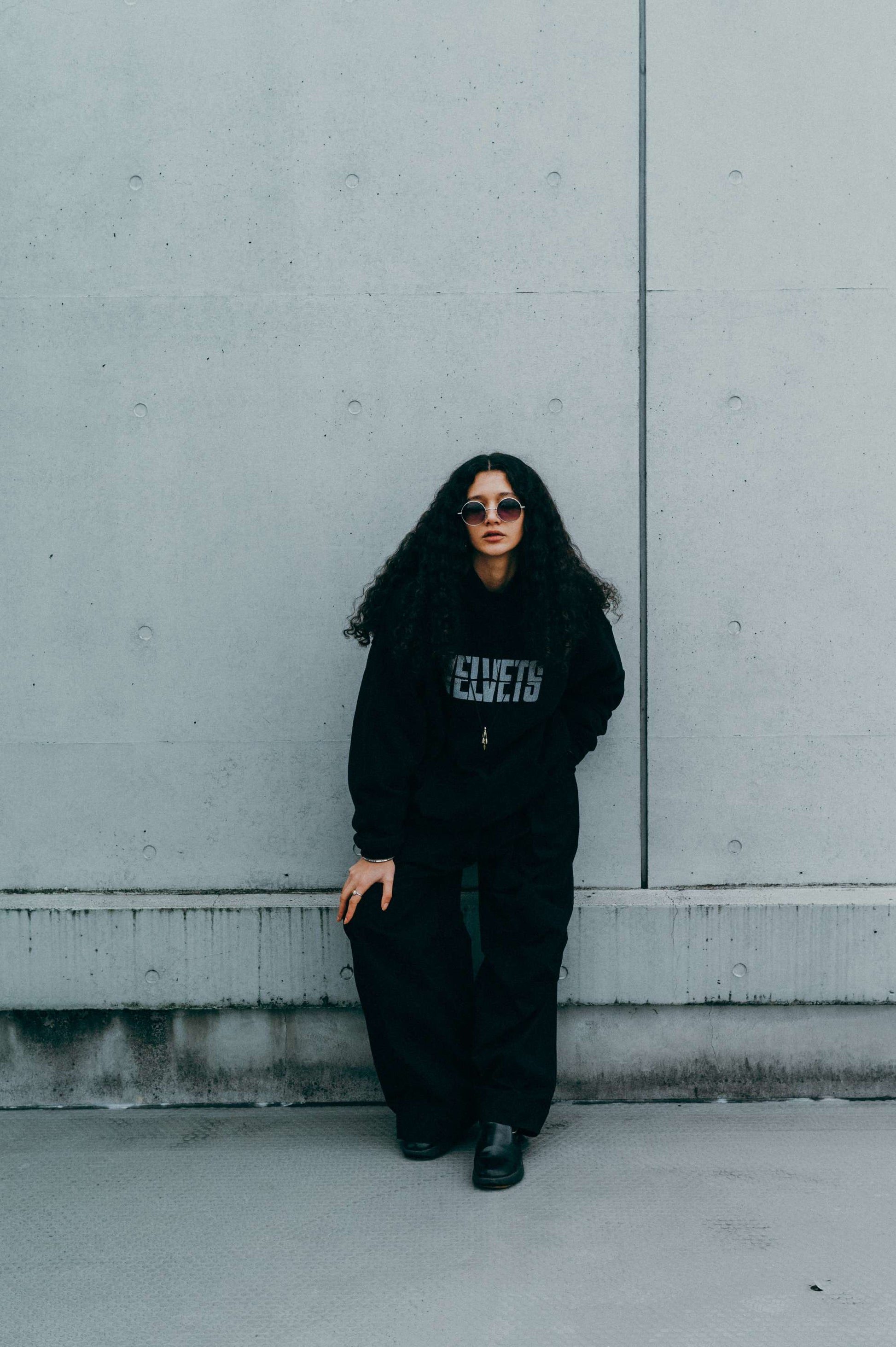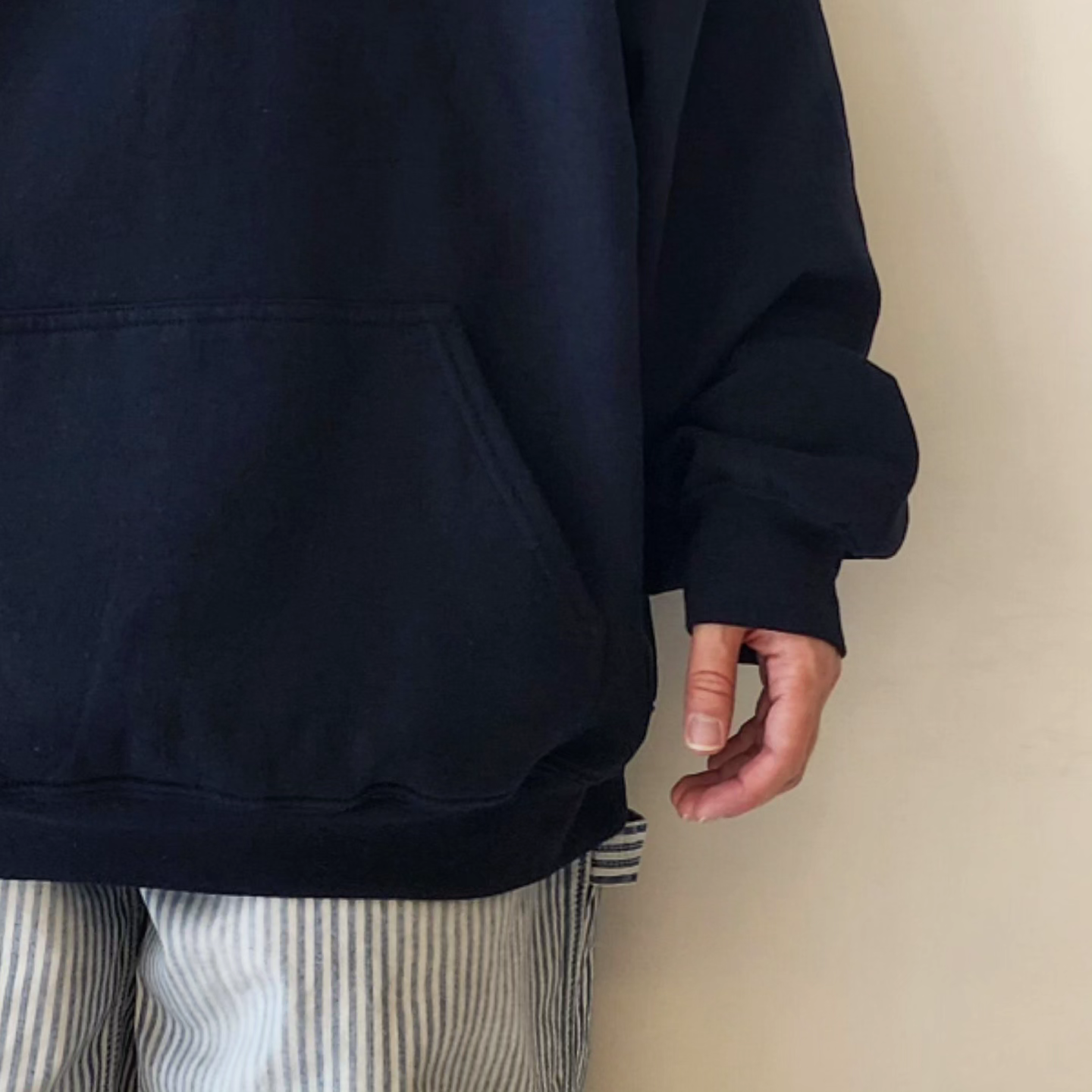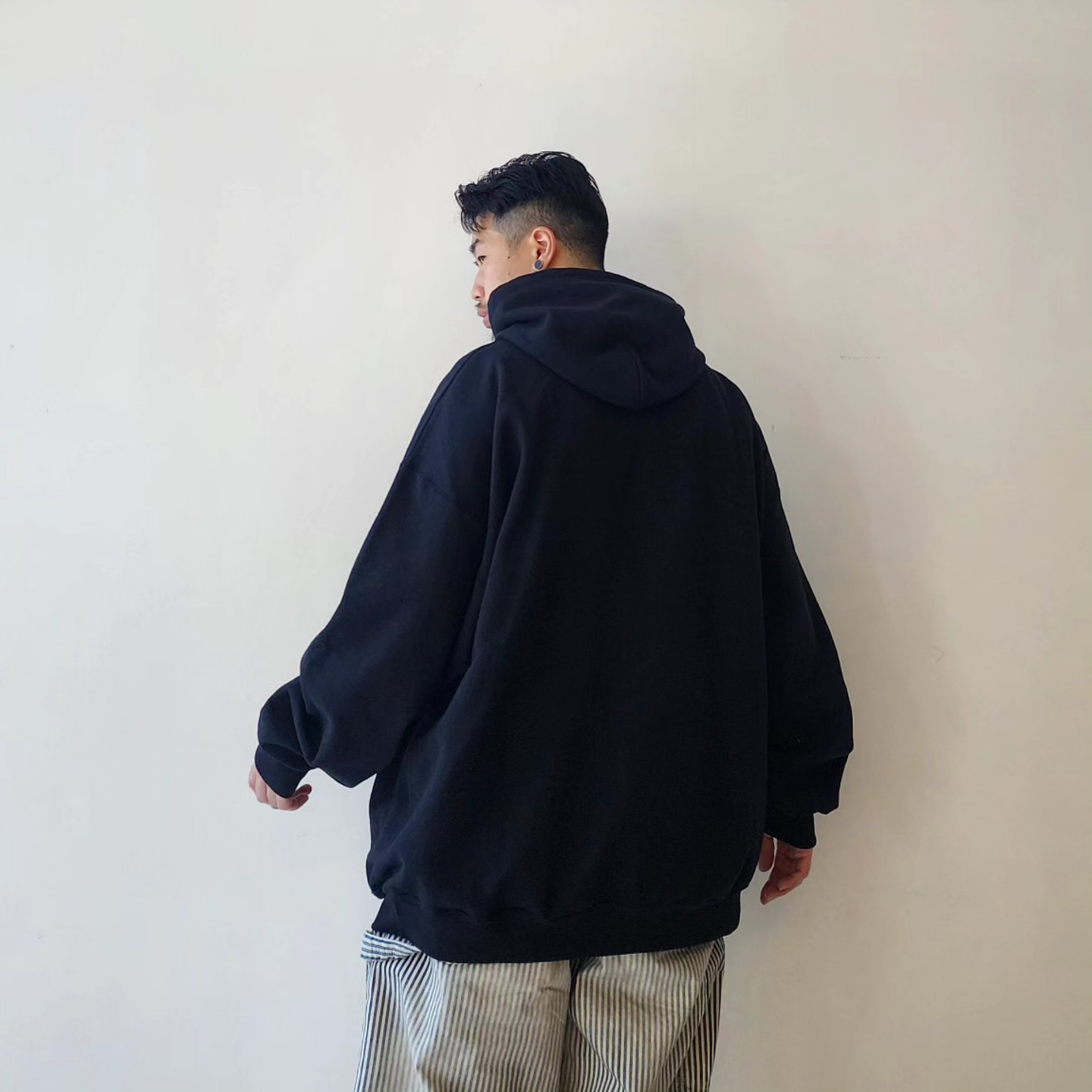 -An oversized black hoodie made of comfortable 8.0oz heavy blend cotton polyester fabric and printed USED. An eye-catching "VELVETS" print on the front. Inspired by The Velvet Underground's "Heroin," "Run Run Run," and "Sunday Morning." Relaxed silhouette with a relaxed fit and dropped shoulders. Kangaroo pocket on the front. The texture of the silk screen print may vary slightly depending on the individual item.