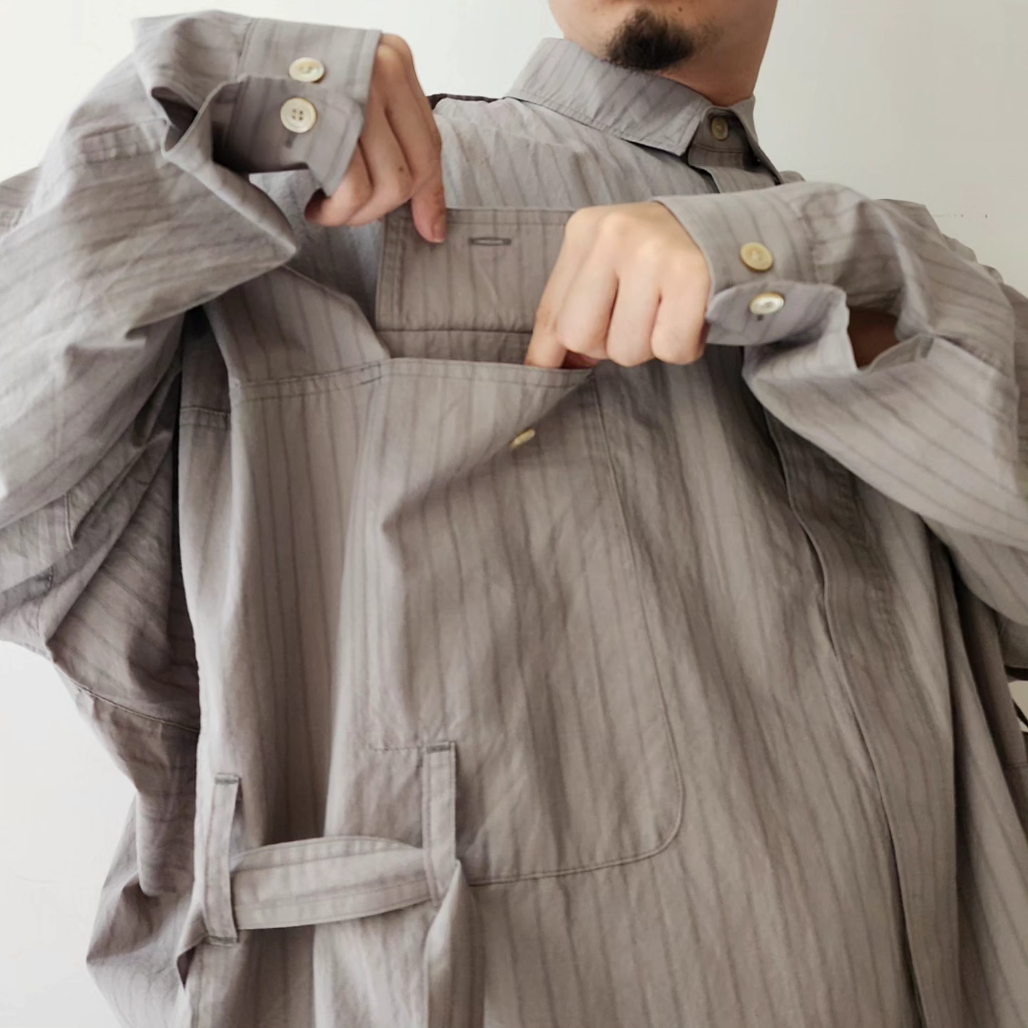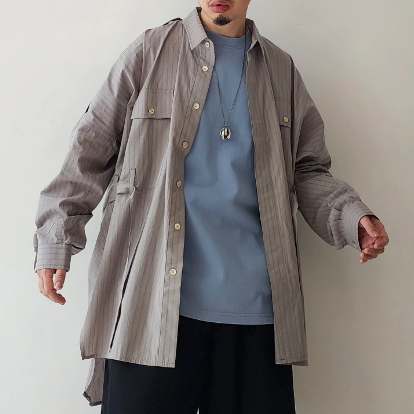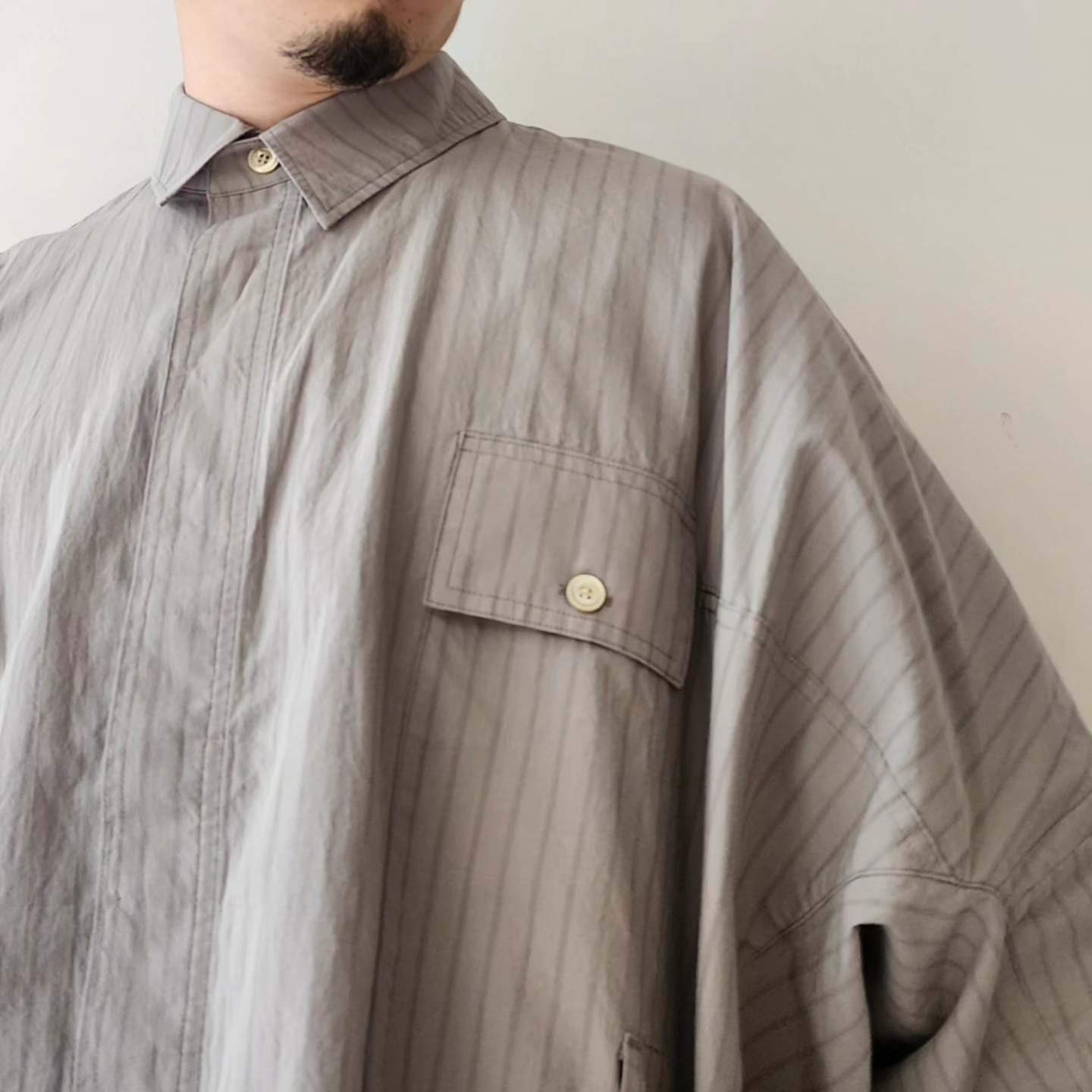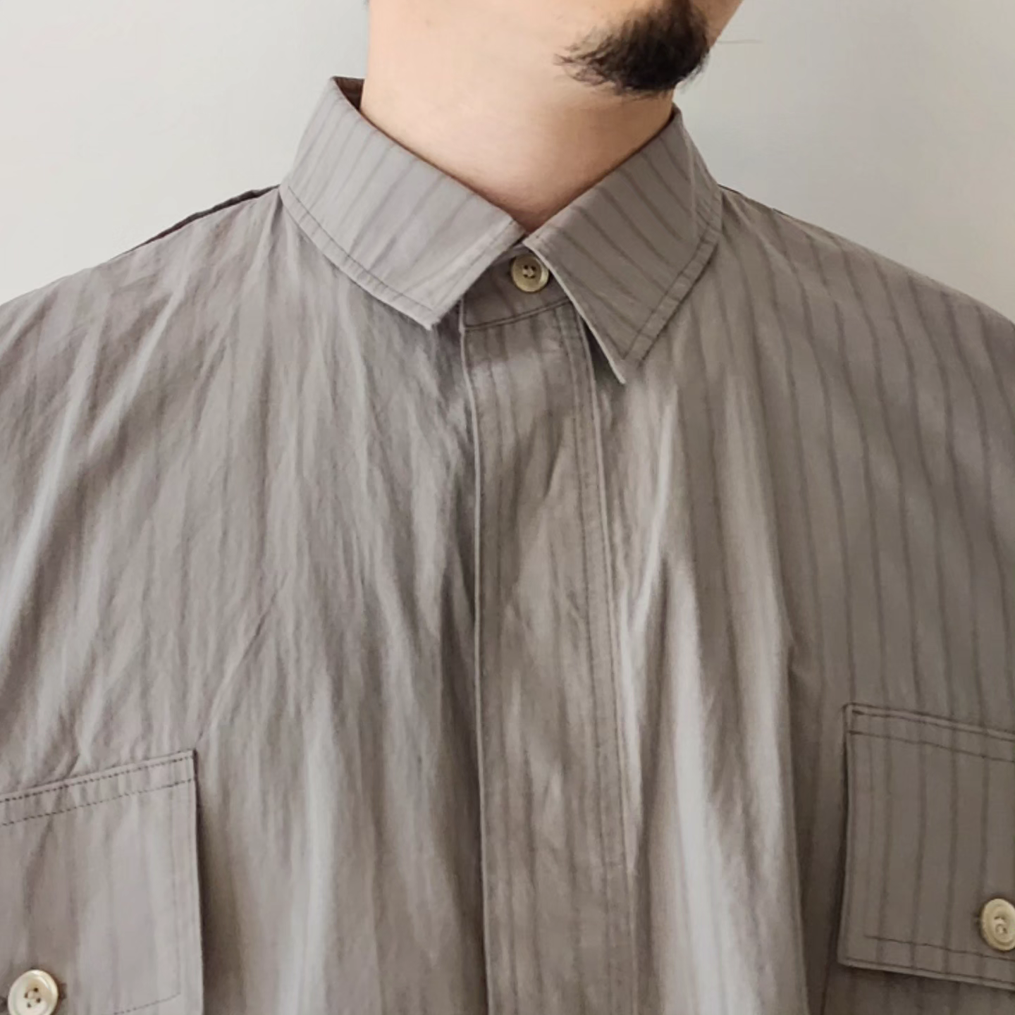 -Beautiful stitching similar to a dress shirt with fine count and fine needles. Proposal as a cardigan shirt for good design high summer with exquisite contrast of utility design that combines unparalleled pattern work and practicality. It is an item that can be used in a wide range of seasons as well as spring and summer.