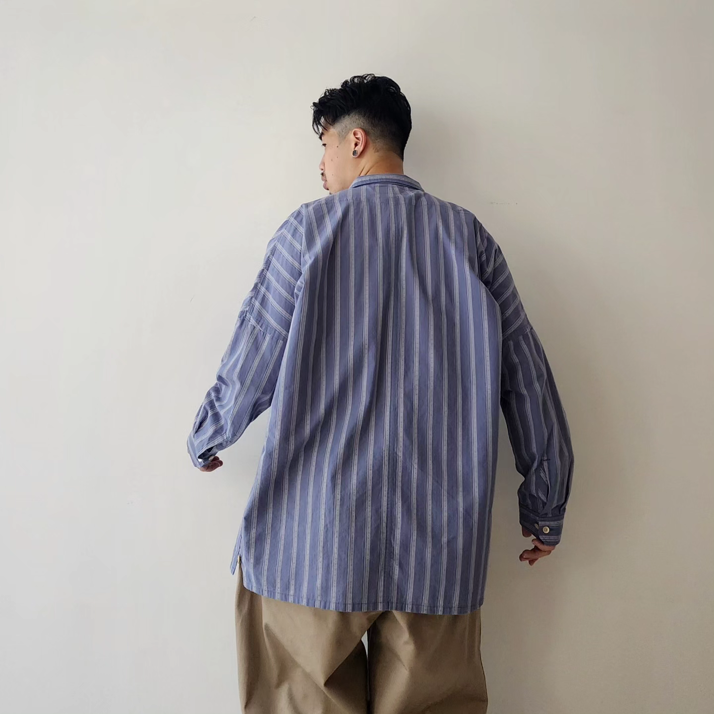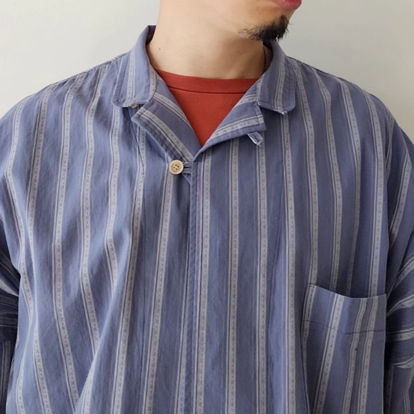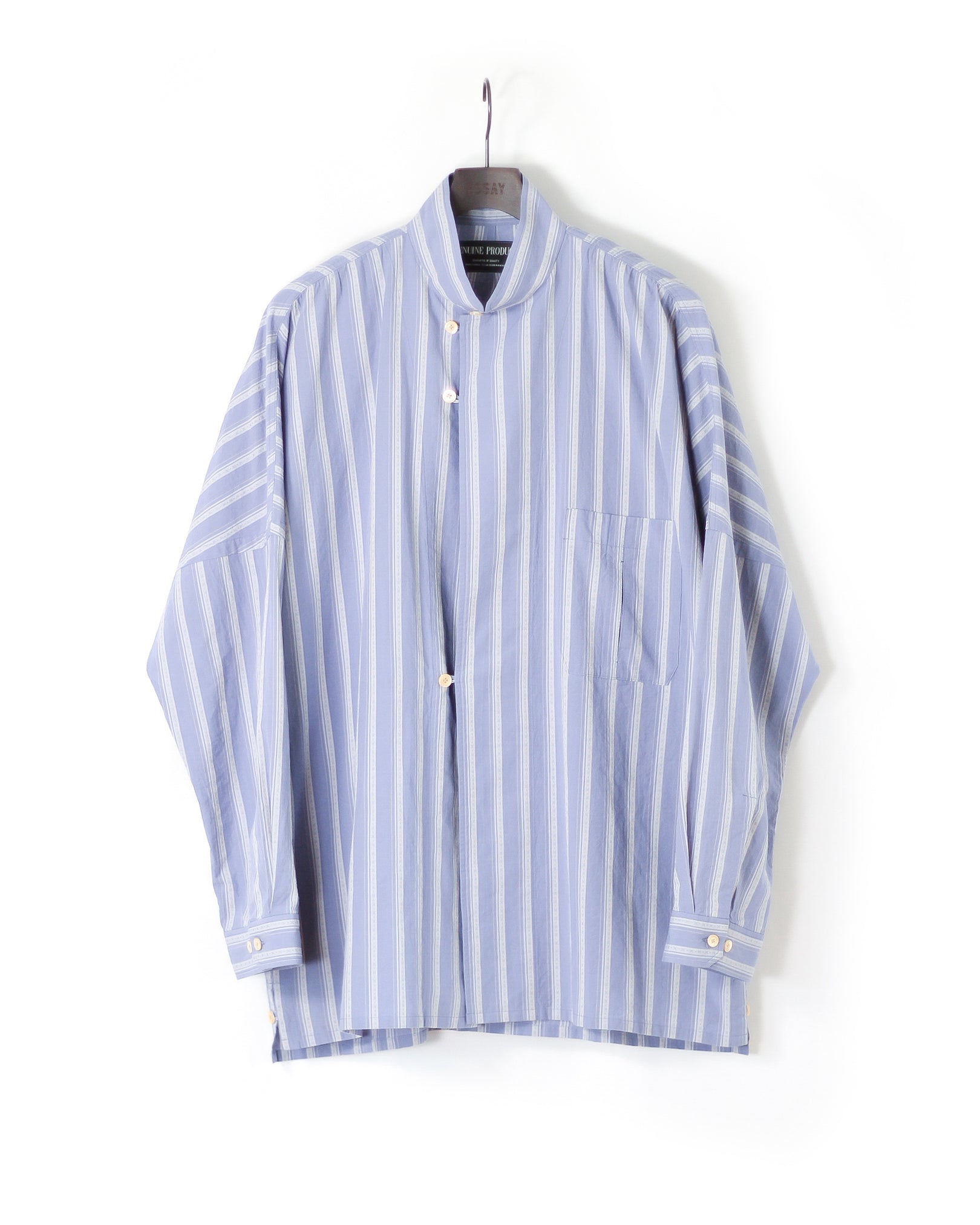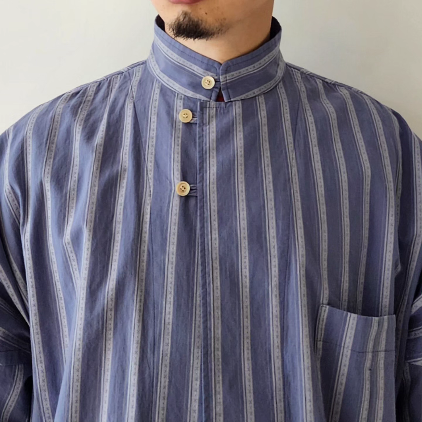 -This product features stripes with a special weave pattern. Repropose the Palermo shirt. A design shirt featuring dolman sleeves and a minimal stand collar that gives a strong impression of the 80's.