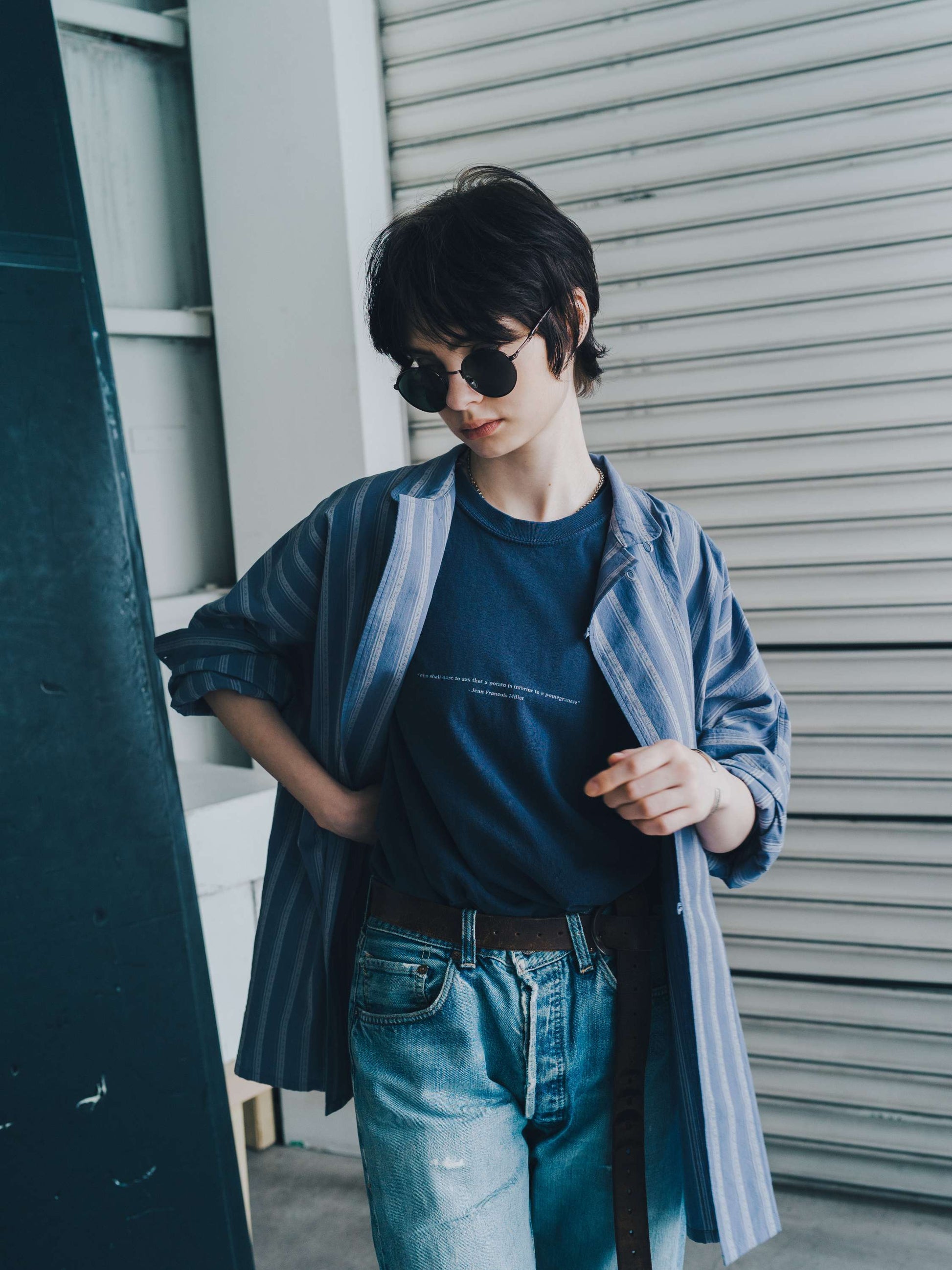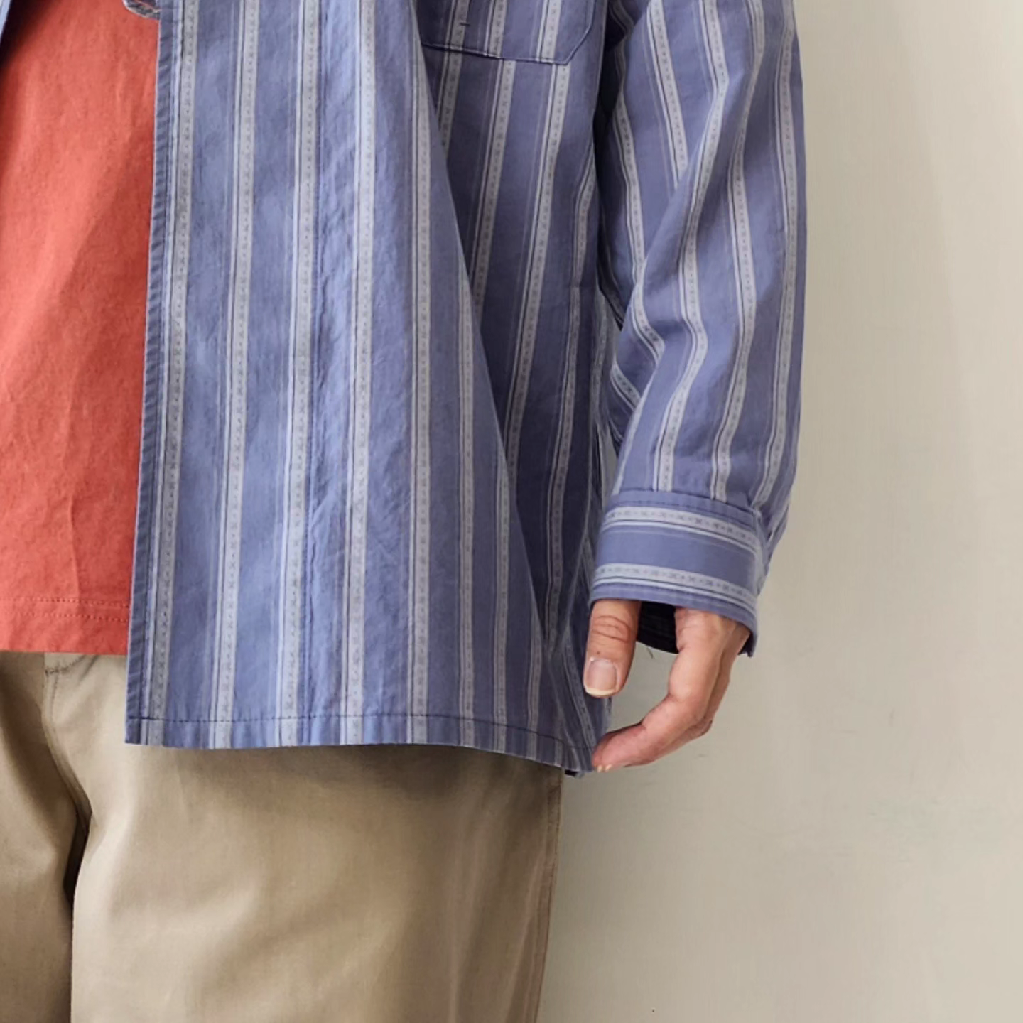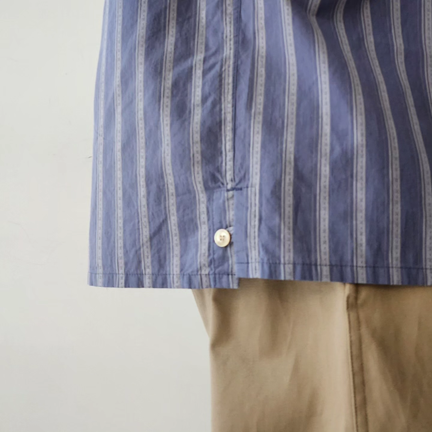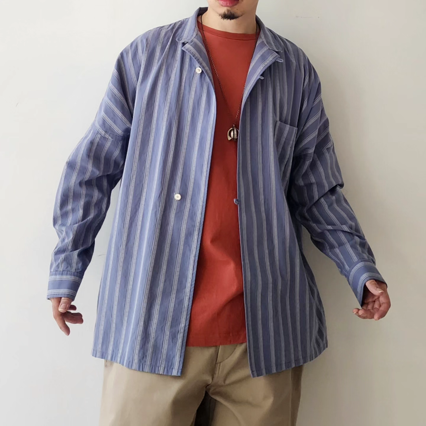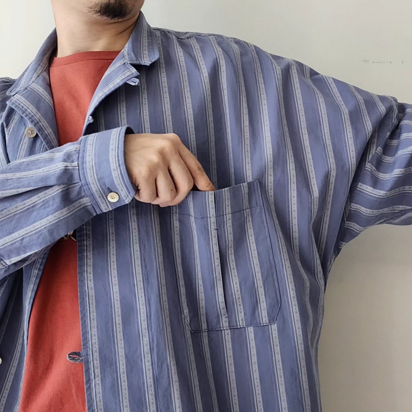-This product features stripes with a special weave pattern. Repropose the Palermo shirt. A design shirt featuring dolman sleeves and a minimal stand collar that gives a strong impression of the 80's.