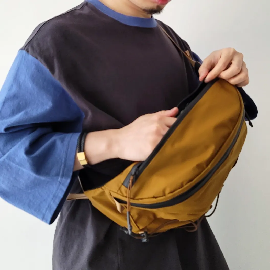 - A large waist bag whose contents expand depending on the amount of luggage. By tightening the pansy cord on the bottom part, there is also a compression effect, so it corresponds to a wide range from town use to active scenes.