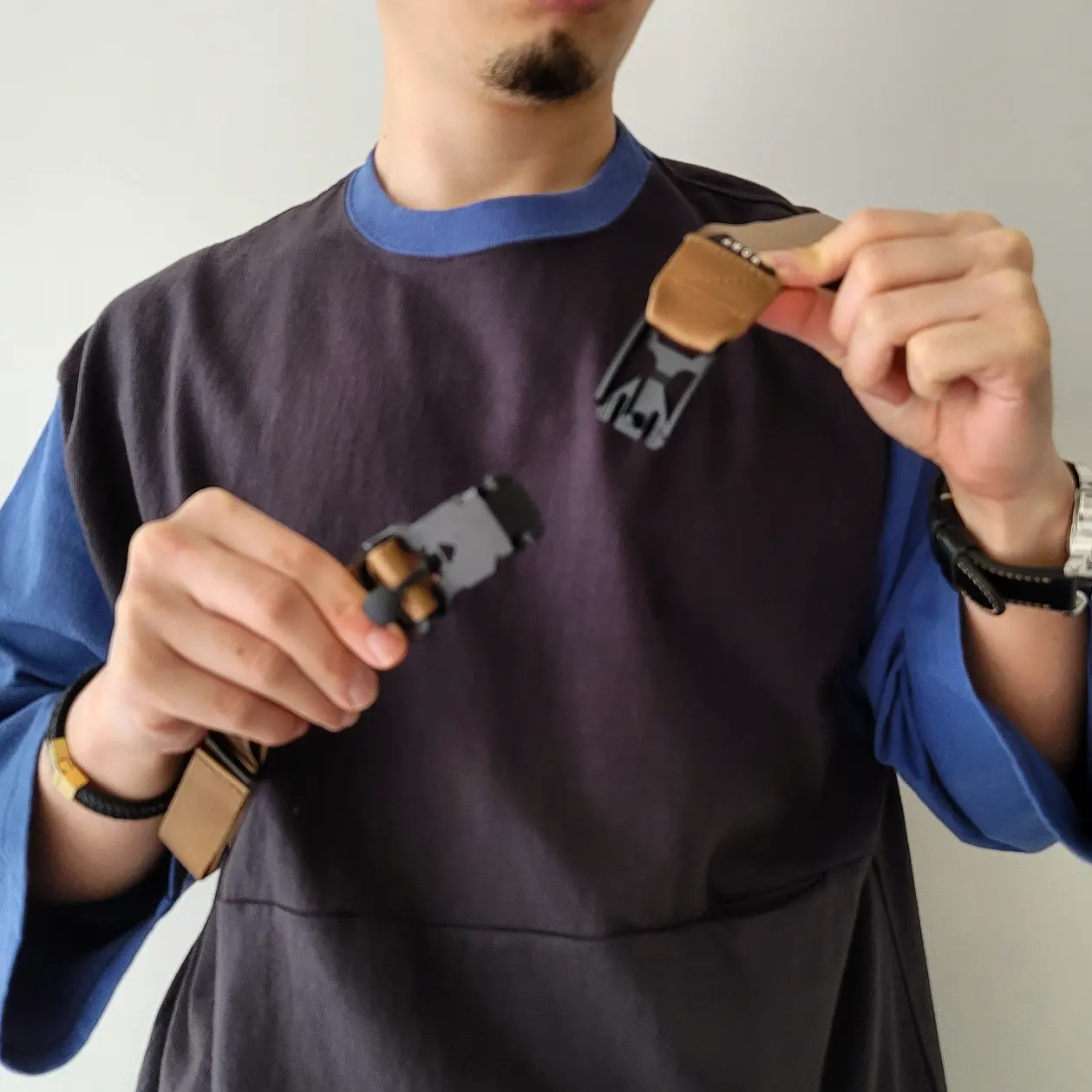- V-Buckle made by FIDLOCK is used for the shoulder part. Since it can be easily attached and detached with a magnet, the back can be attached and detached with one action.