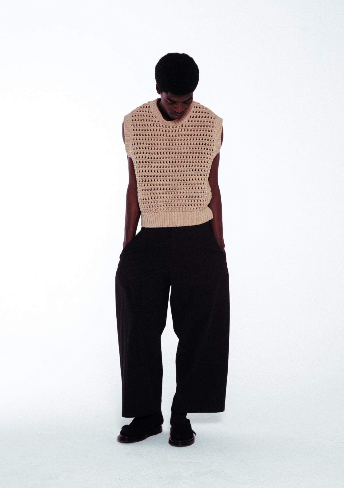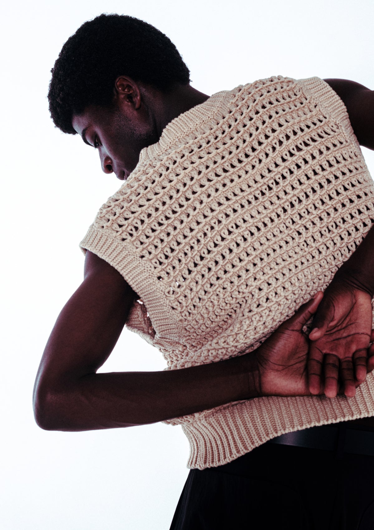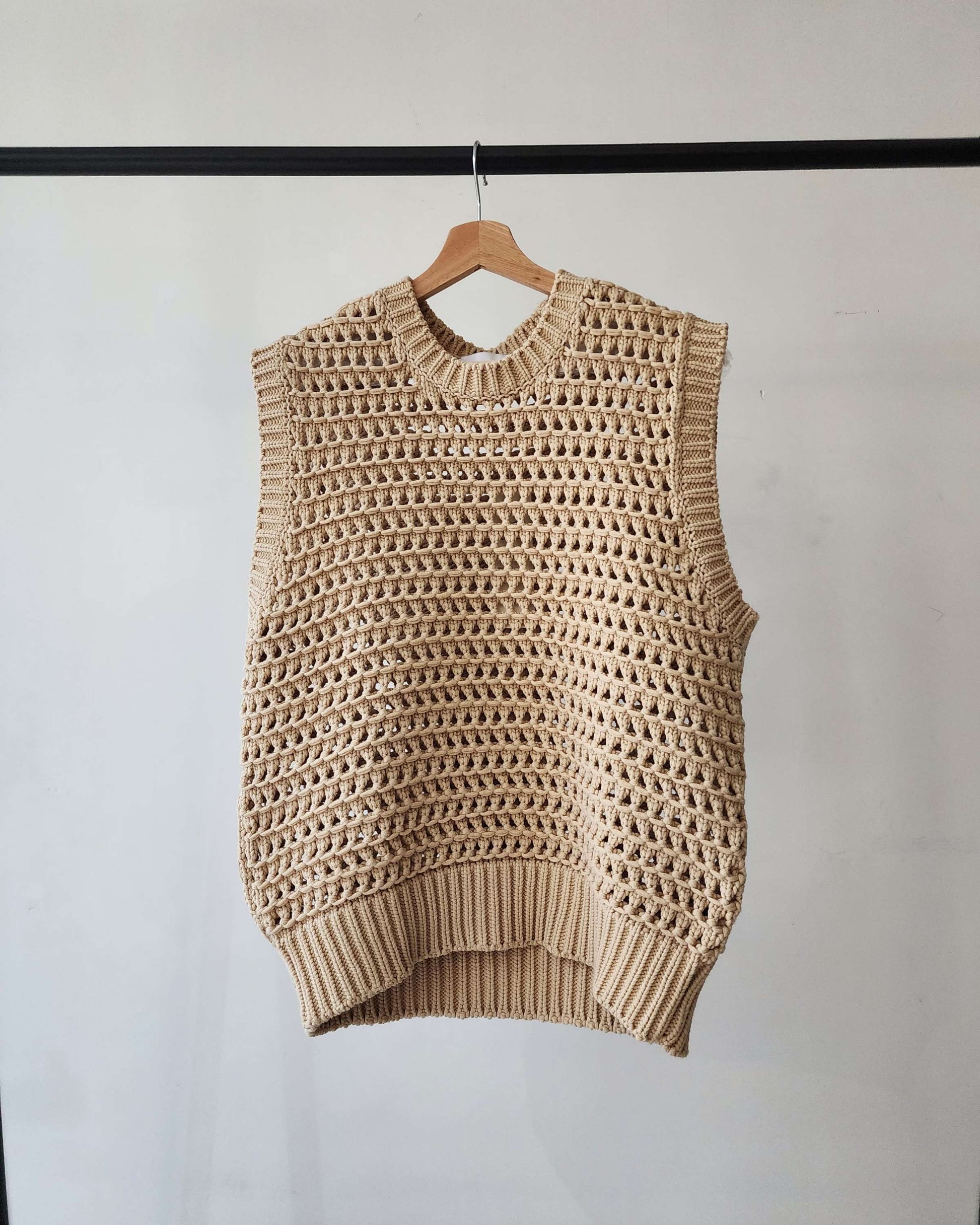 - Openwork cotton x nylon blend vest with just the right amount of firmness.
