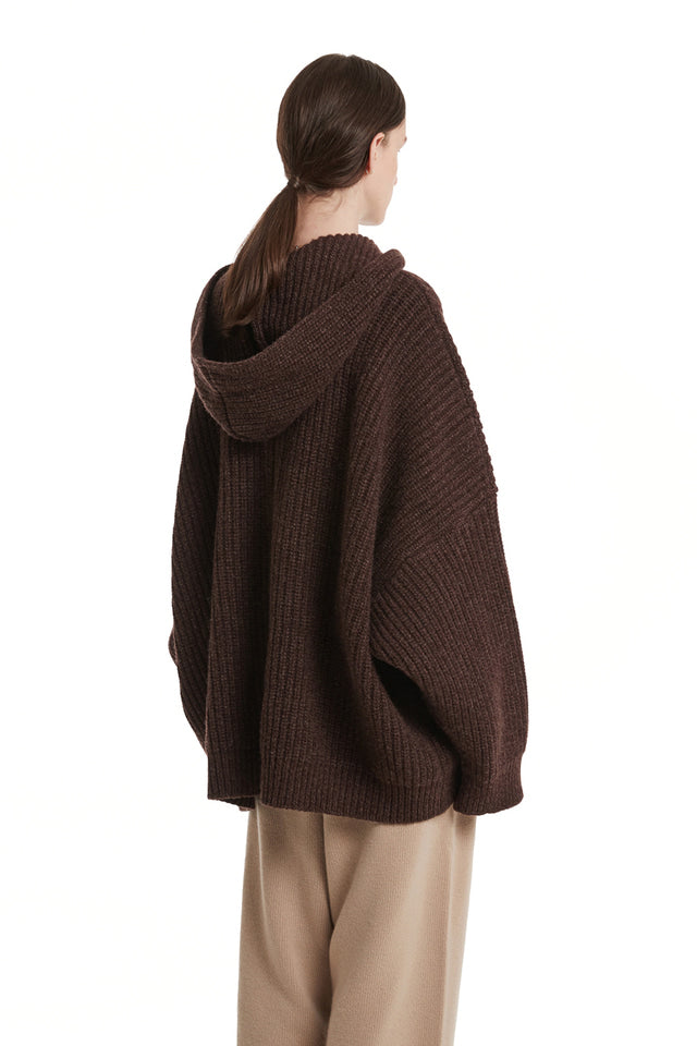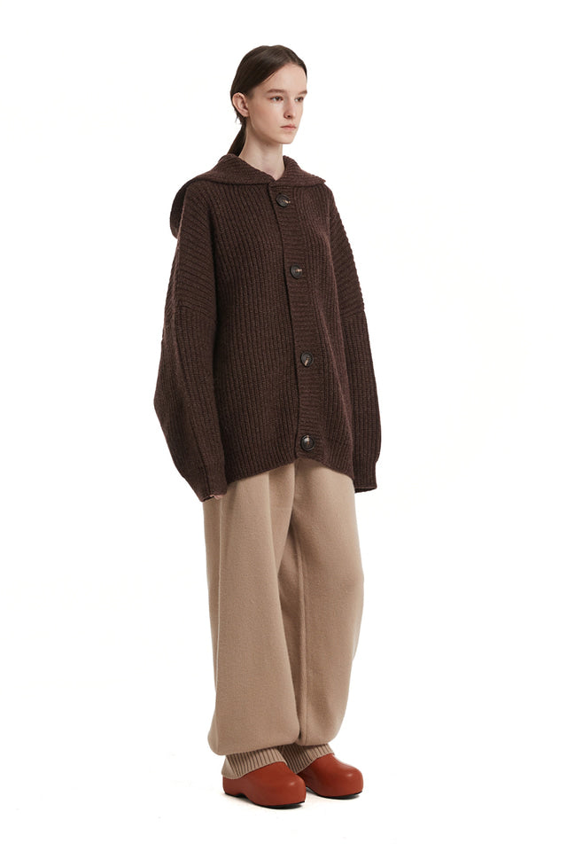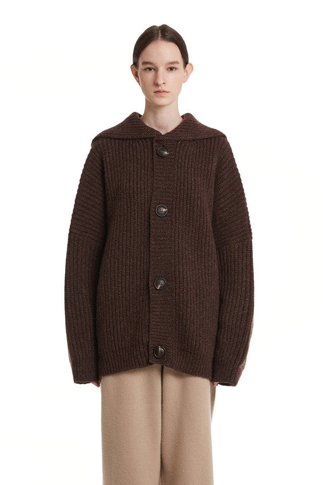 Description:- Over fit- Long sleeve rib knit cashmere and wool-blend - hoodie cardigan- in dark brown- Dropped Shoulder- Four big button closure at front- Logo-engraved tortoiseshell hardwareMaterial:80% Wool20% NylonDRY CLEAN ONLYSize S: Length 74 / Shoulder 80 / Chest 80 / Sleeve 44Size L: Length 78 / Shoulder 84 / Chest 84 / Sleeve 48
