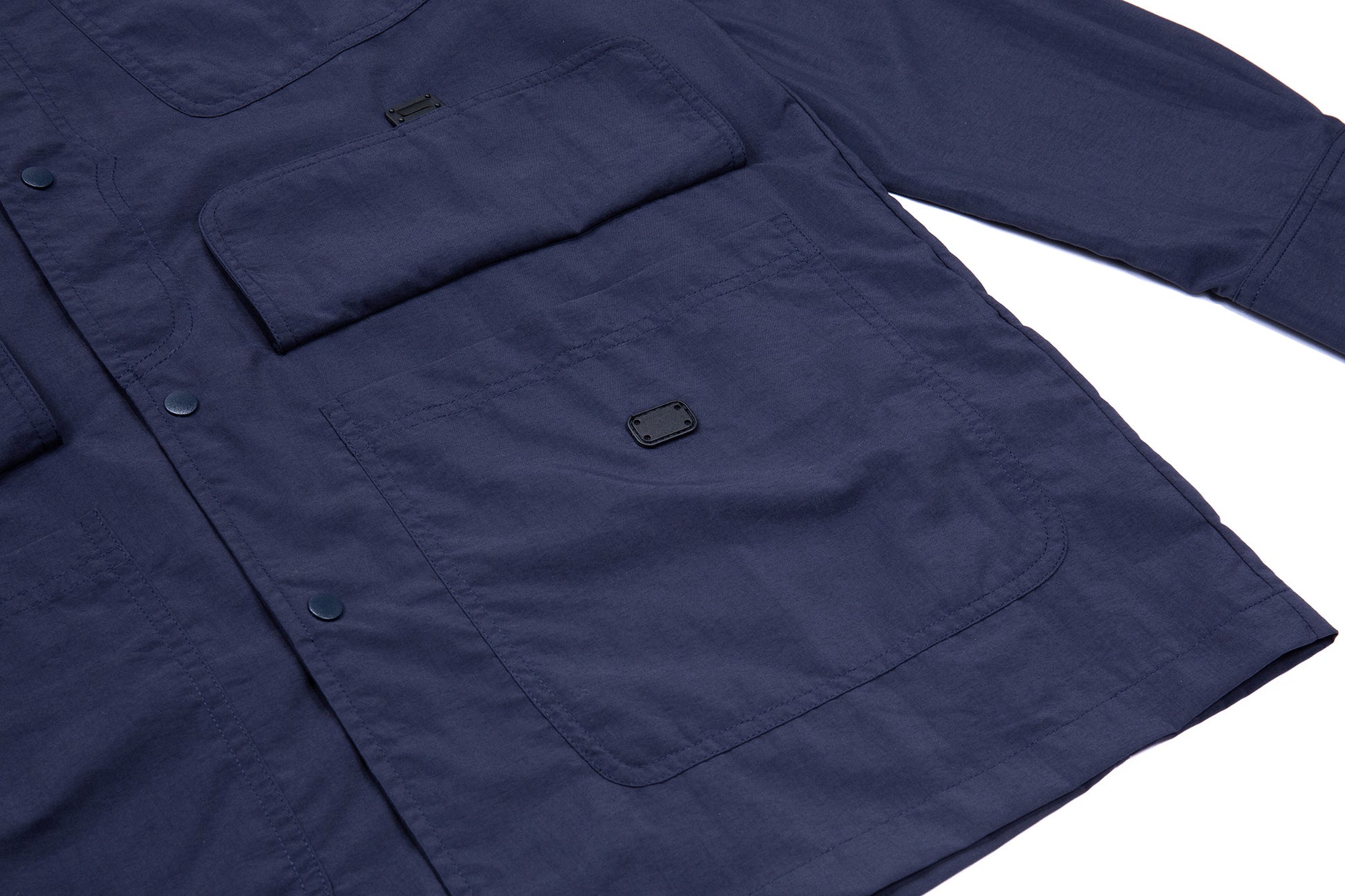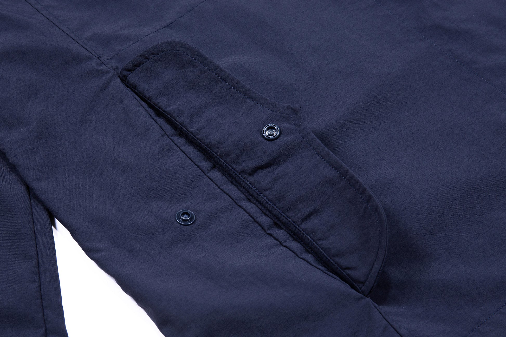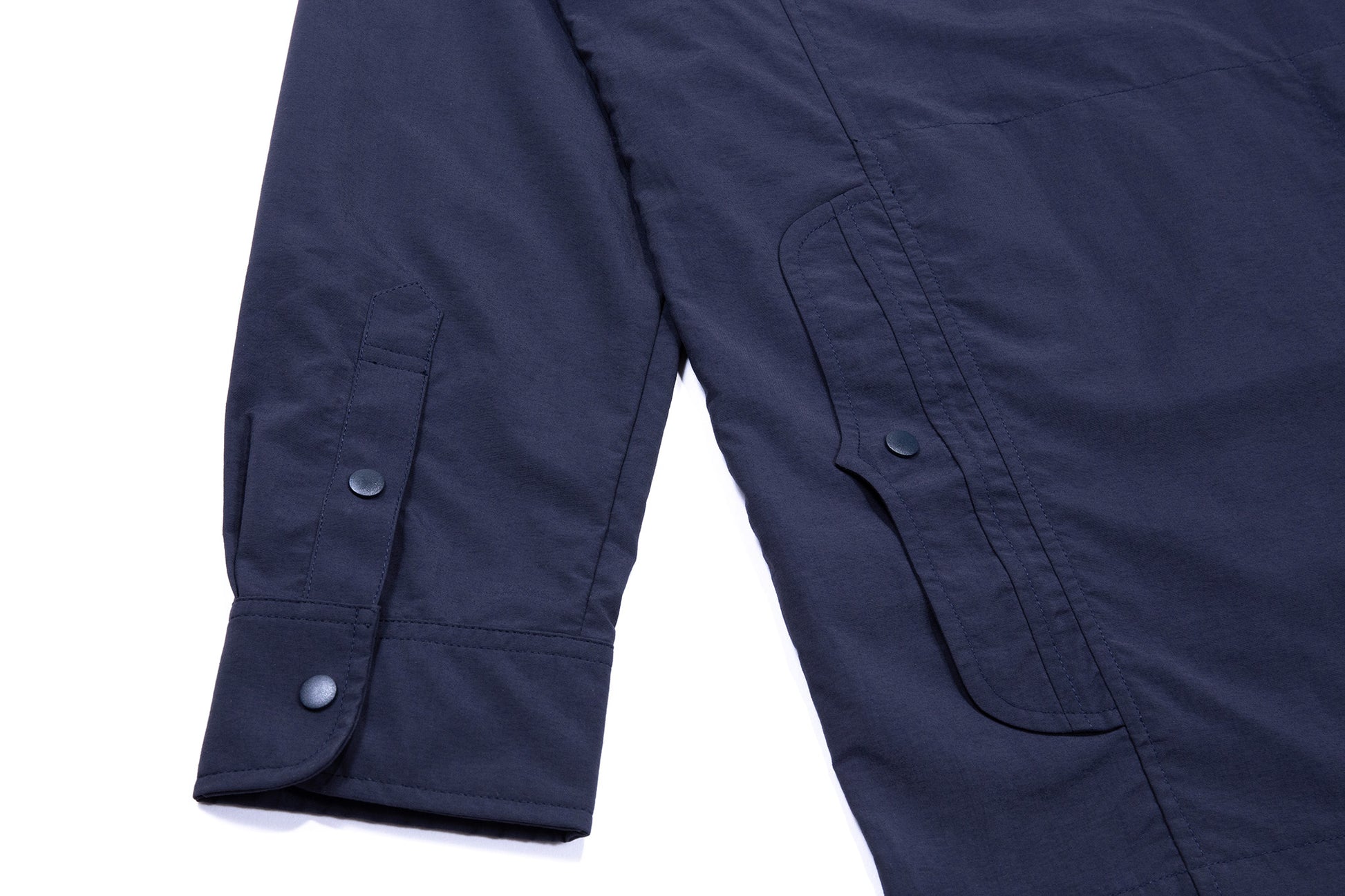 門襟隱藏弧形貼邊口袋與腰後兩側袋蓋口袋