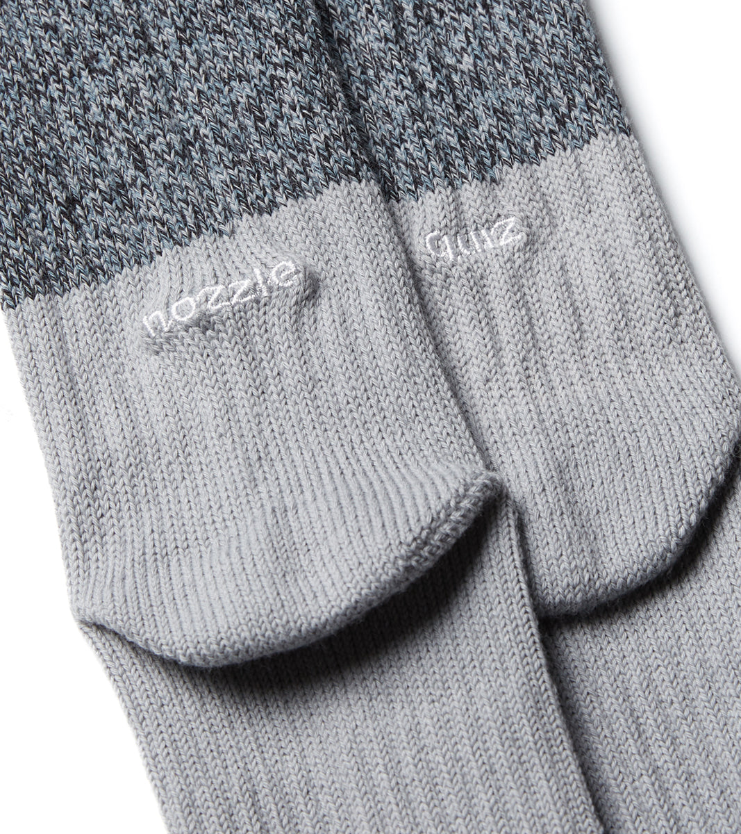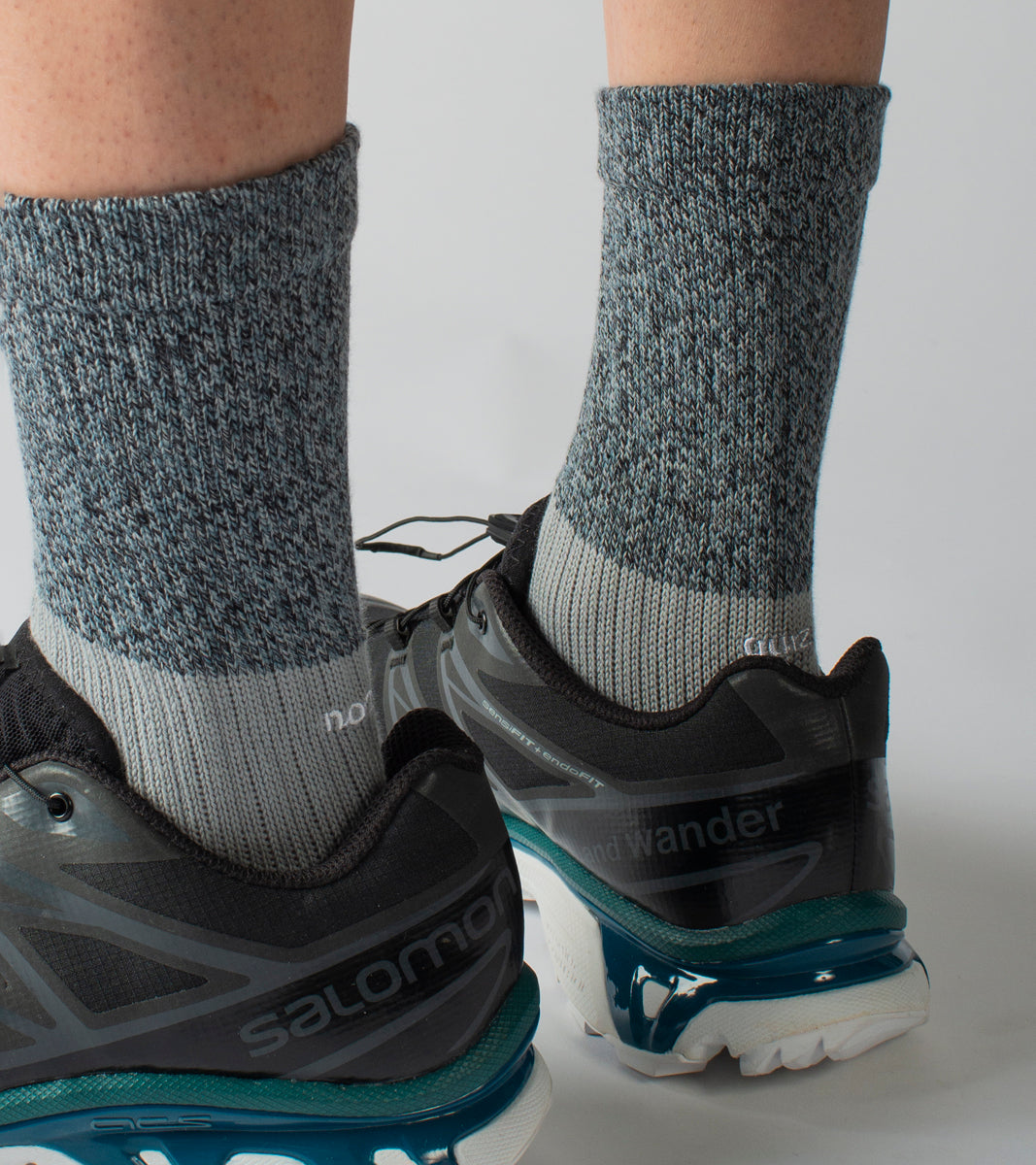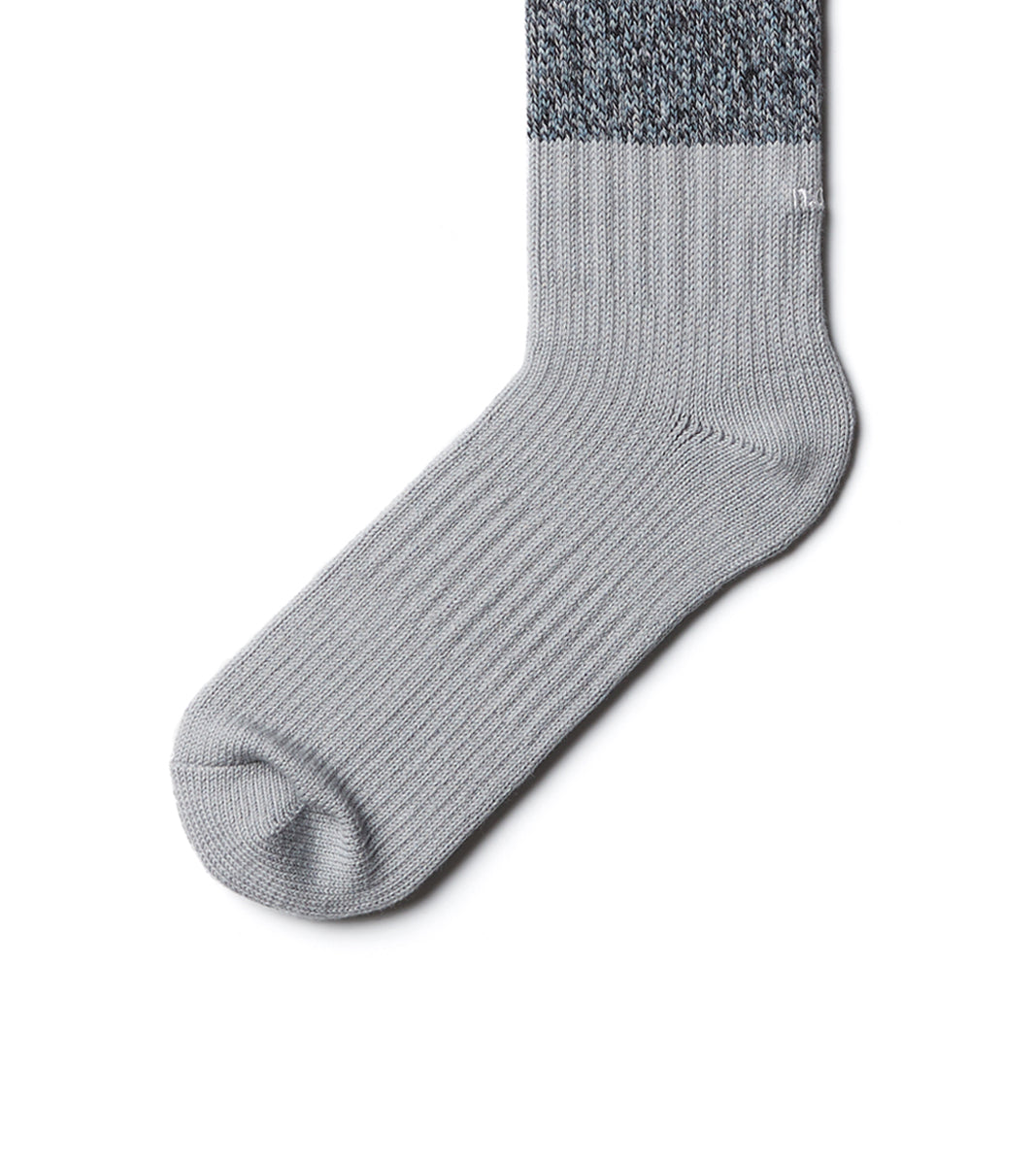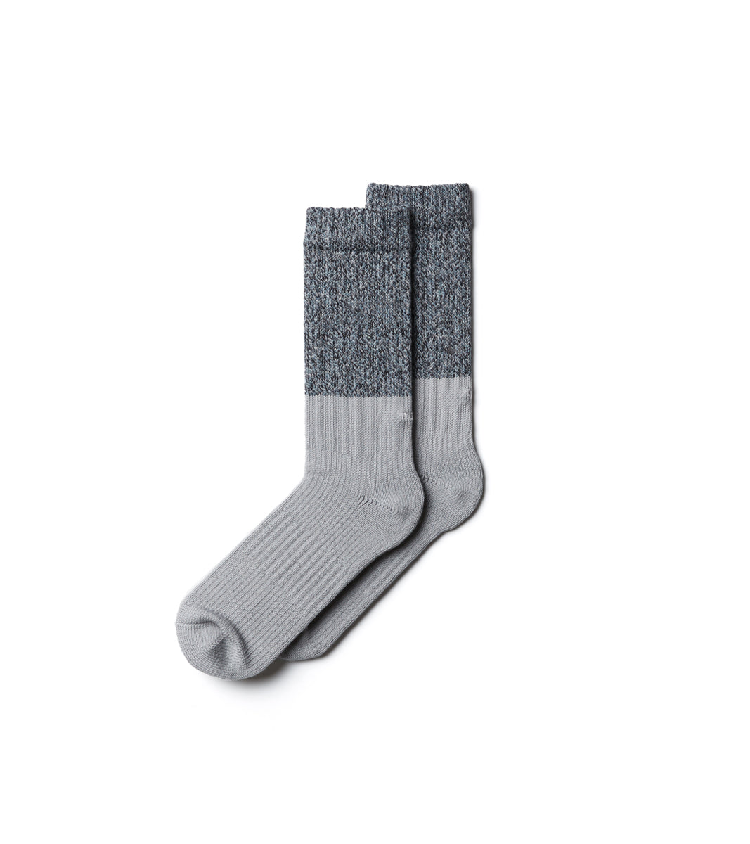 The simplistic texture and design positions the sock as an apparel item that can complement any outfit for the monochrome sock and mixed yarn structure to reveal itself in the small opening between shoes and pants.