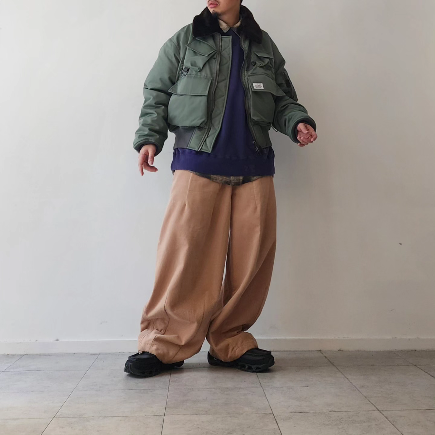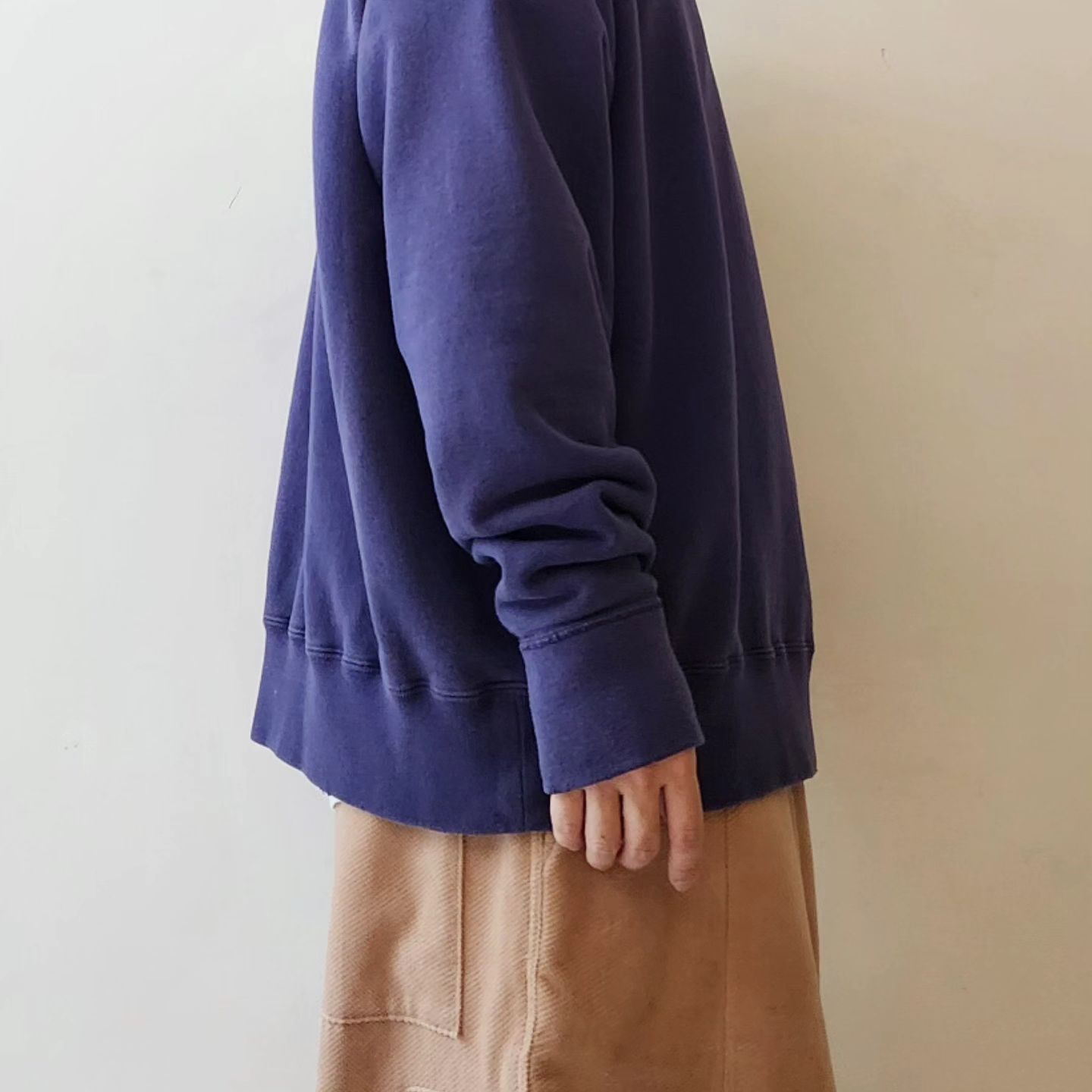 -This loop-knit fabric is knitted in Wakayama Prefecture and can only be knitted at a rate of 1 meter per hour.  This is a special fabric that expresses a fuller and voluminous feel by knitting the reverse side of the loop-knit fabric irregularly with long and short piles.  In addition to custom-ordering the round body finish, the eggplant navy blue color was originally produced.