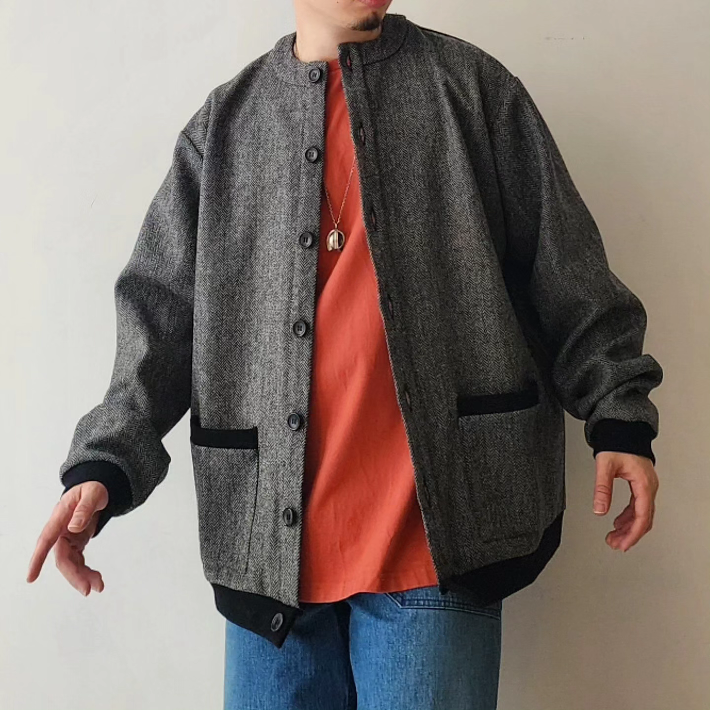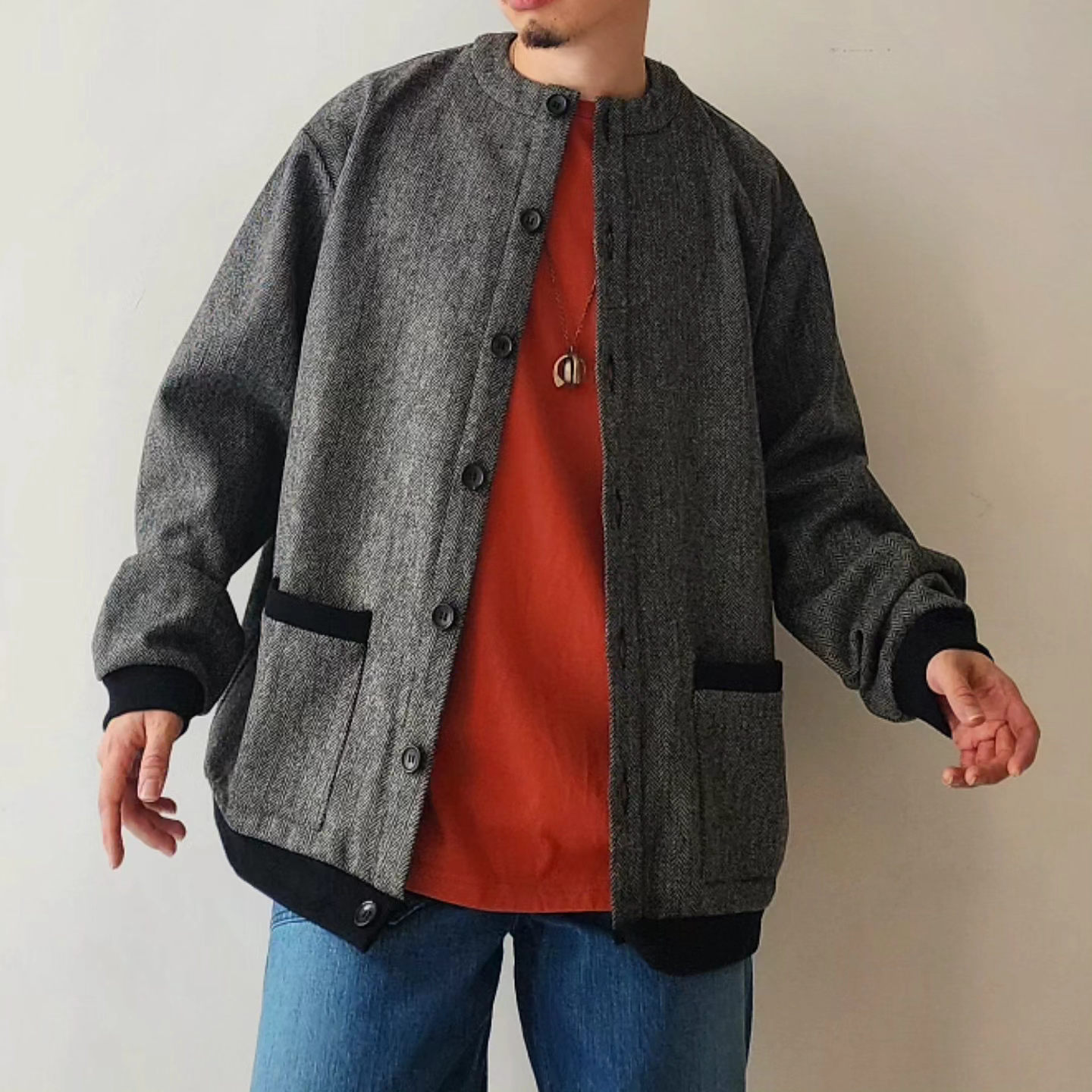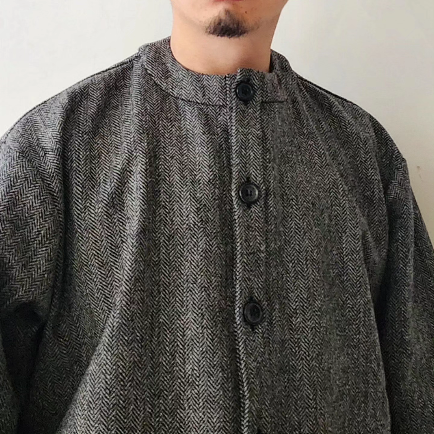-It incorporates details typical of a Tyrolean jacket, such as thick woolen fabric, single-breasted fabric, and slightly oversized buttons on the placket, and is made in a hyper-large size so that it can be worn with an outerwear-like mood.