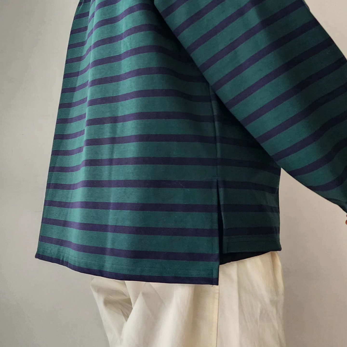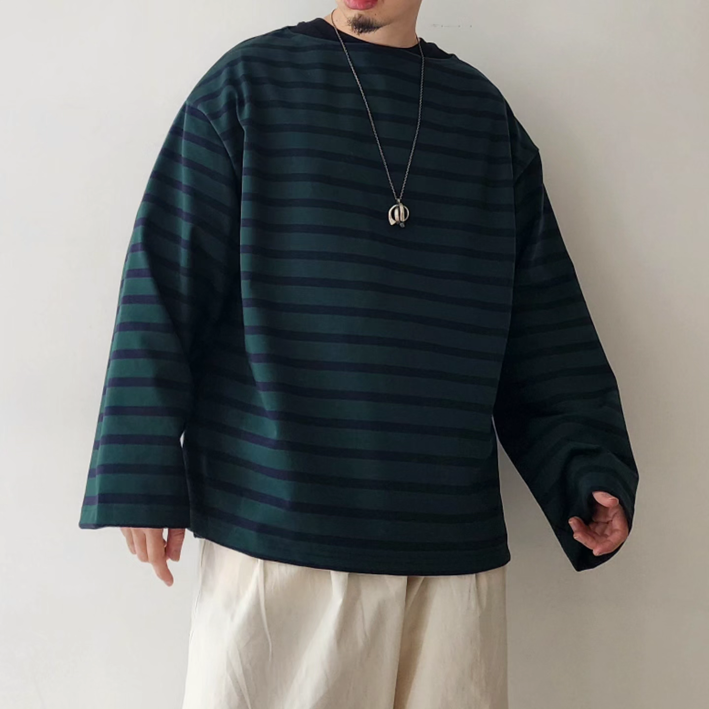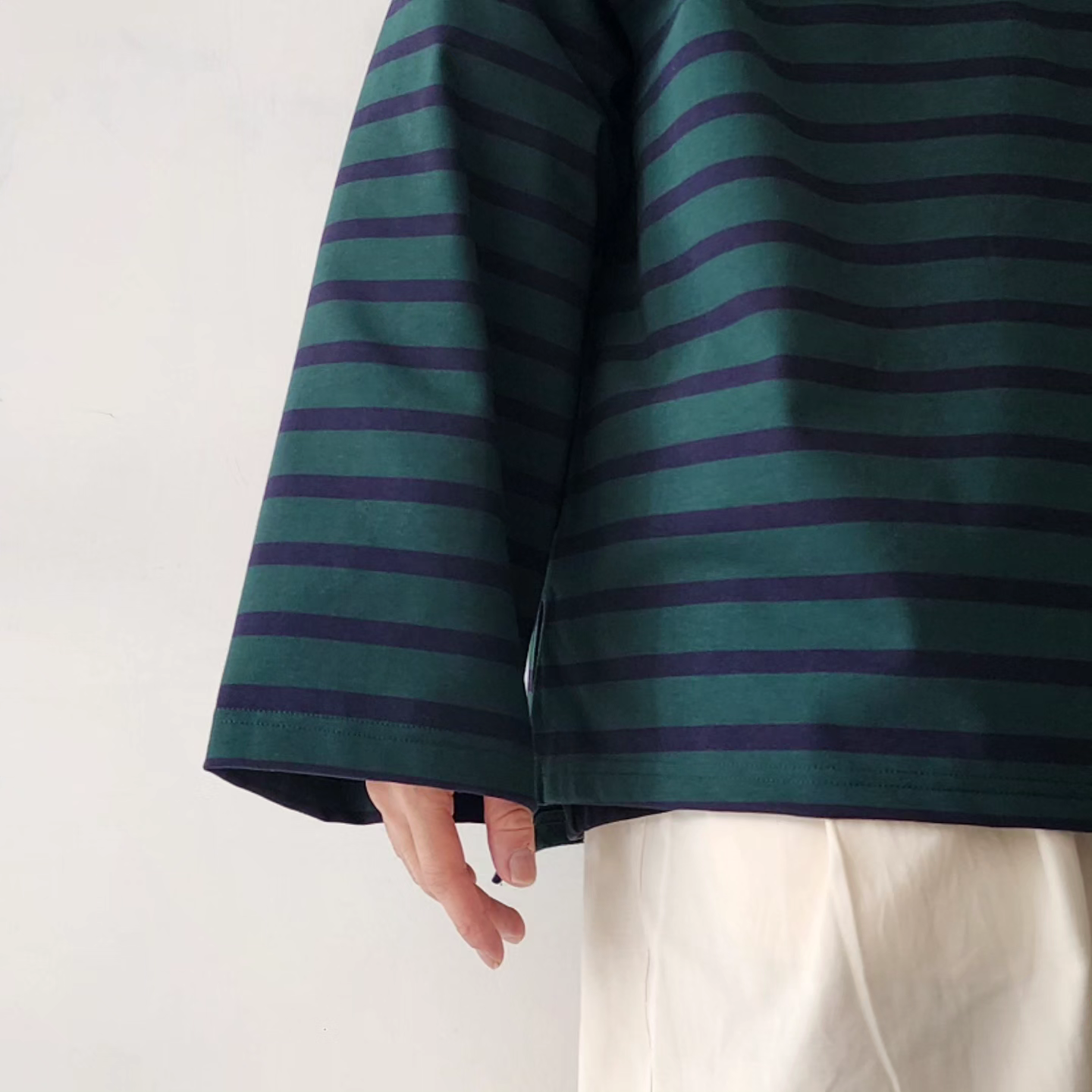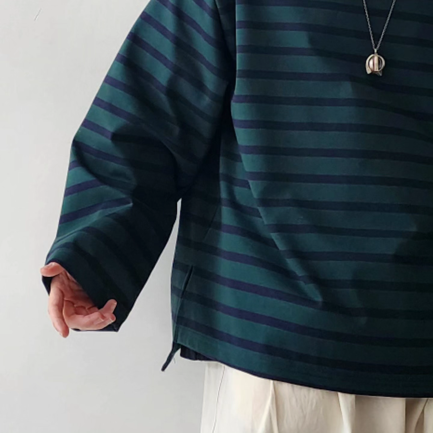 -It has a generous size that makes your body swim, but the neck and cuffs are balanced so that you can wear it alone without feeling uncomfortable.