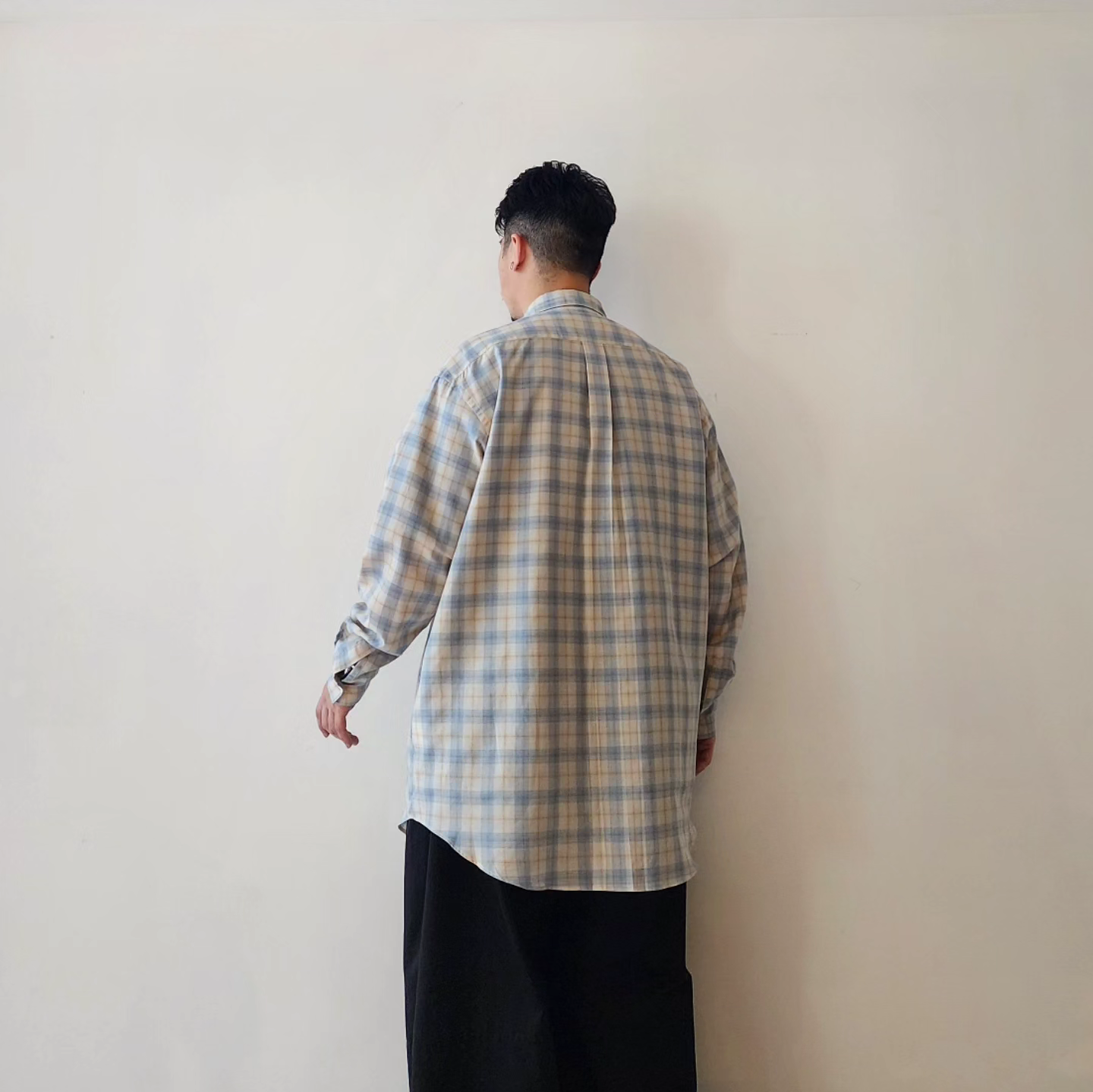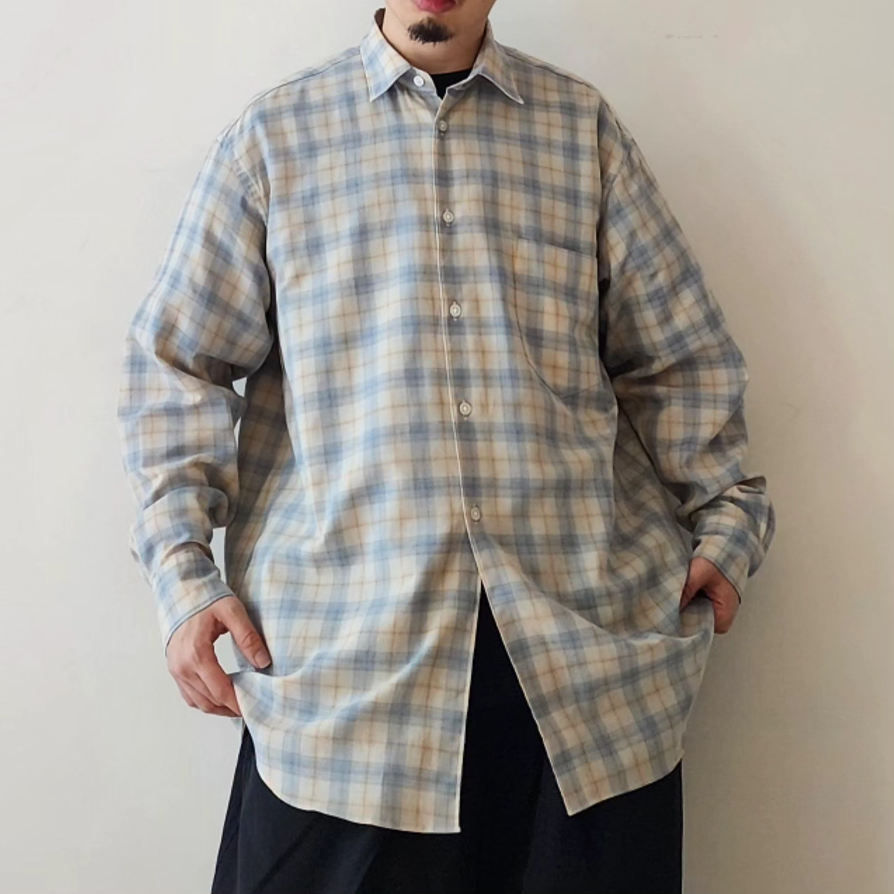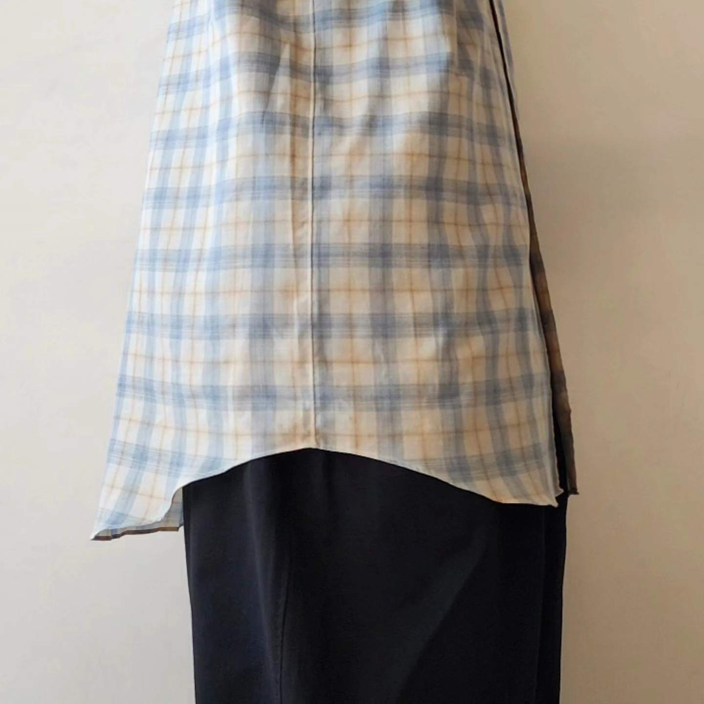A check fabric made by combining Supima cotton and wool. It has a soft feel like wool, but the surface texture is well-balanced, and it is a supple material that is easy to remove from the skin. It is almost not see-through, but it is light and has a beautiful drape.