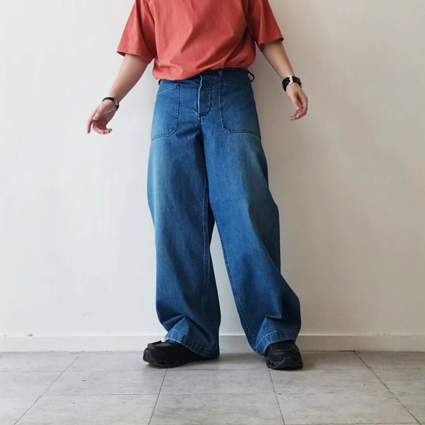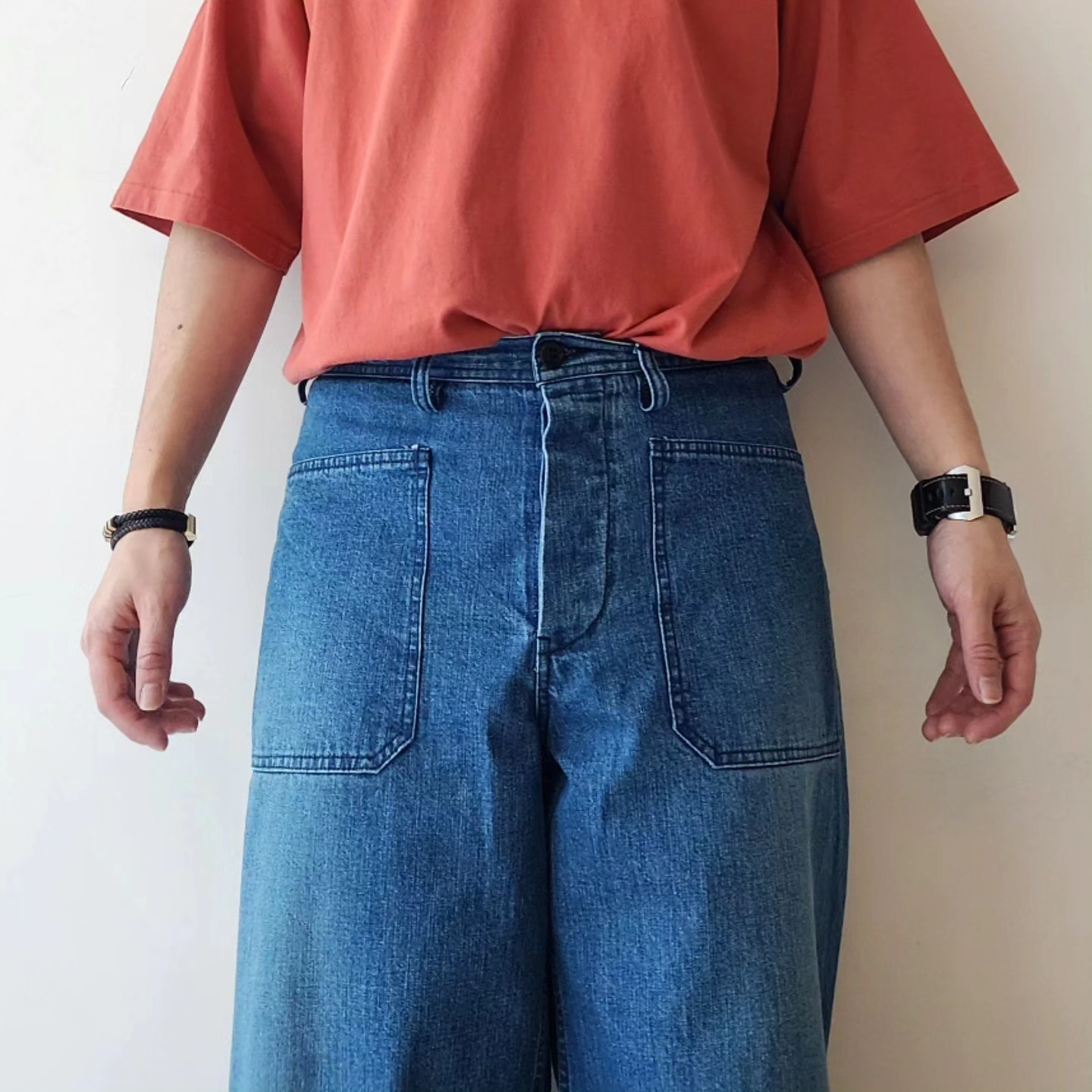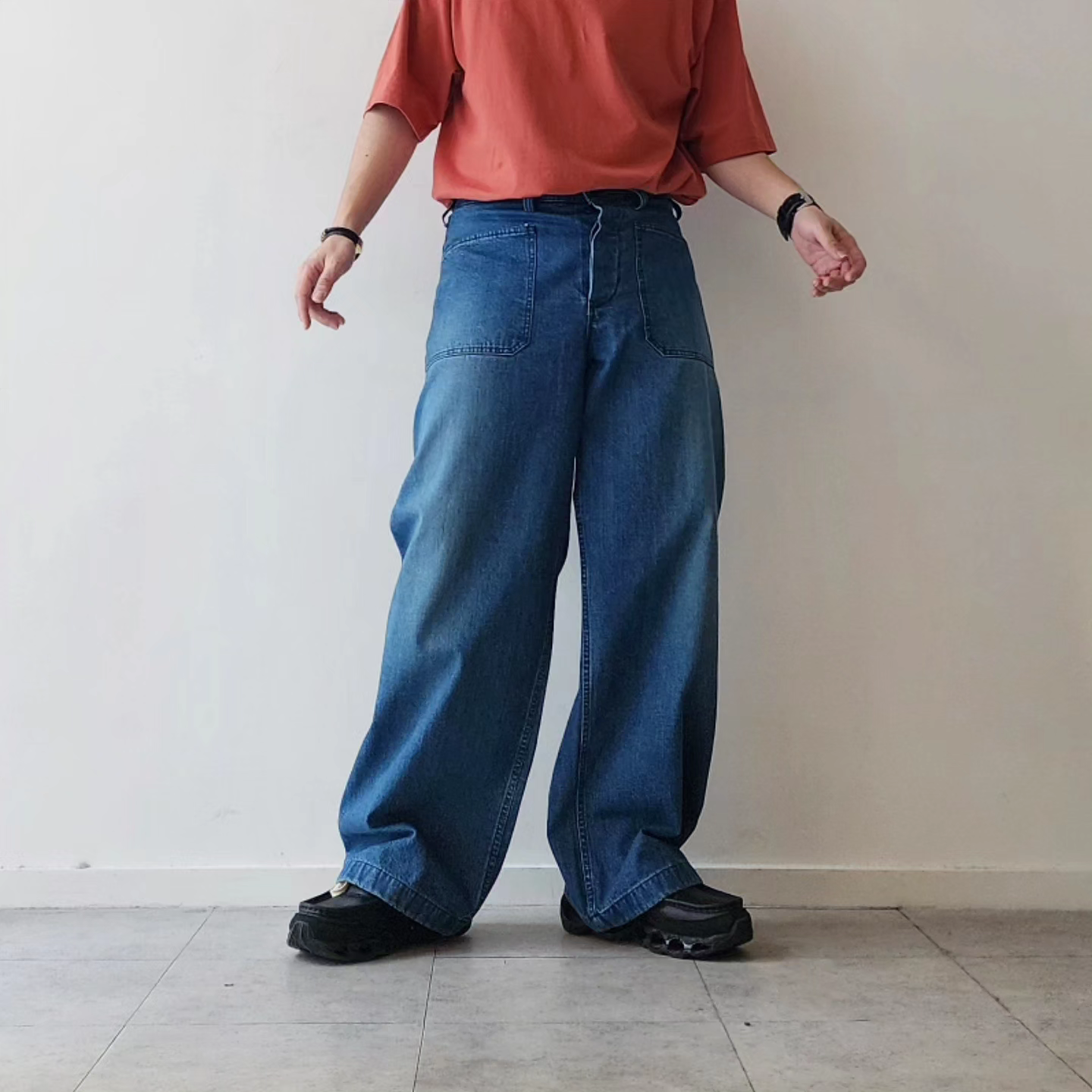 -These pants are based on the 1940s US Navy denim sailor pants (commonly known as ``rolled pants''), which have an anecdote that they were the first US Navy item to use denim.