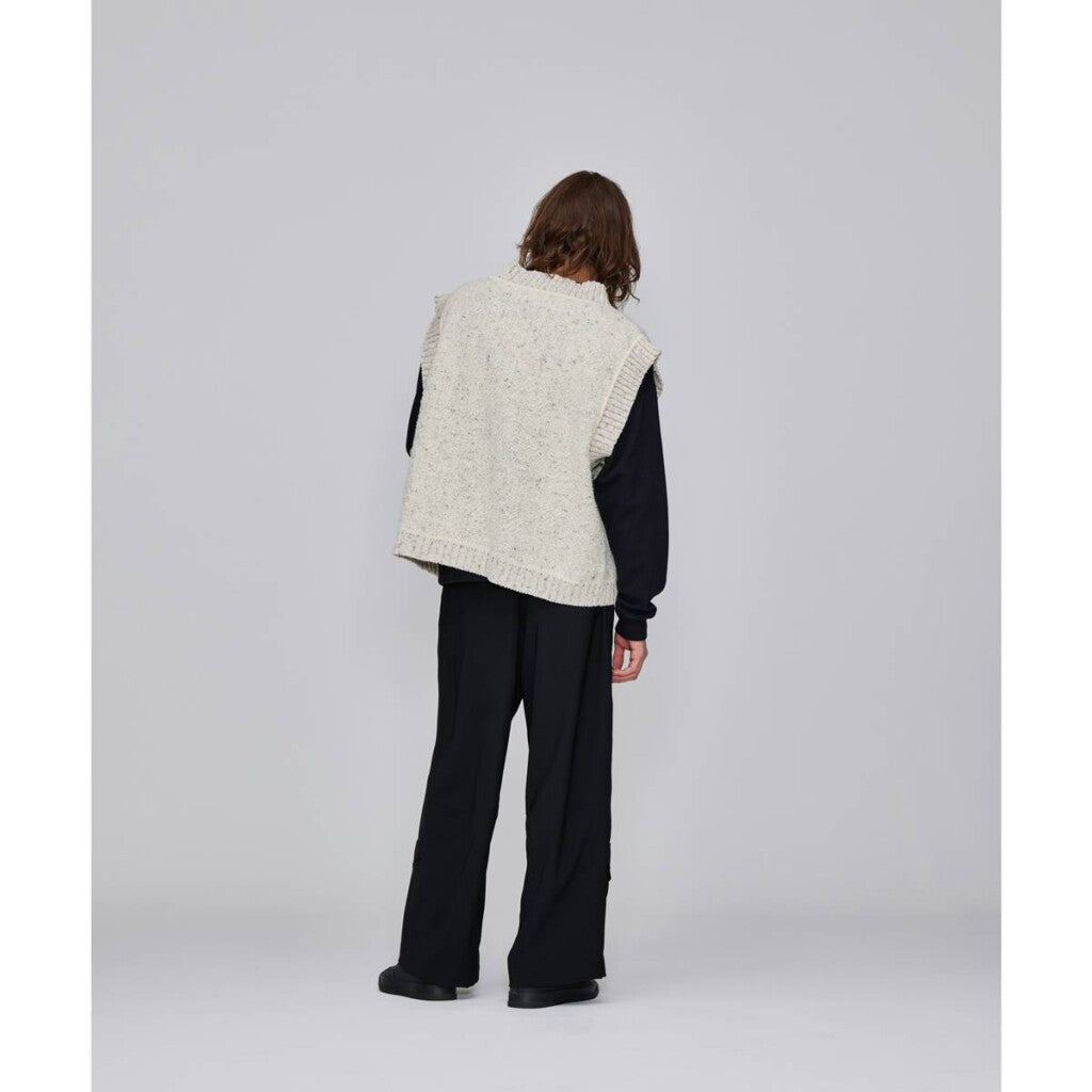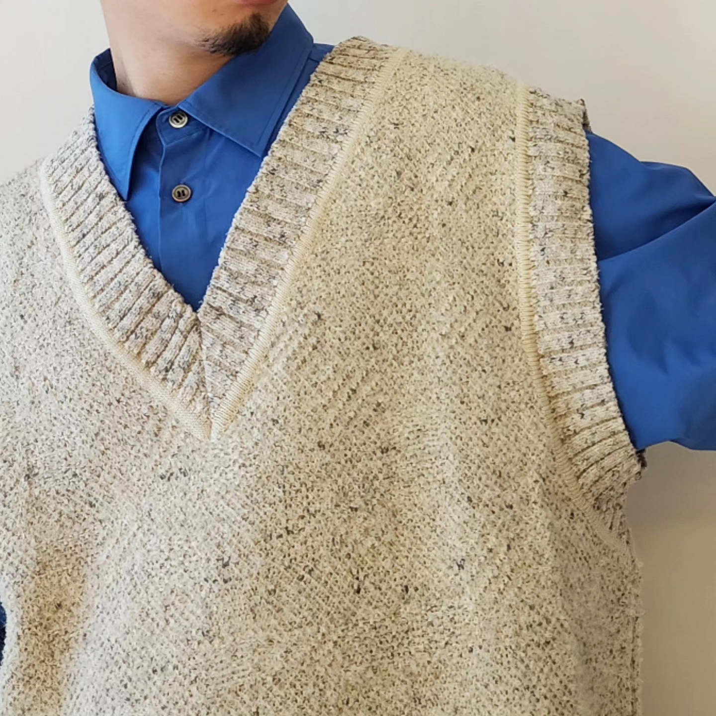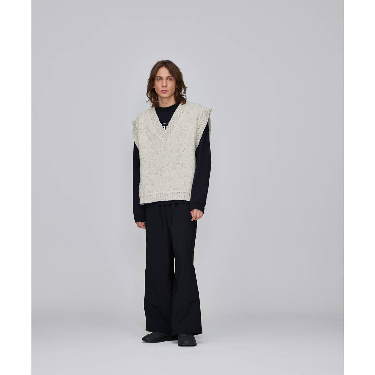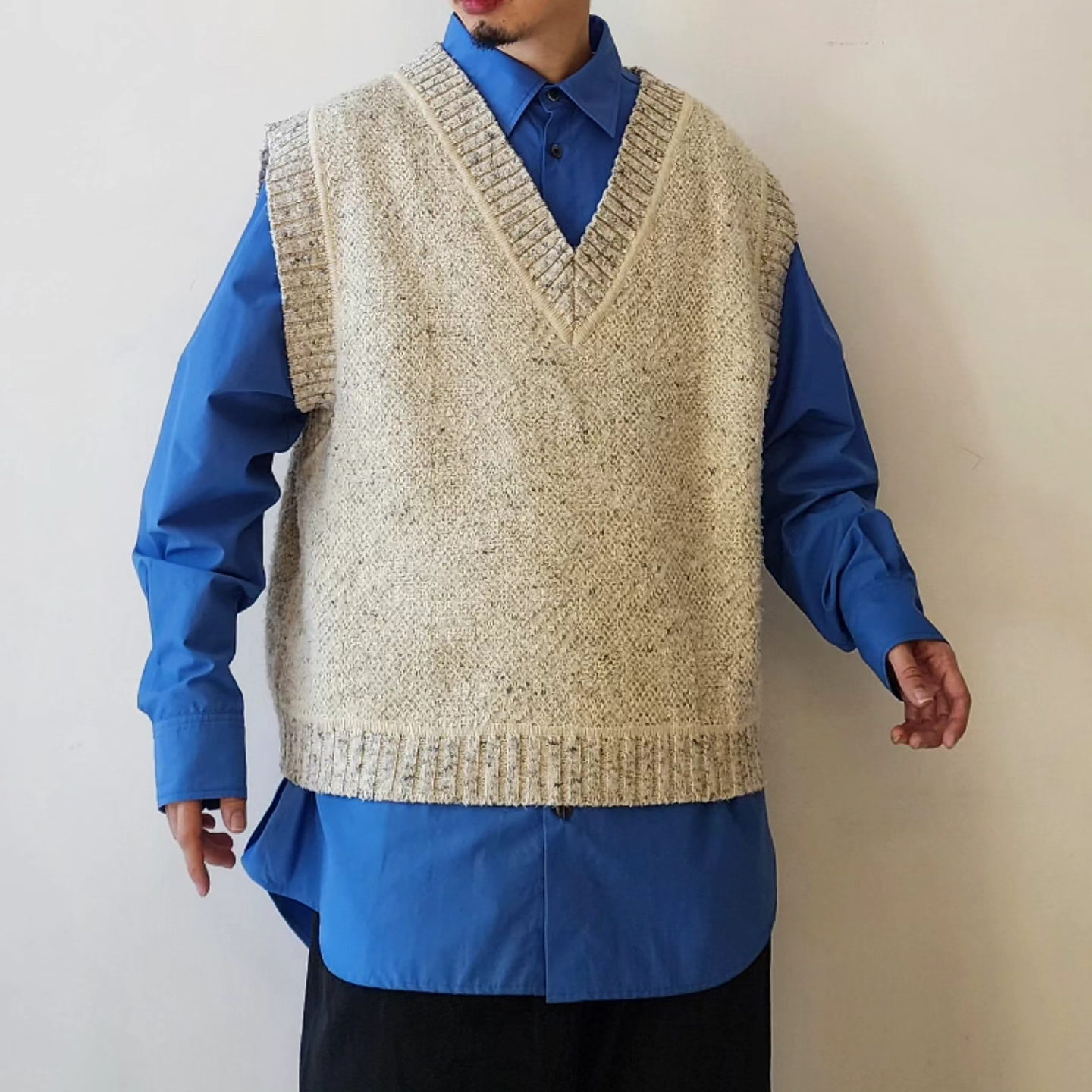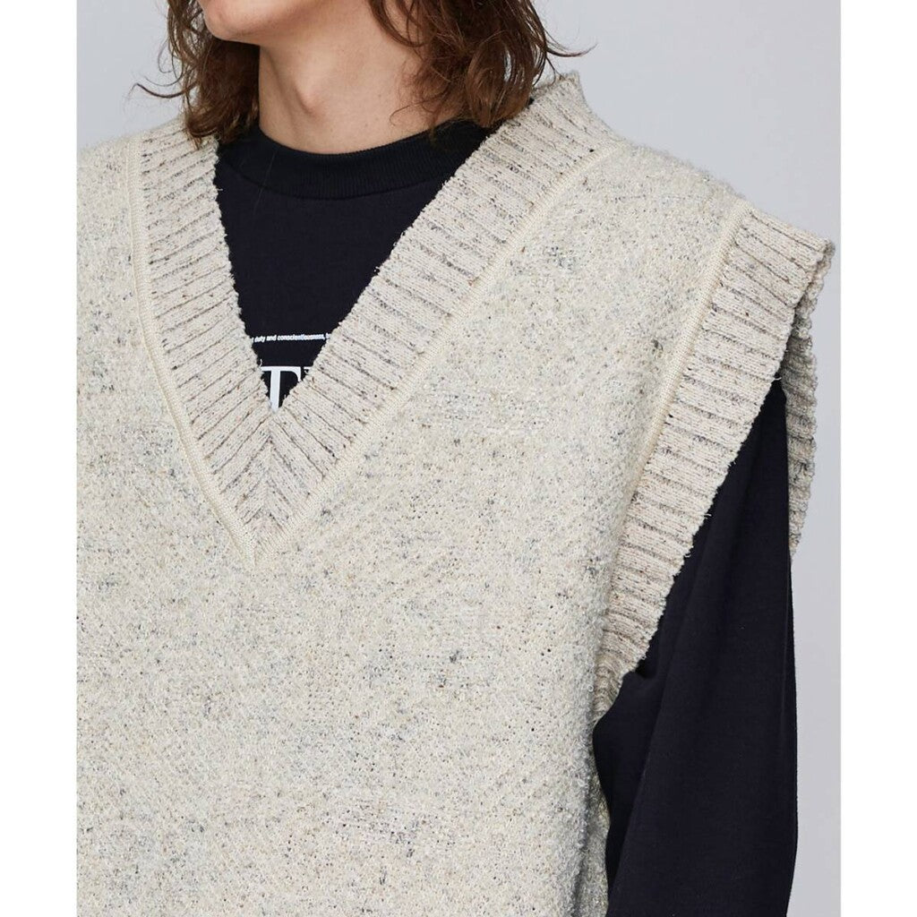 ■Big silhouette vest featuring deep V-neck