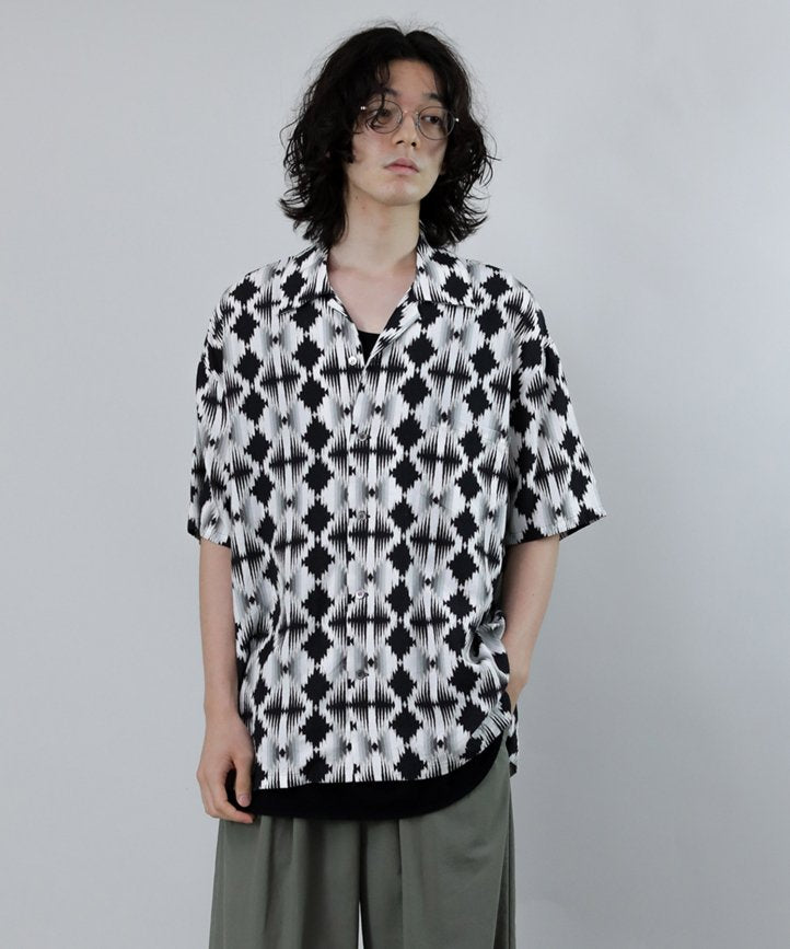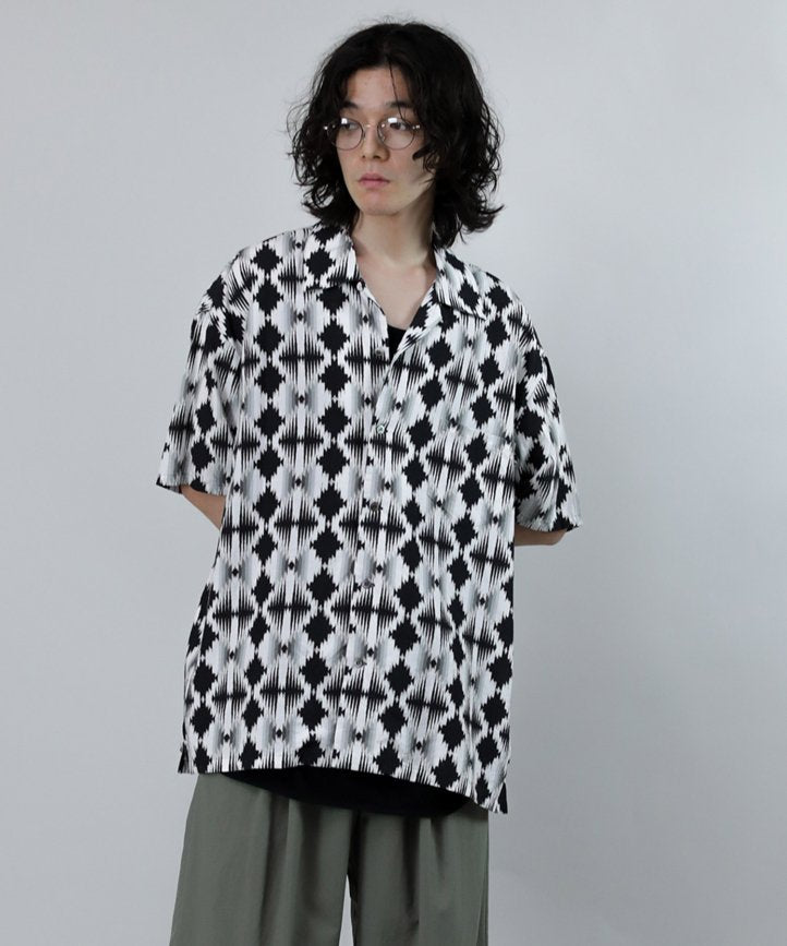 ■ Open color half-sleeve shirt using original fabric with inkjet print