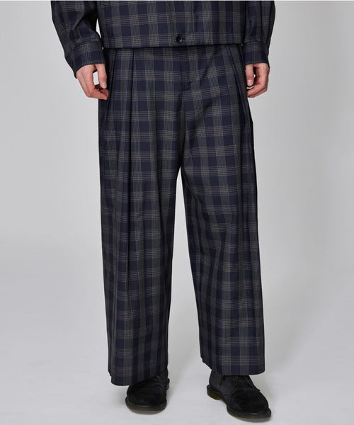 ■Uses a glen check material that is supple and drapey, with a clear surface feel.