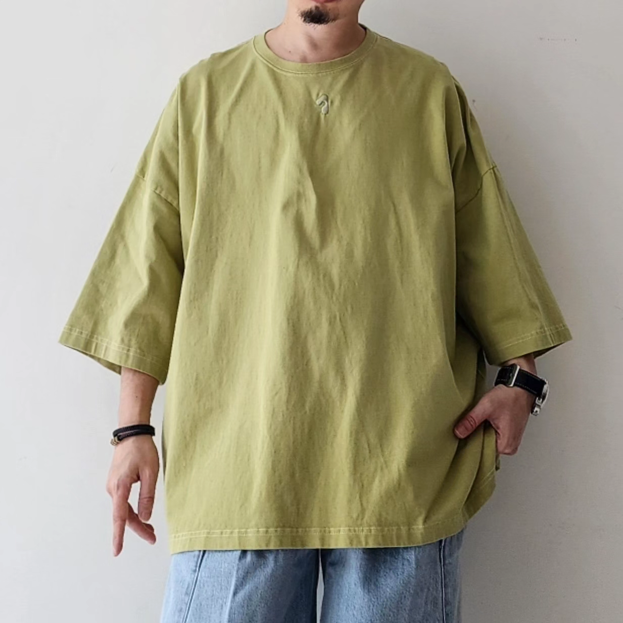-A TEE shirt with JieDa's classic silhouette oversized TEE that has been overdyed.