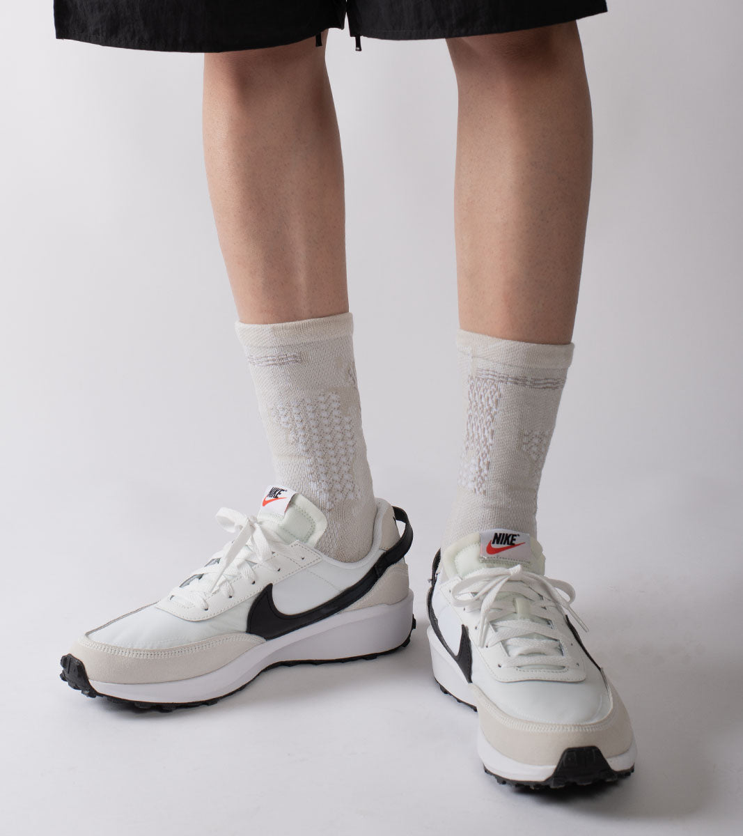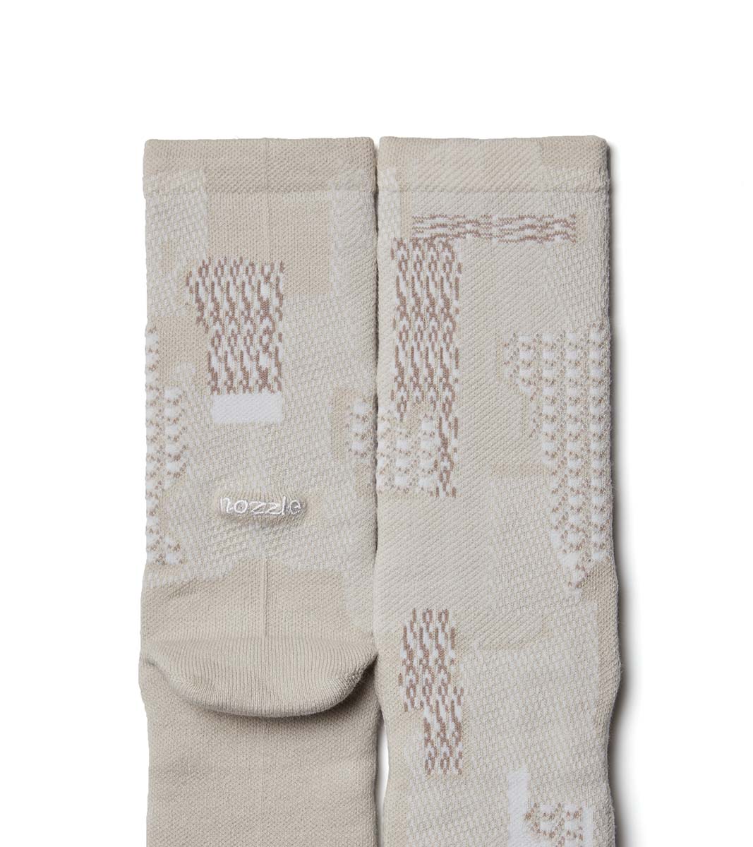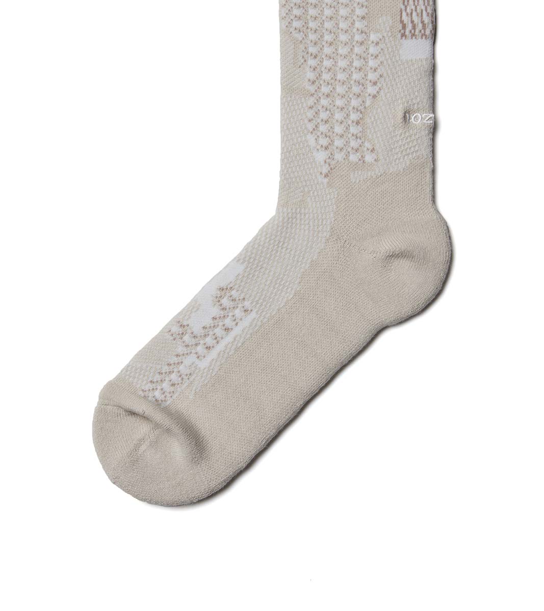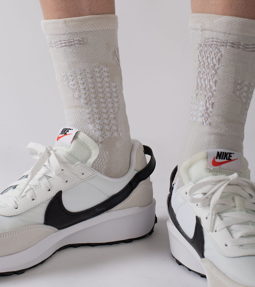 - Patchwork is a design element that we are very familiar with. For the patchwork sock from our December offering, if you take a closer look, you can see the different structures and arrays overlapping to create the overall look. It kind of looks like a puzzle or Boro design. This is a special December edition and so it’s richer, more festive, and more unique. We think it would be great as a gift or for any daily outfits.