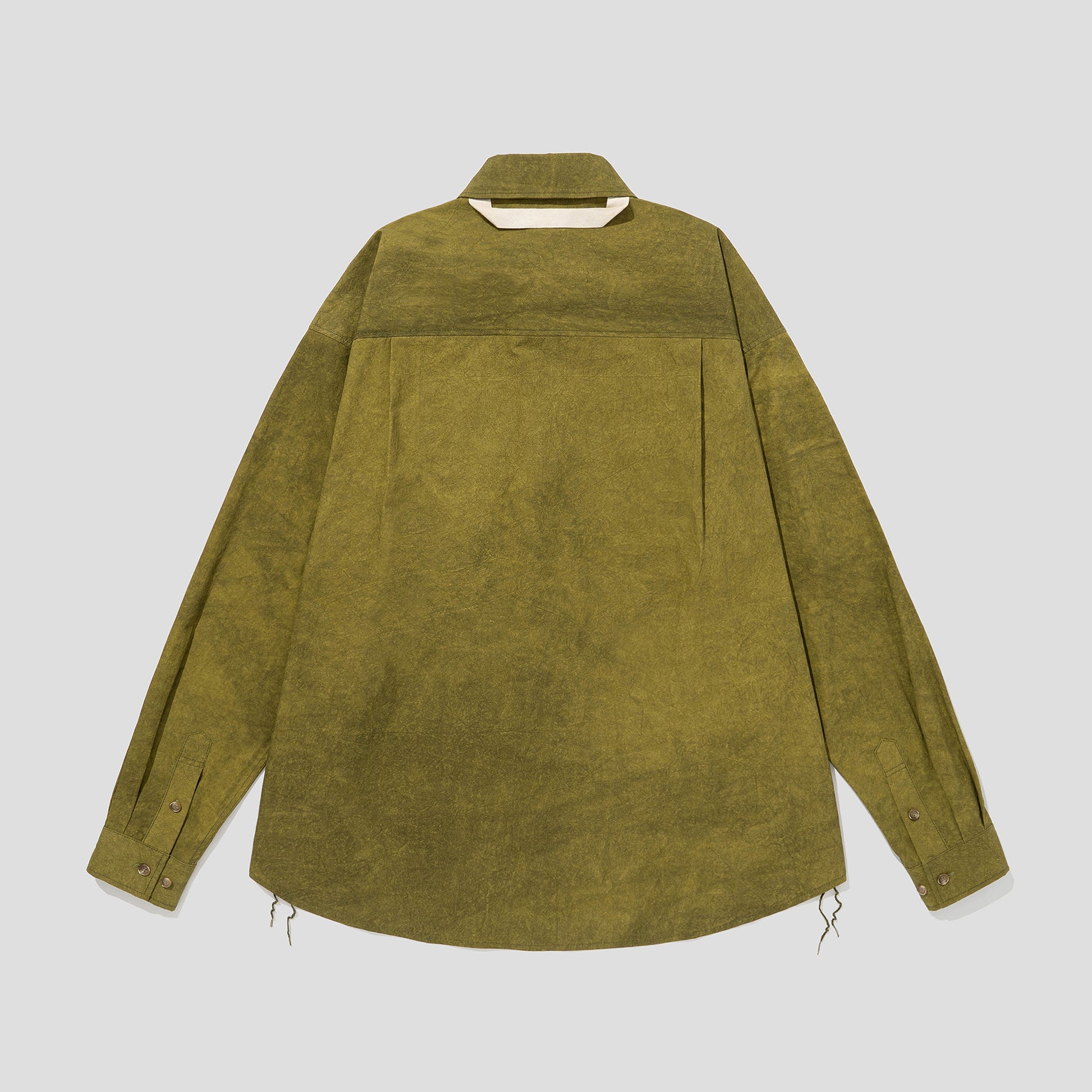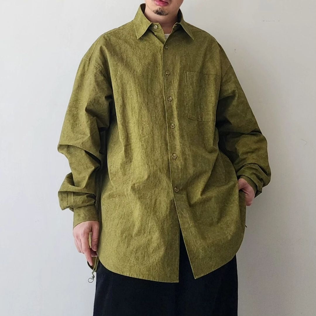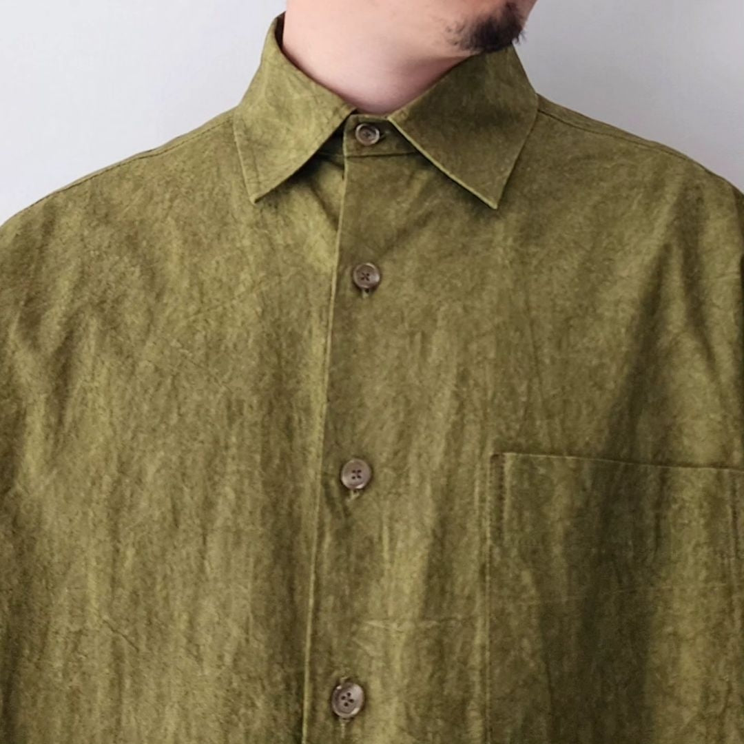 -Crafted from fabric dyed by hand using natural pigments, the 'NATURAL DYED LAZY OVER SHIRTS' offers an oversized silhouette and a luxurious structure.