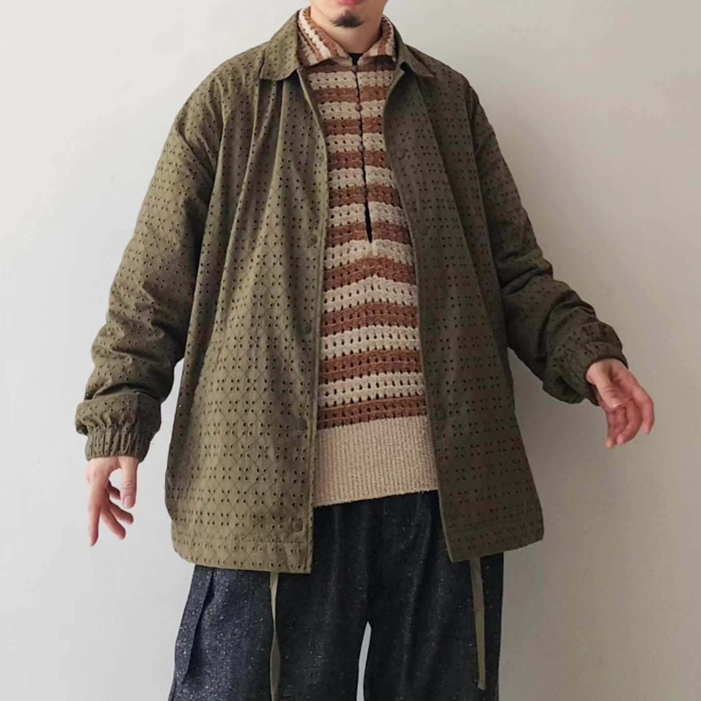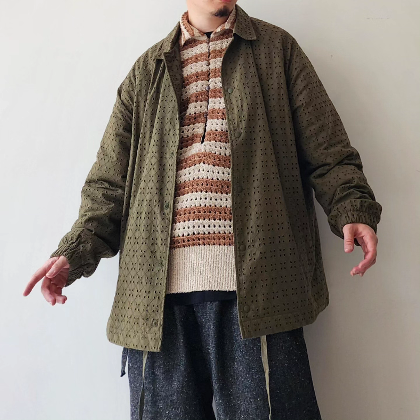 MERELY MADE / Olive Khaki Merely Premium Flower Lace Coach Jacket