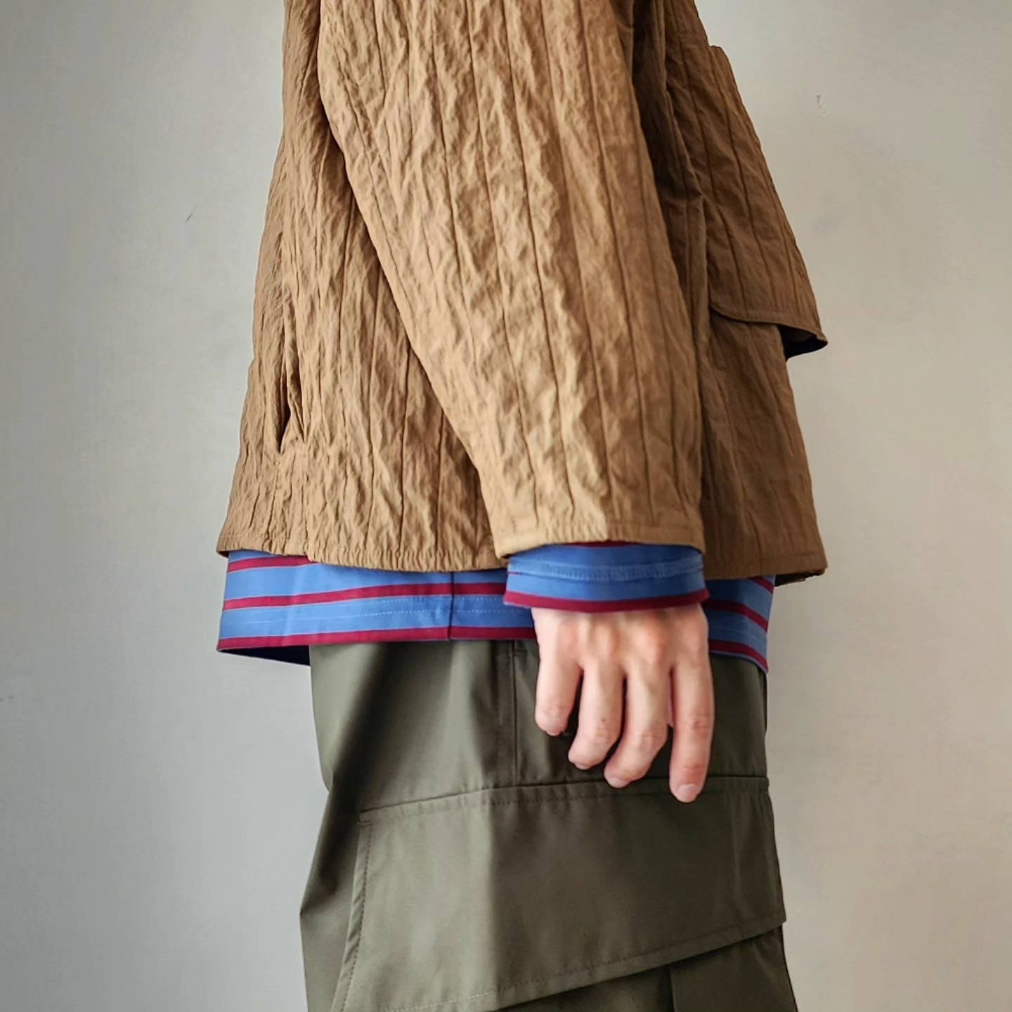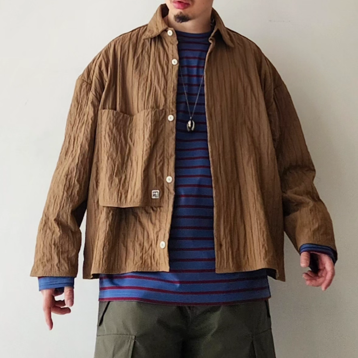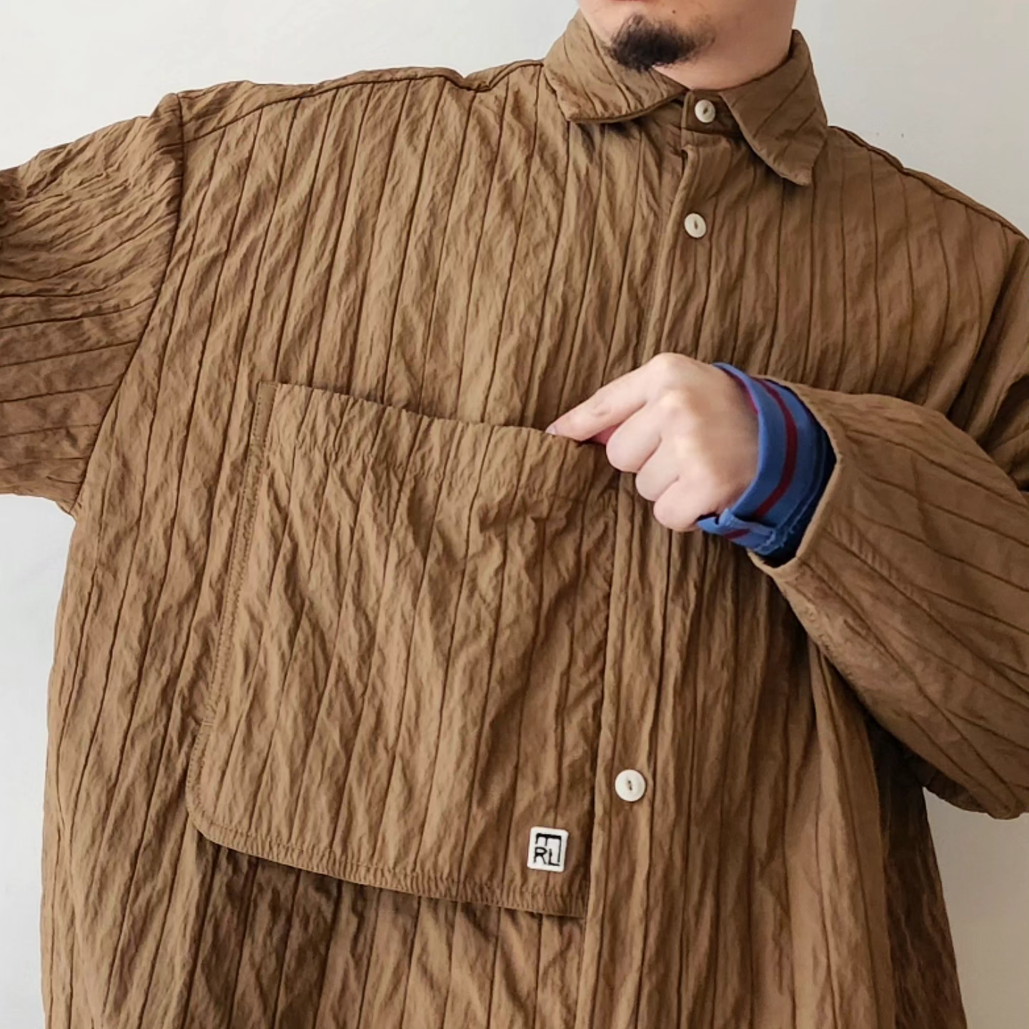 -Featuring a fabric with natural wrinkles and stretch, the best-selling 'QUILTED CROPPED SHIRT' stands out with its quilted texture.