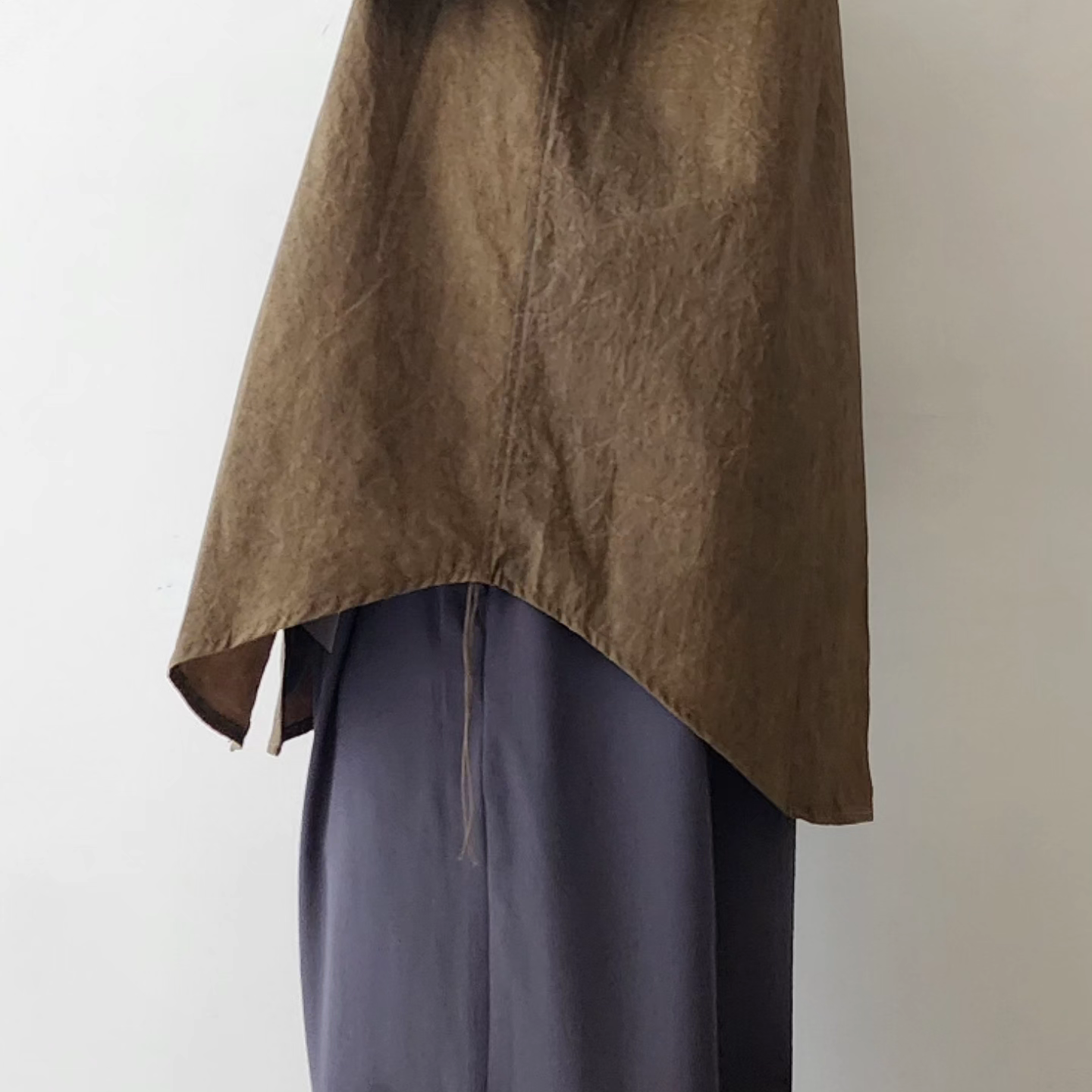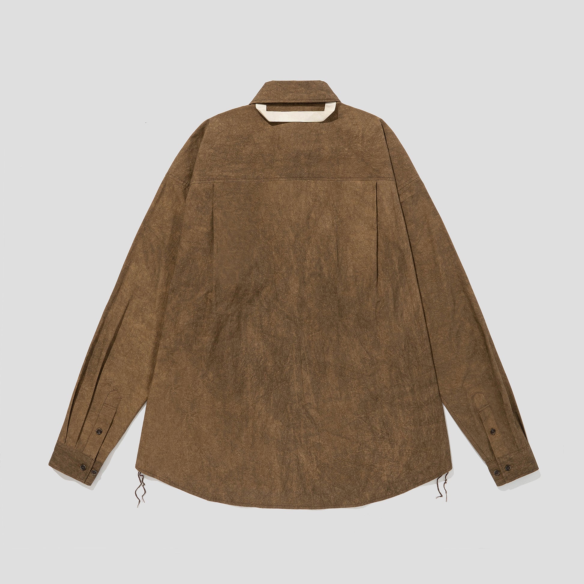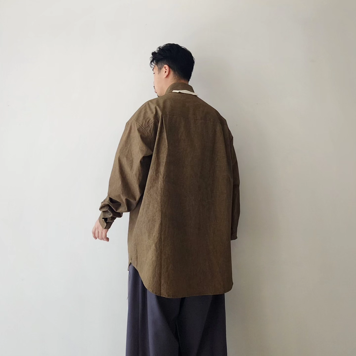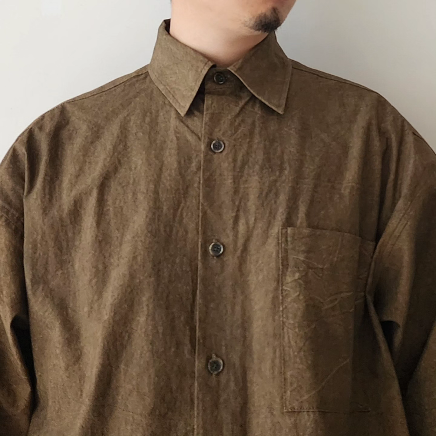 -Crafted from fabric dyed by hand using natural pigments, the 'NATURAL DYED LAZY OVER SHIRTS' offers an oversized silhouette and a luxurious structure.