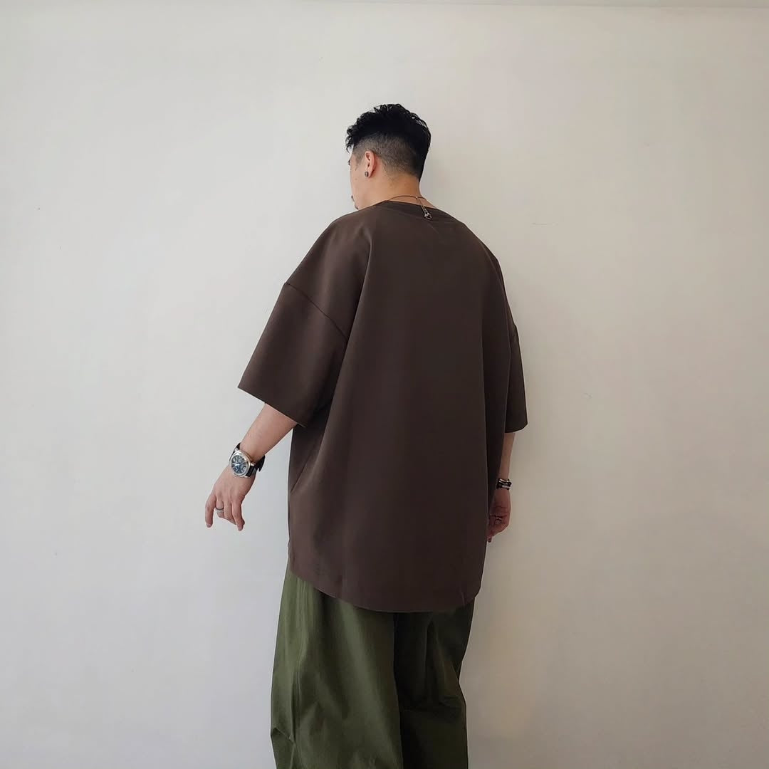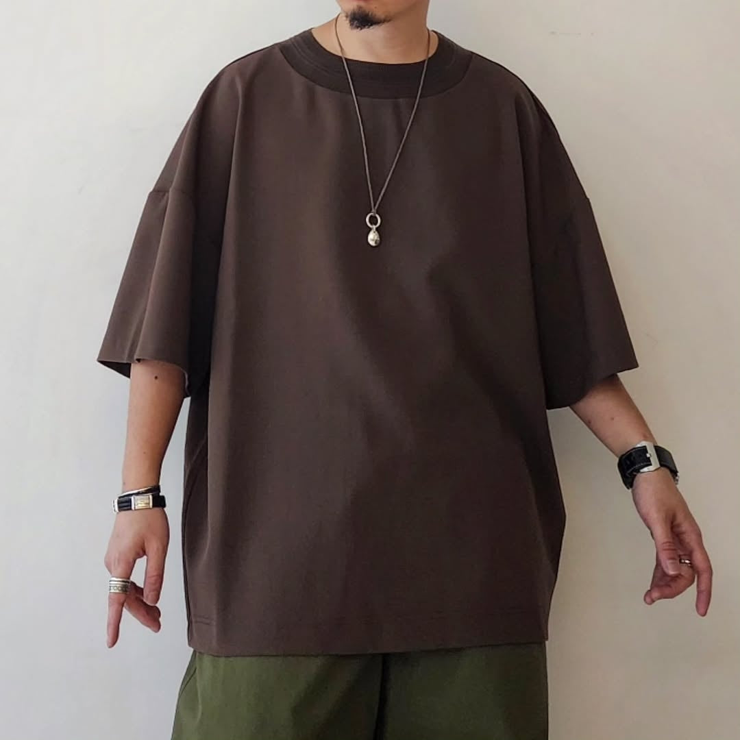 MERELY MADE / Wood Brown Merely Wide Round Neckline T-Shirts