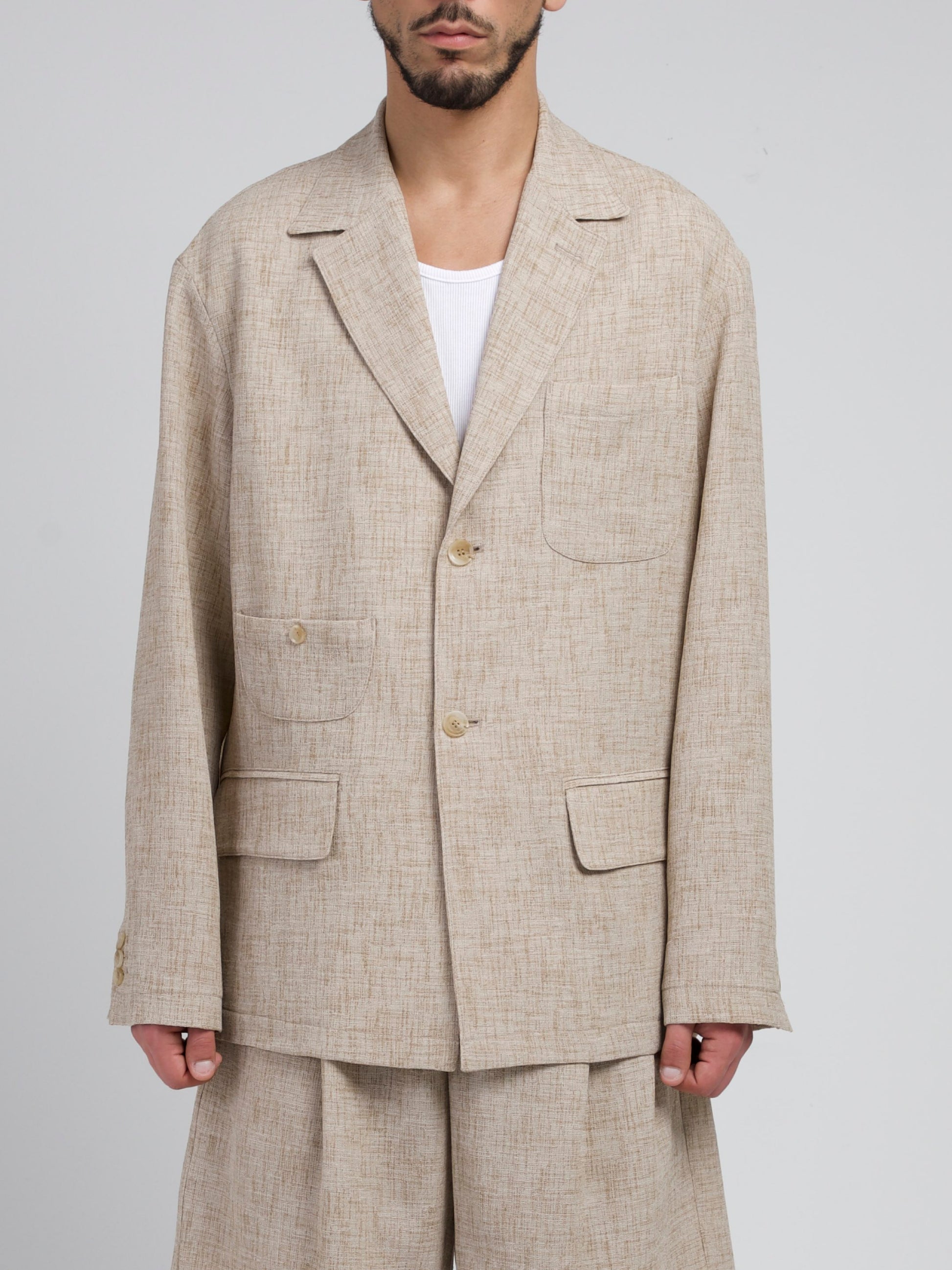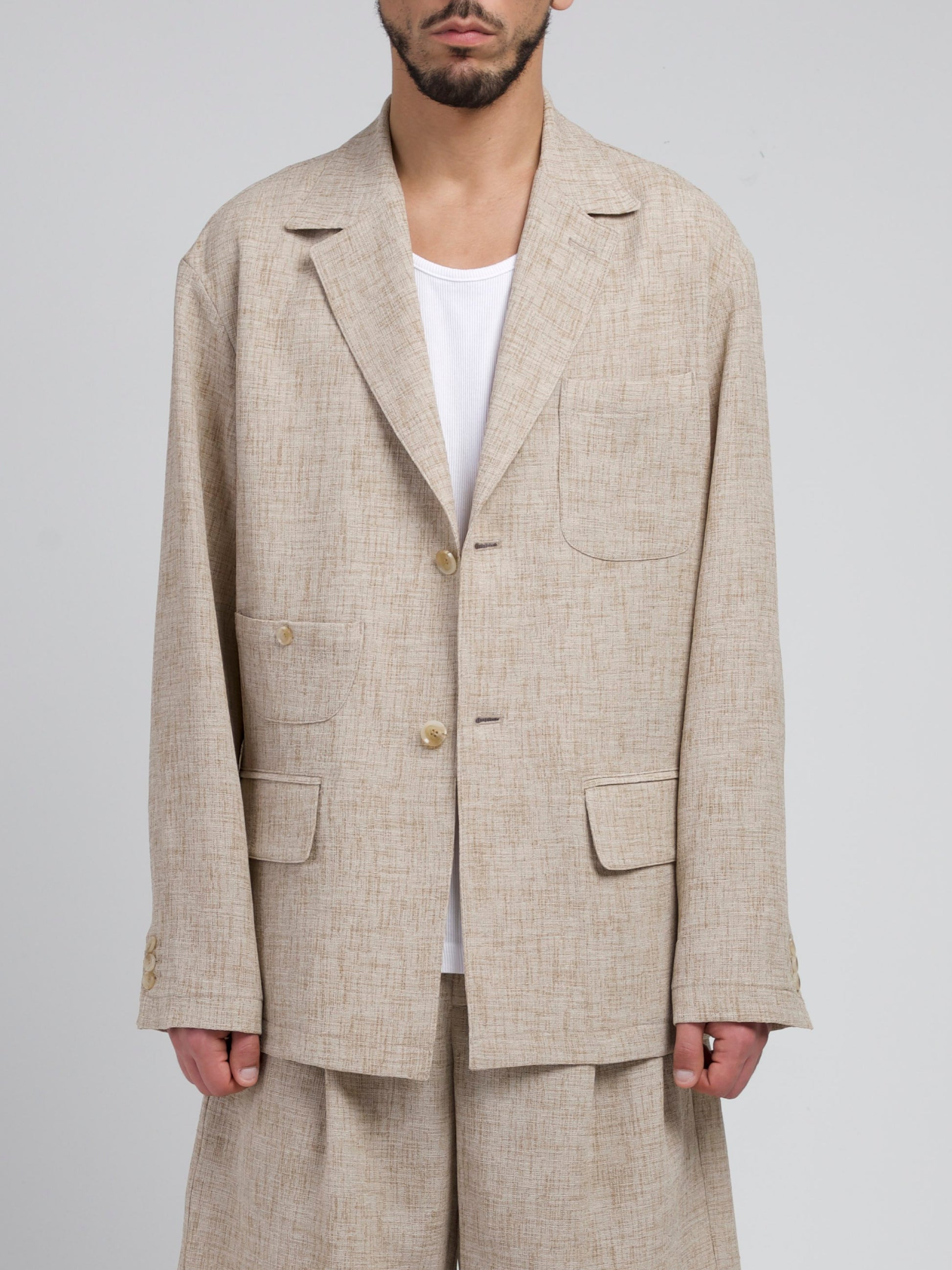 SHOULDER - 53 / CHEST - 115 / SLEEVE - 63 / OUTER SEAM - 75