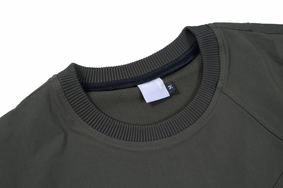 領口使用TR防鬆羅紋,加上防鬆固定織帶
