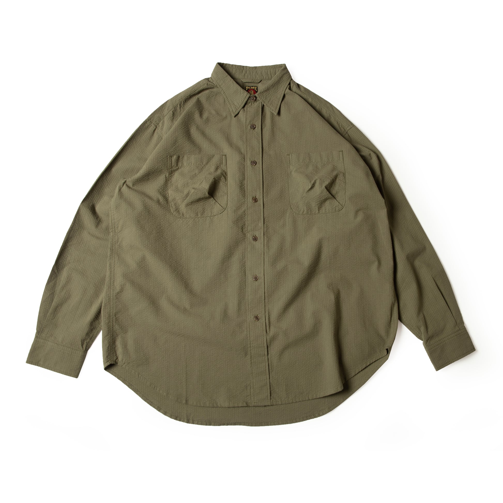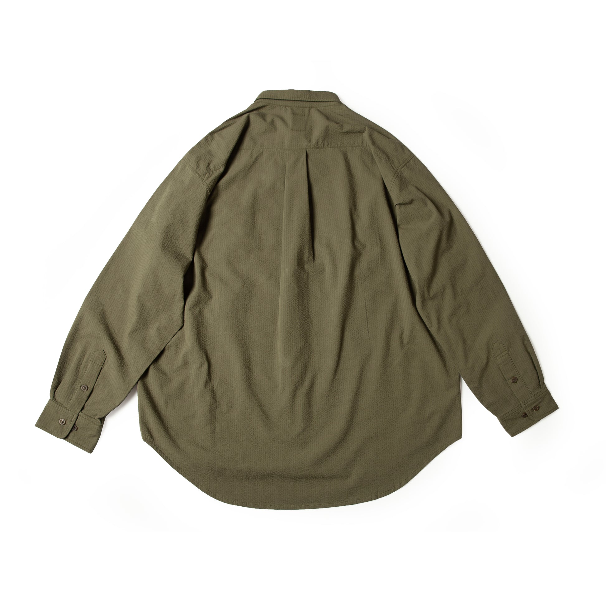 - Seersucker overshirt is cut for comfort with extra room for movement through the chest, with a slightly dropped shoulder.
