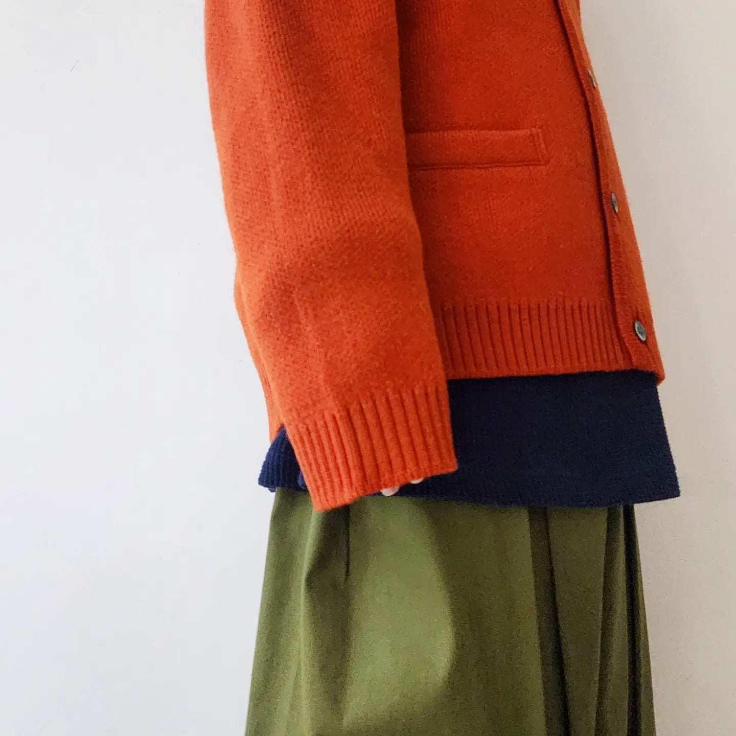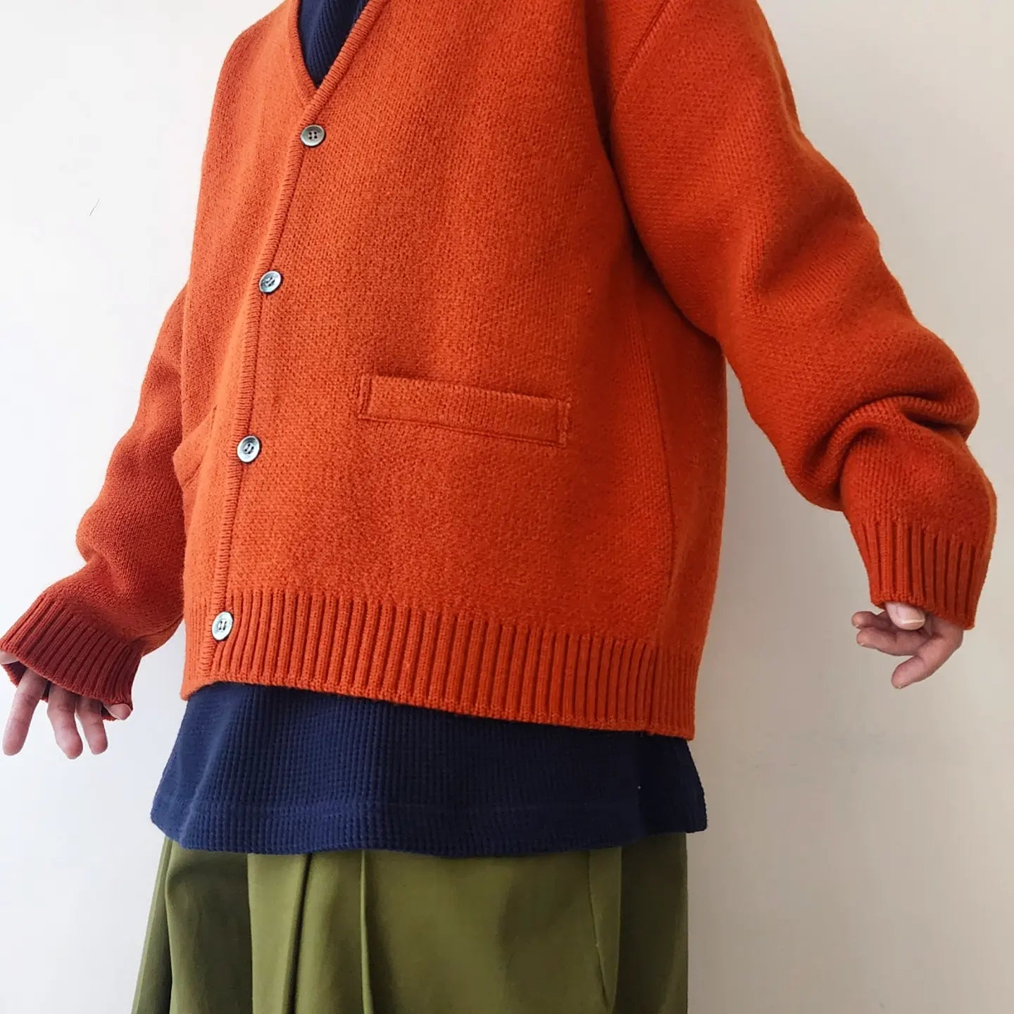 - New stock from EEL Products. Knit knitted in Mitsuke City, Niigata Prefecture, where Eel's classic "knit that doesn't pill" is produced. By lowering the position of the front buttons and linking the placket, he expresses his retro design that looks like old clothes.