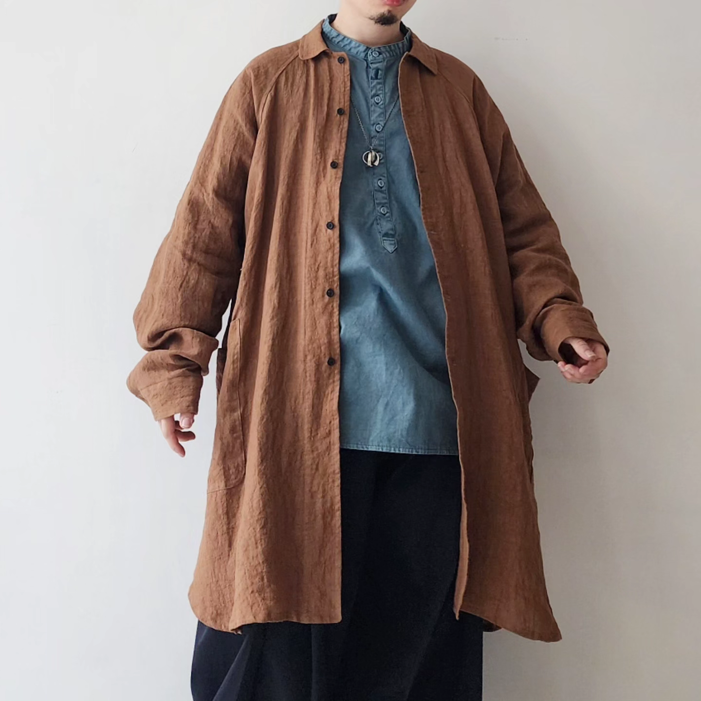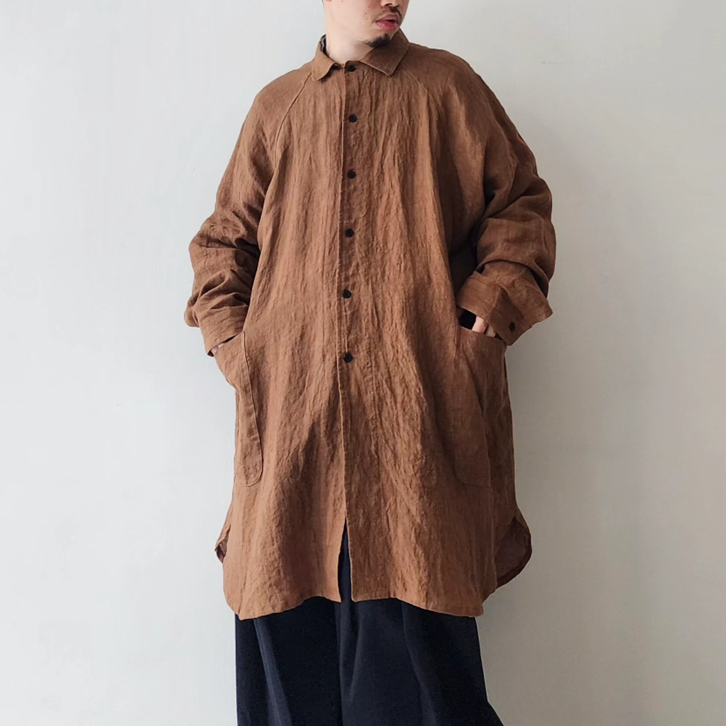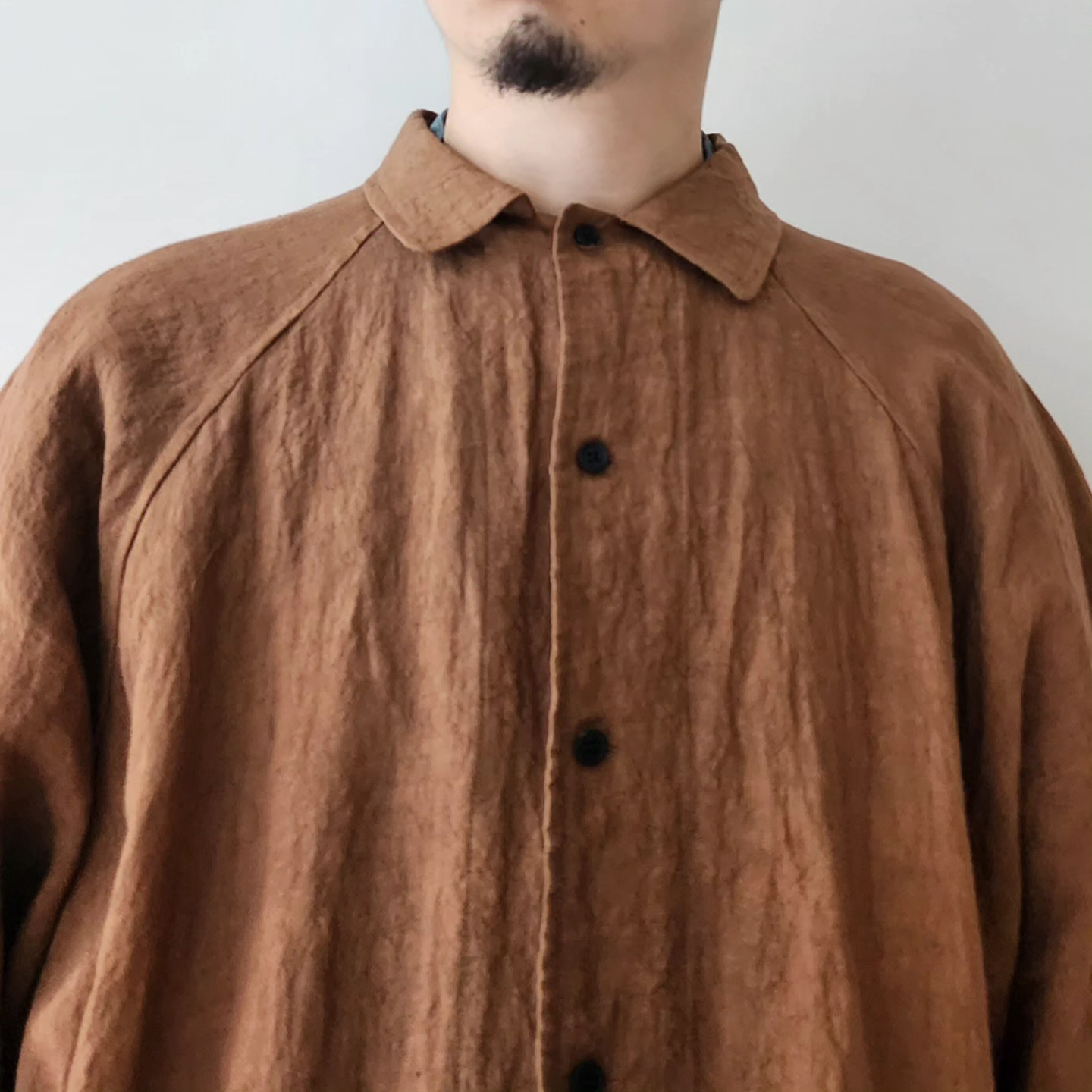 -This mid-length shirt gives the impression of coat with its raglan sleeves and side pockets, making it suitable for use as both inner layer and outer layer.