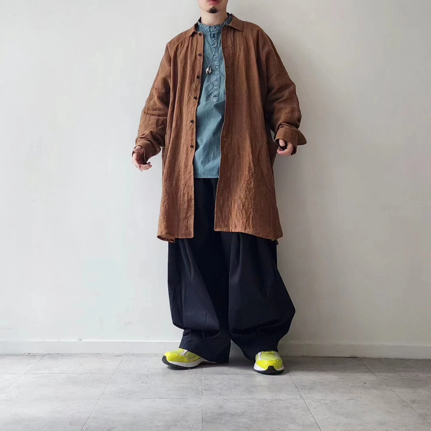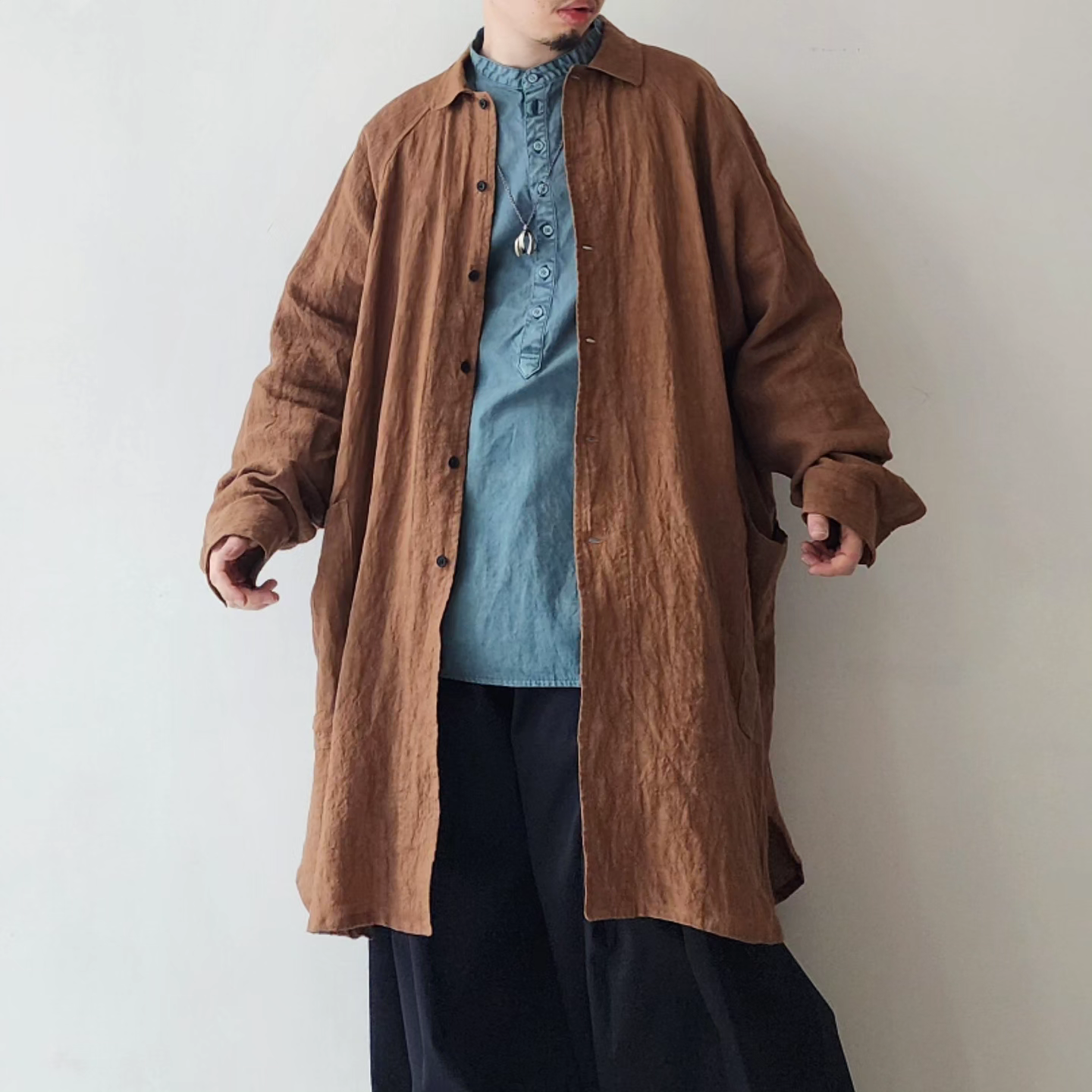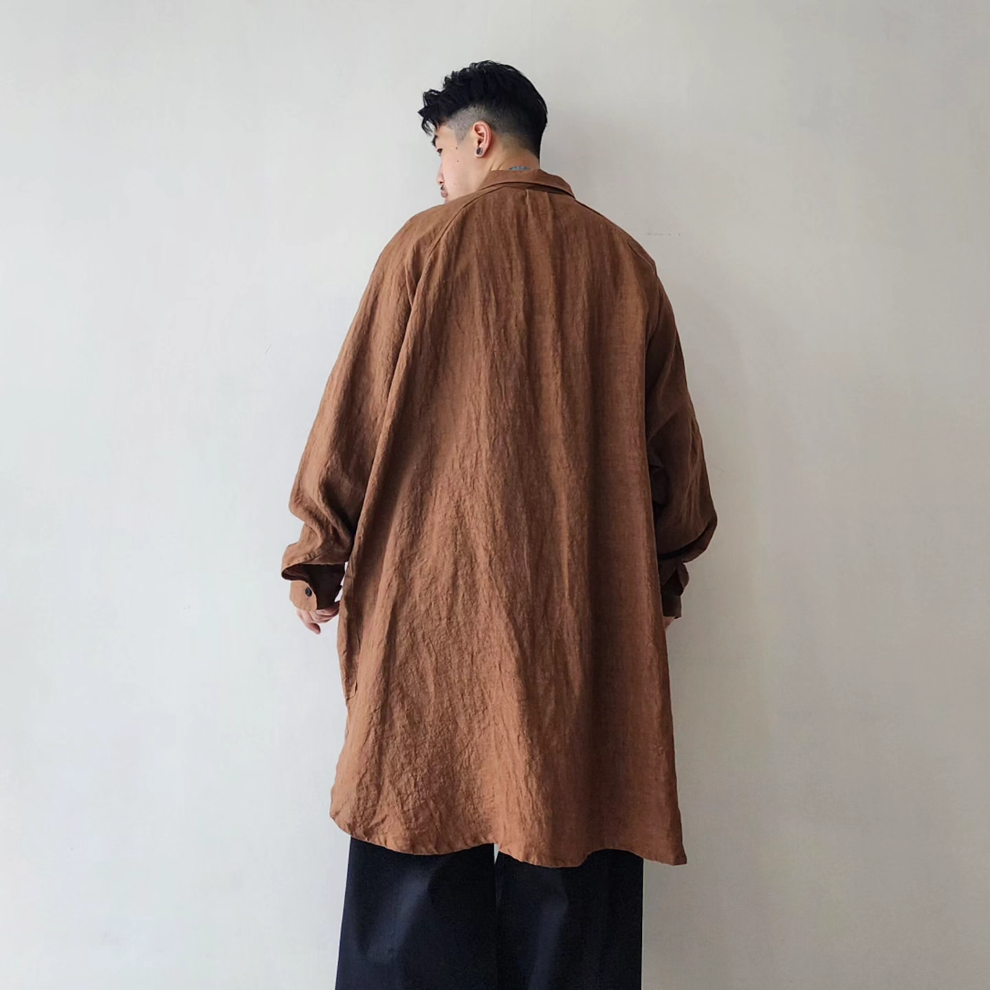 -This mid-length shirt gives the impression of coat with its raglan sleeves and side pockets, making it suitable for use as both inner layer and outer layer.