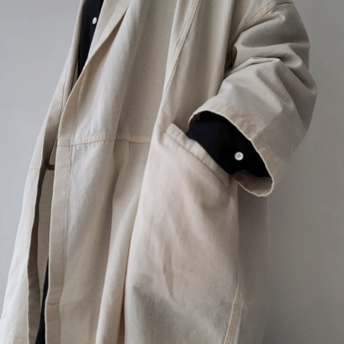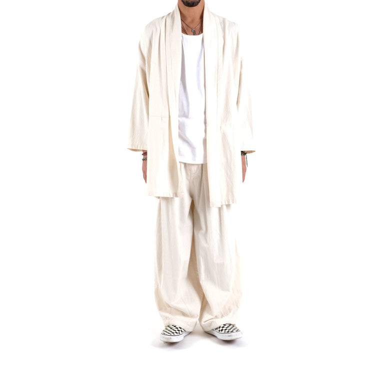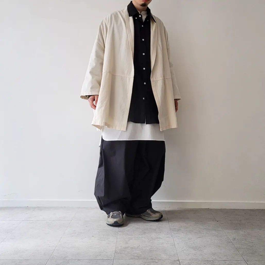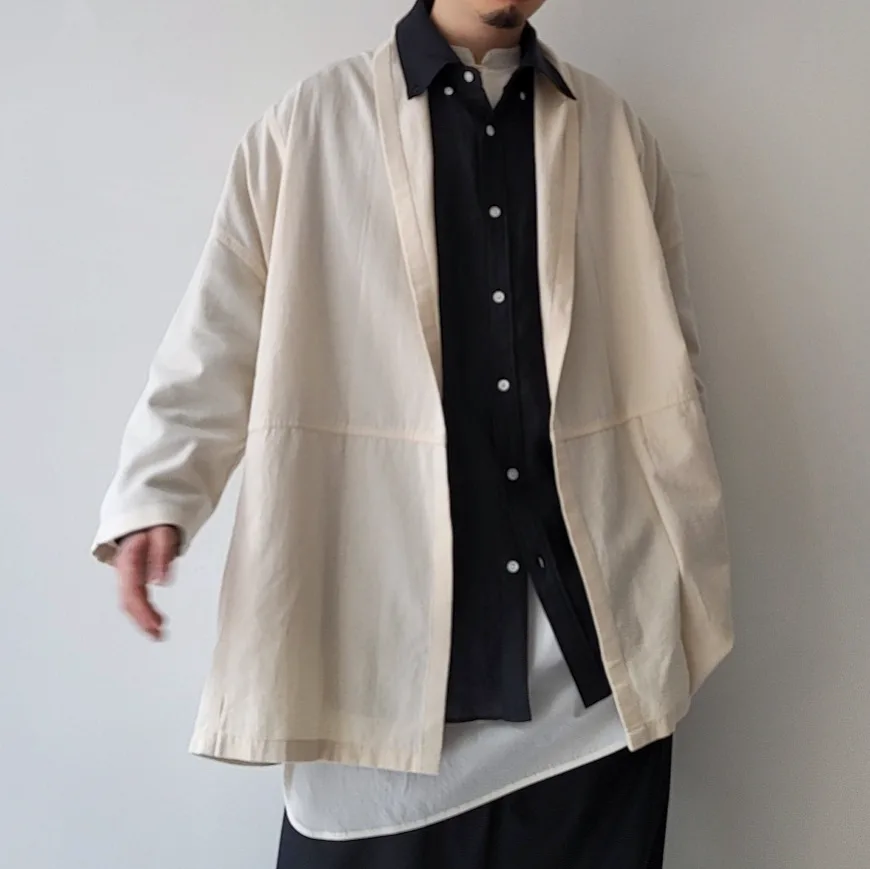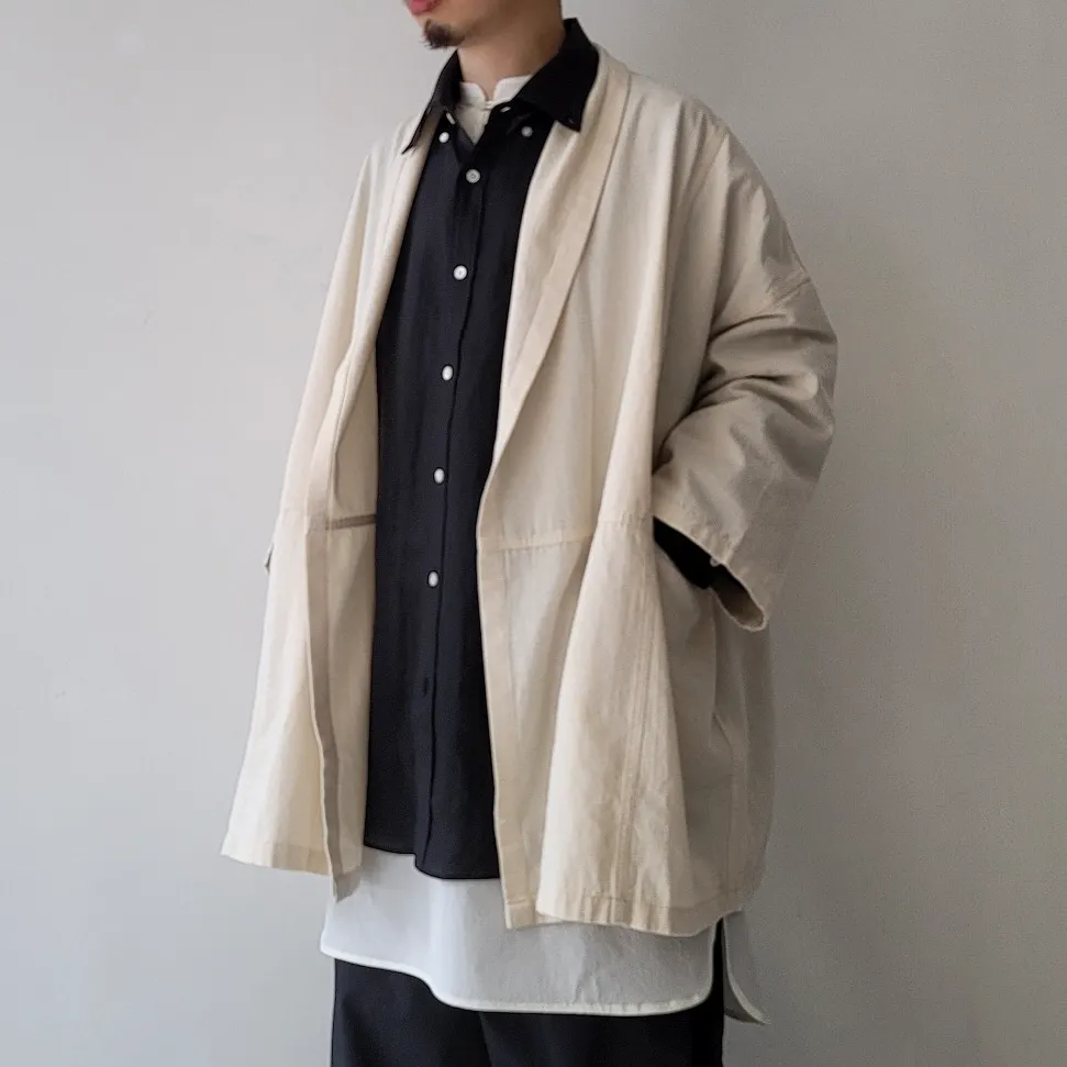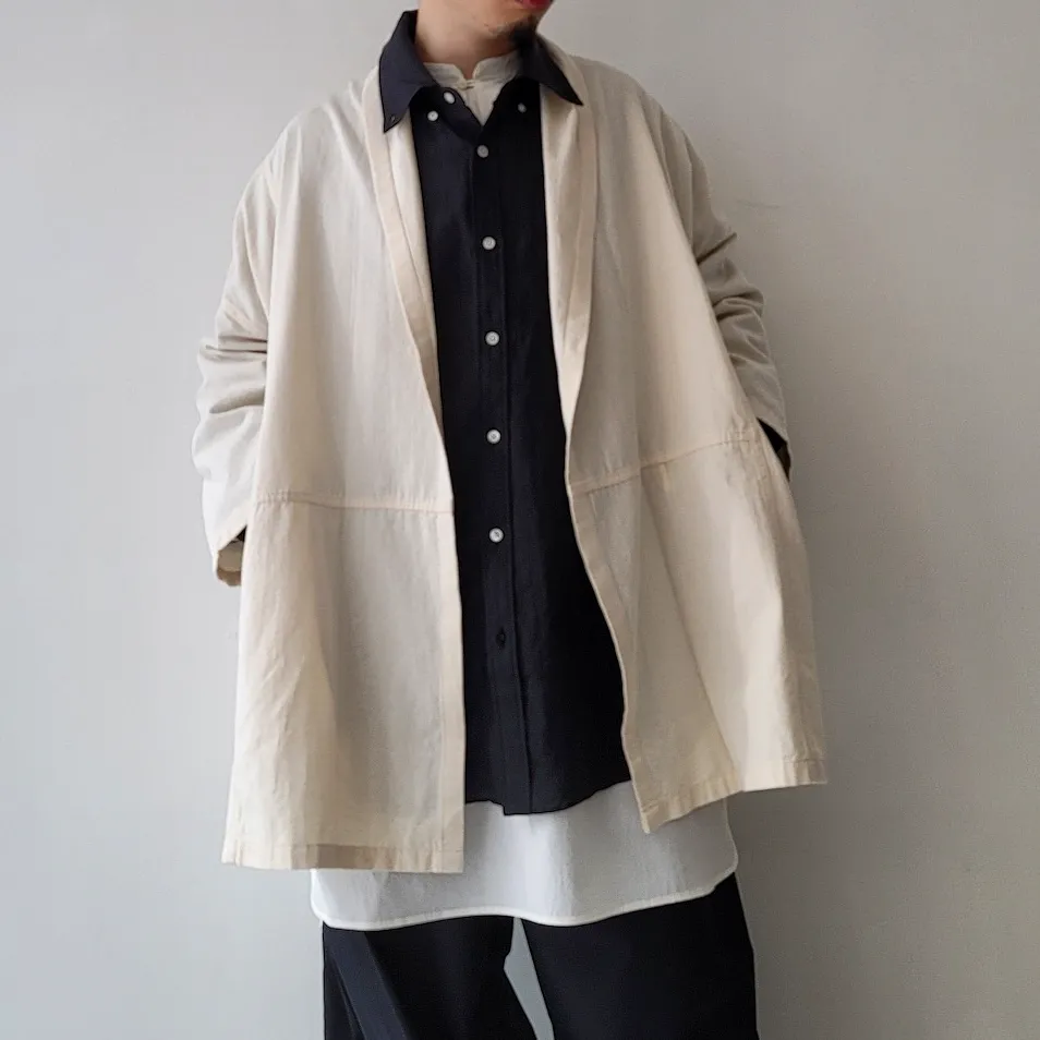 The organic cotton used to create this cape was slightly added to provide a comfortable wearing experience. With its loose silhouette, cropped sleeves, and the natural washed detail, the HIPPIE NORAGI CAPE will give you a natural oversized comfy look.