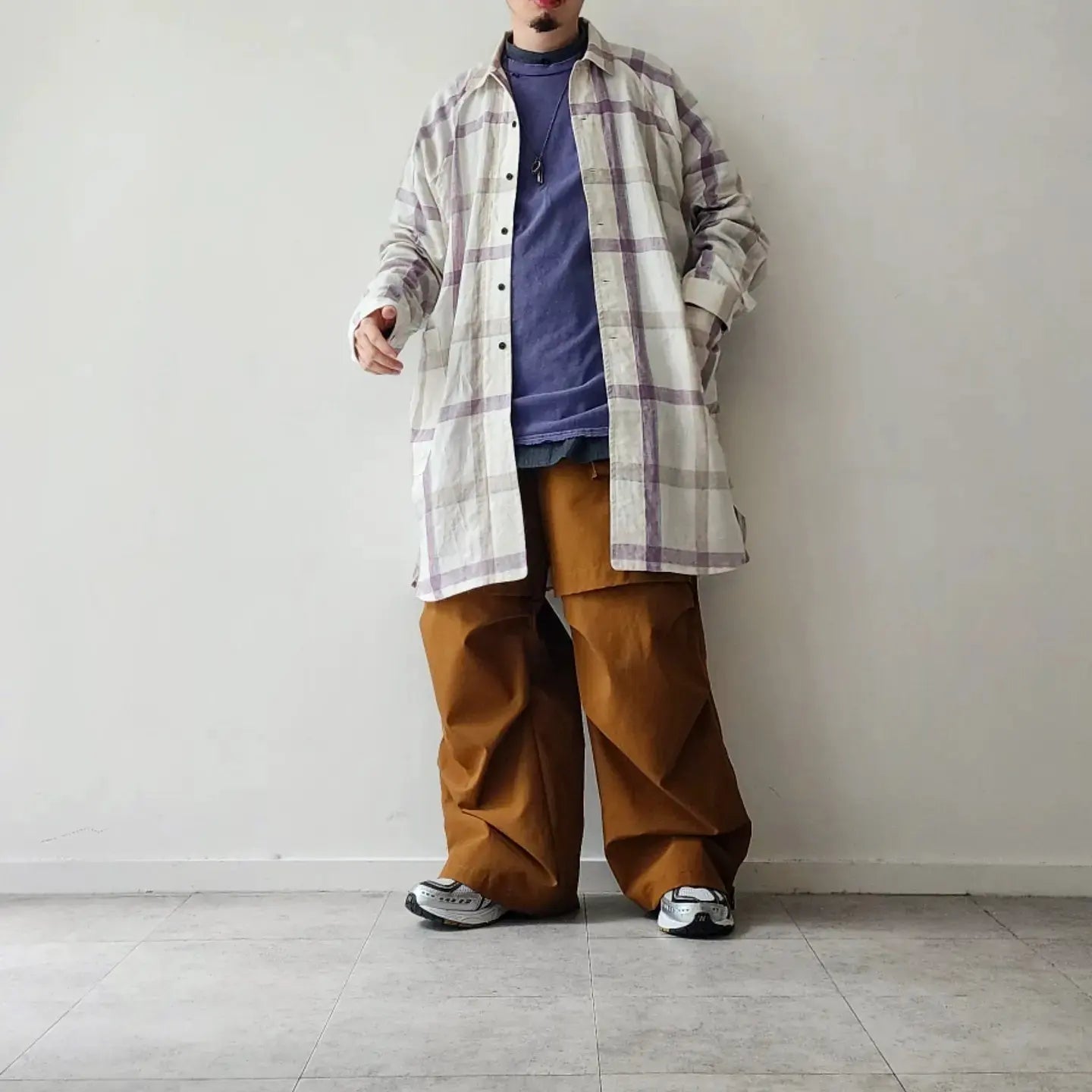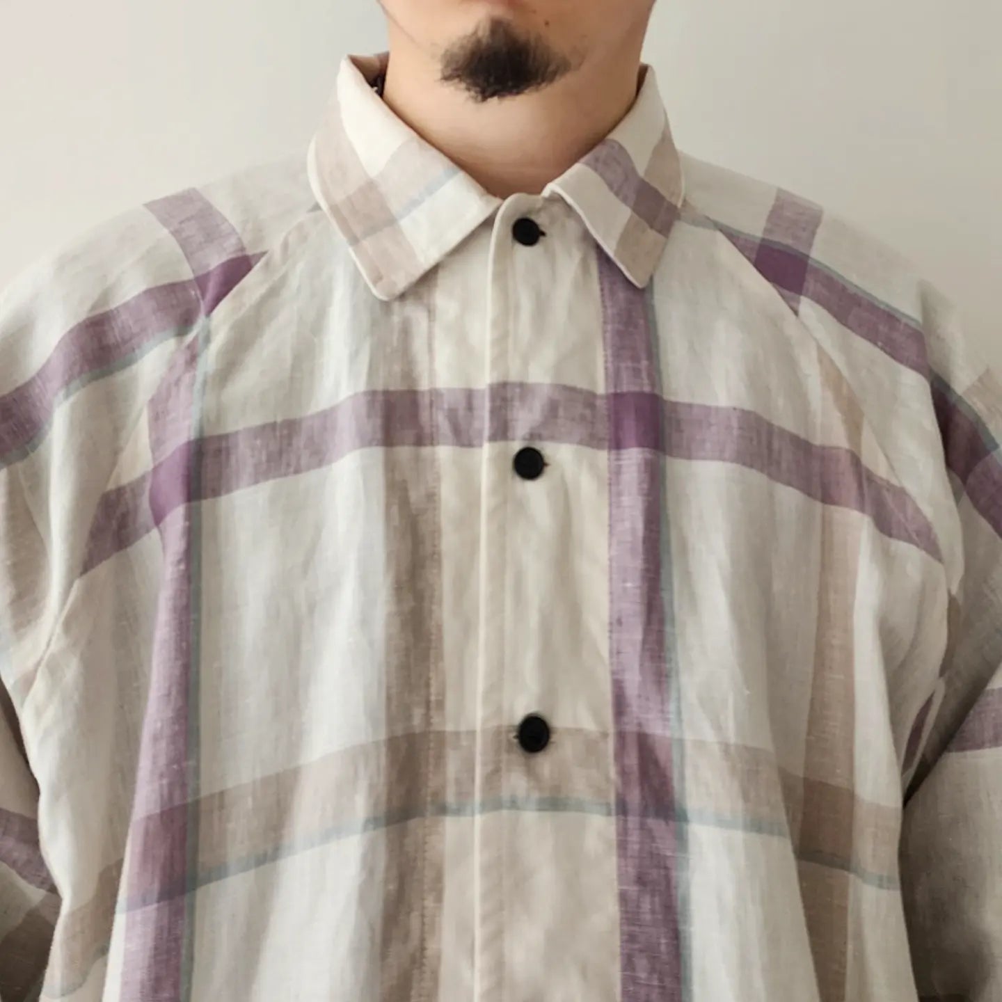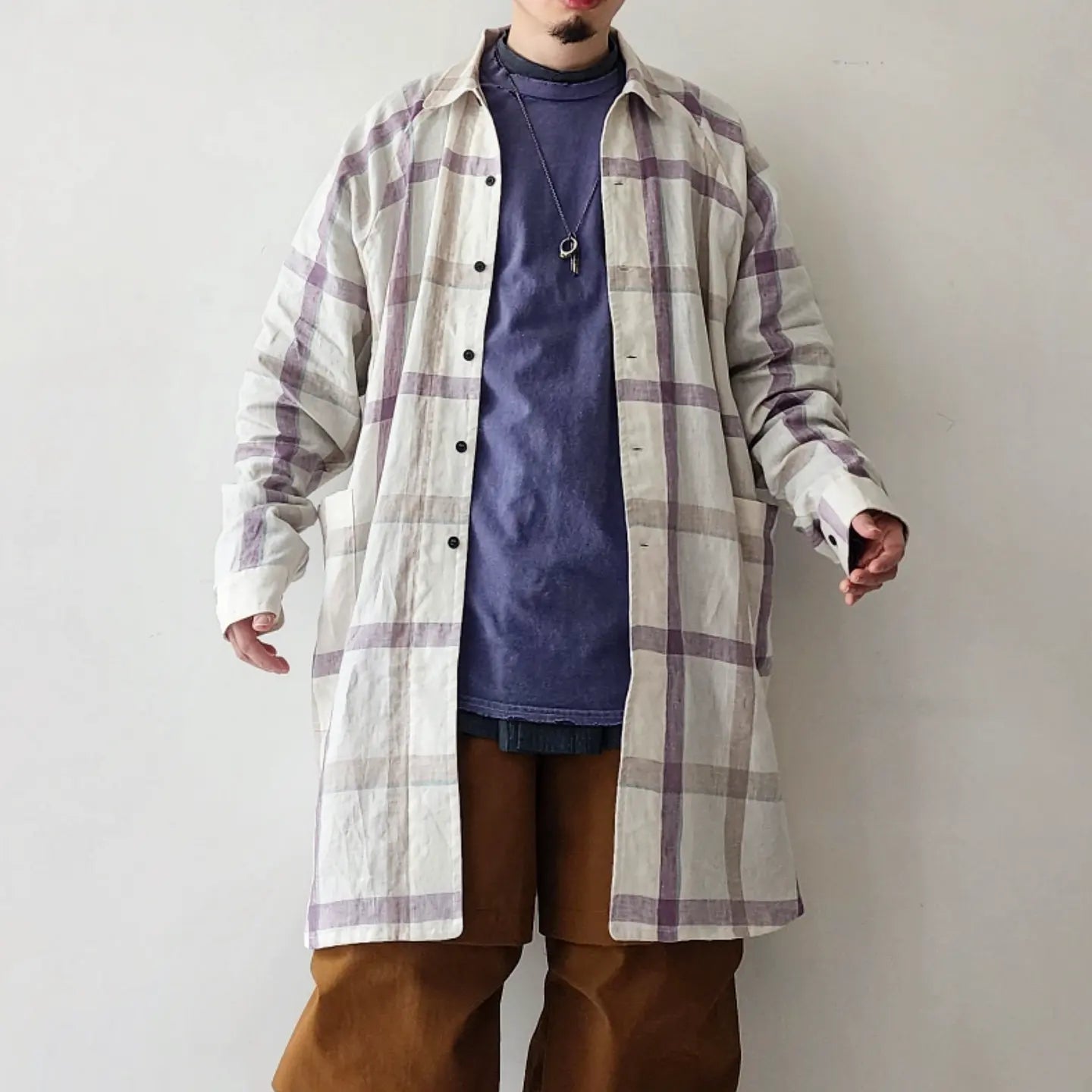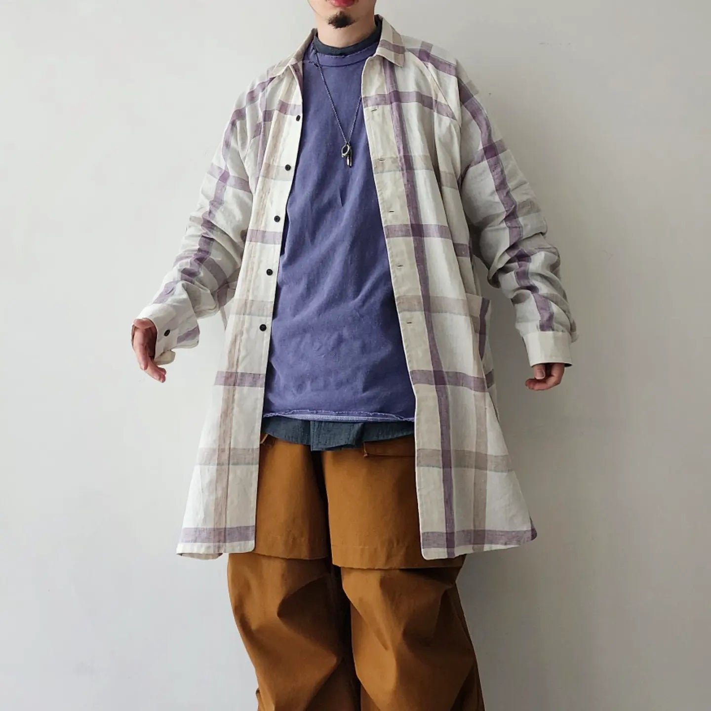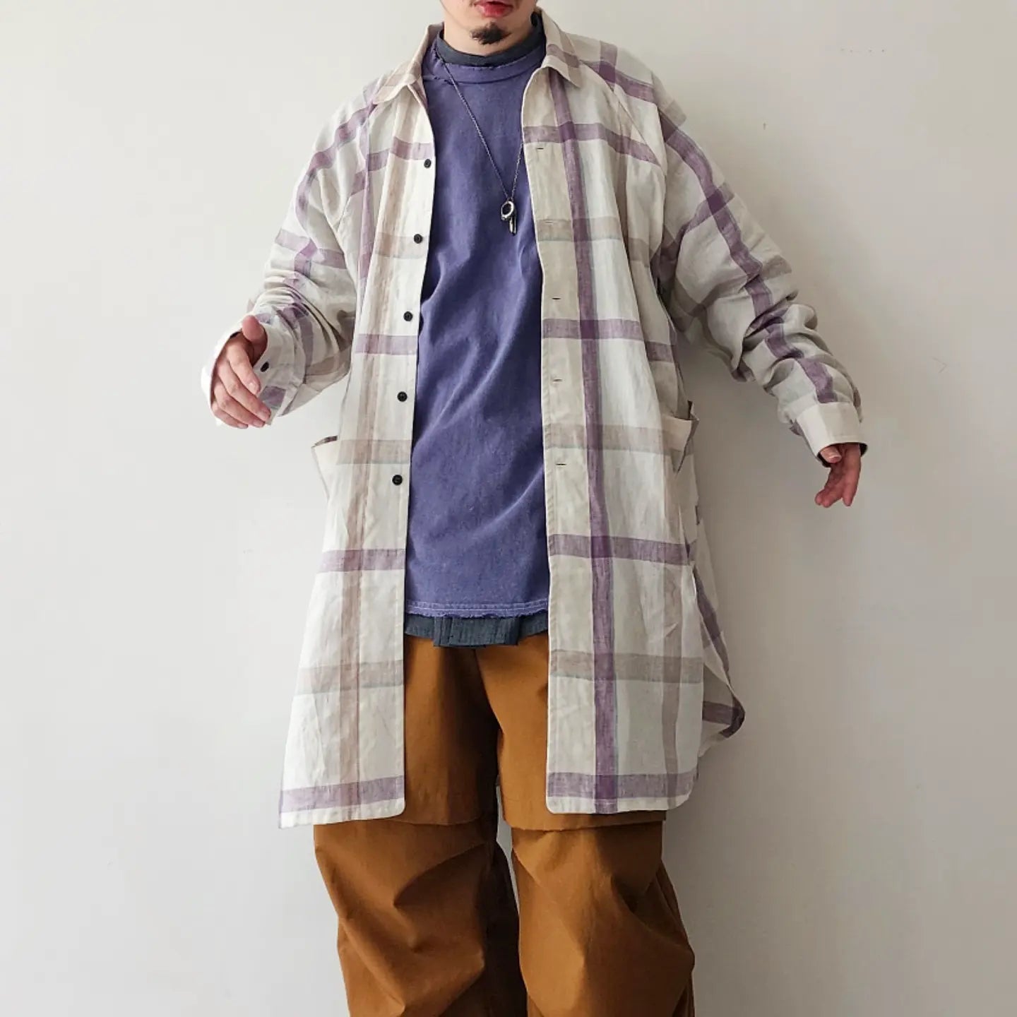 -This mid-length shirt gives the impression of coat with its raglan sleeves and side pockets, making it suitable for use as both inner layer and outer layer.