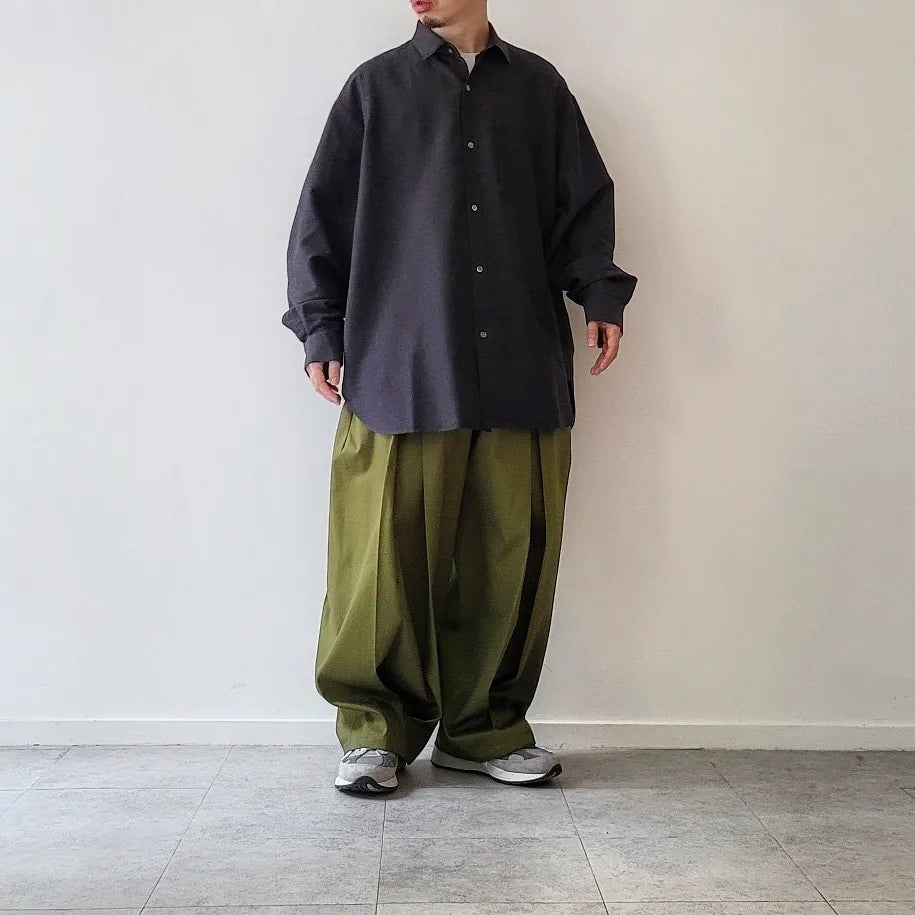 - The silhouette is Blanc YM's classic wide type. The pattern making with the back body larger than usual has an appropriate sense of distance from the skin and has an exquisite wide silhouette.