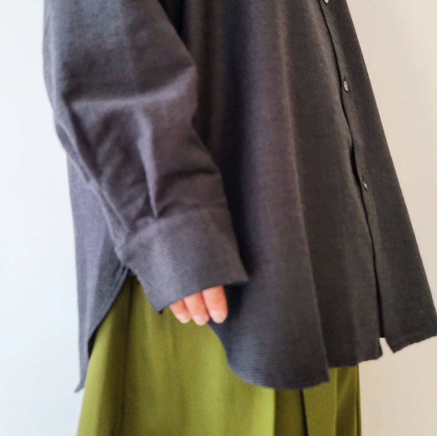 It is the first place that has luster and volume of wool. In addition, there is a washable proposal only for hand washing due to the crimping process. The pattern is a delicate and elegant gray multi-check and a clear black watch that is intentionally composed of two colors.