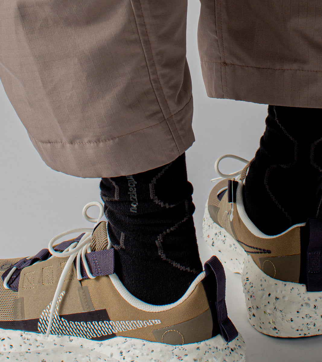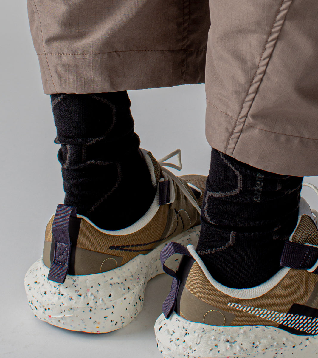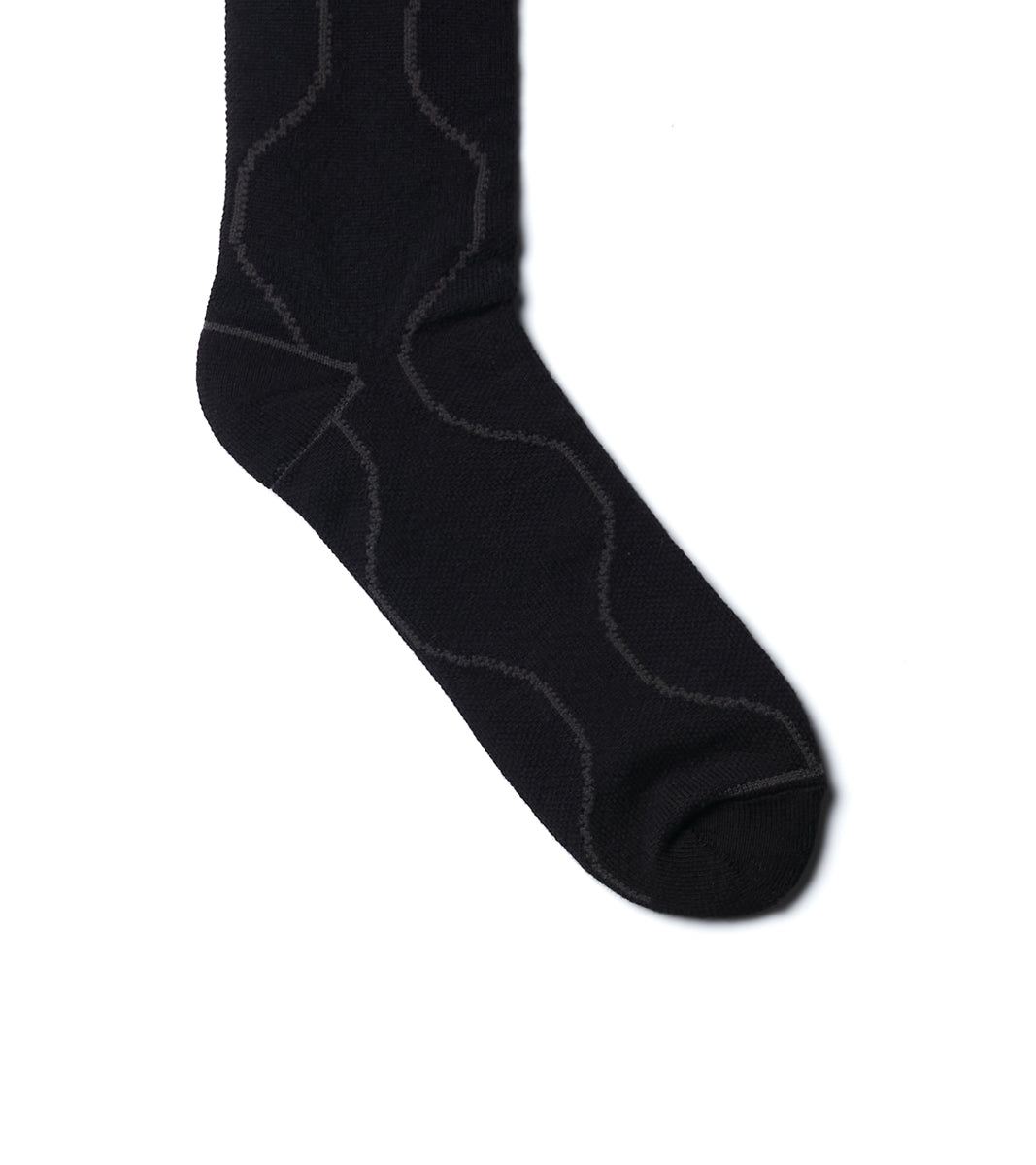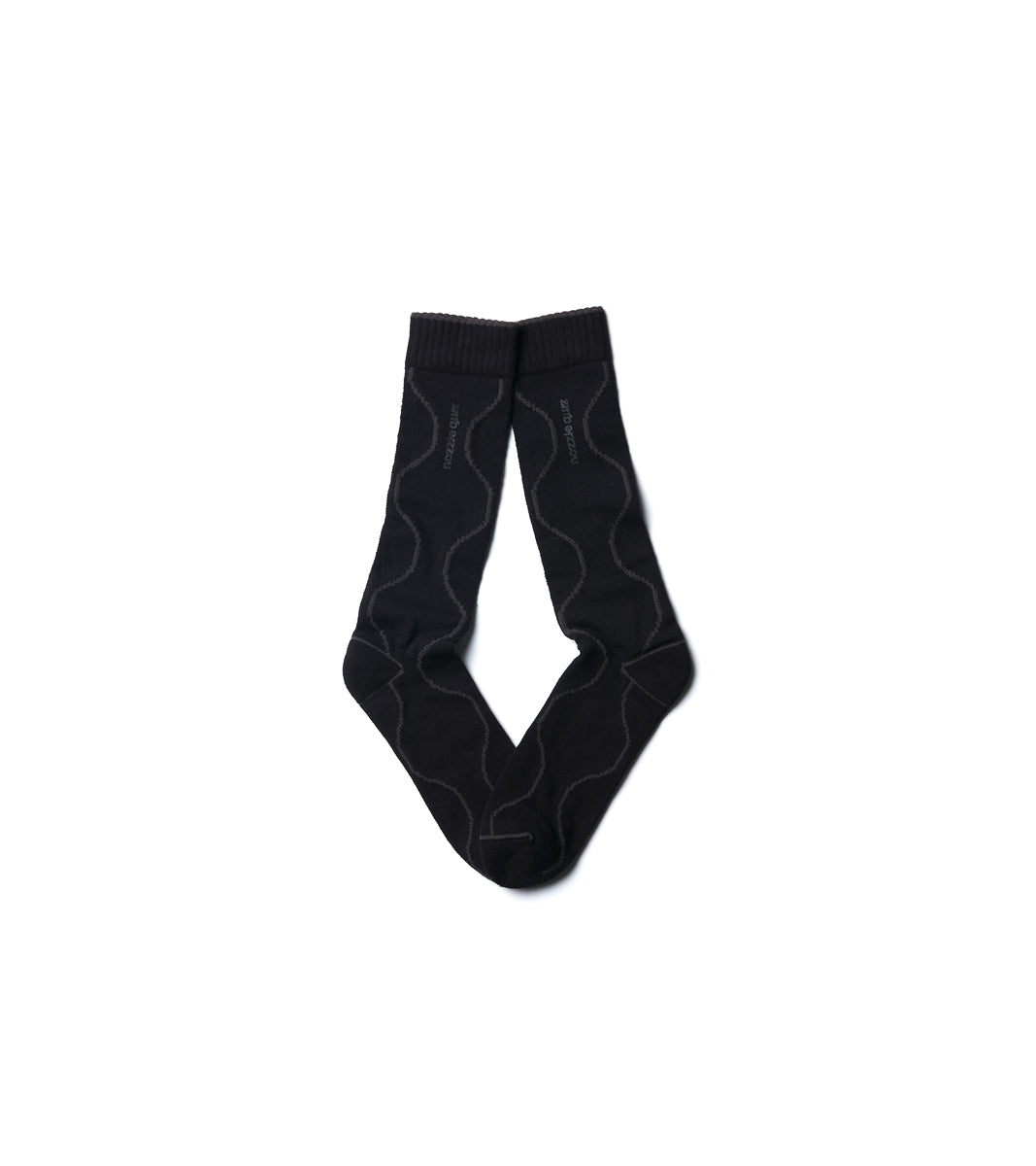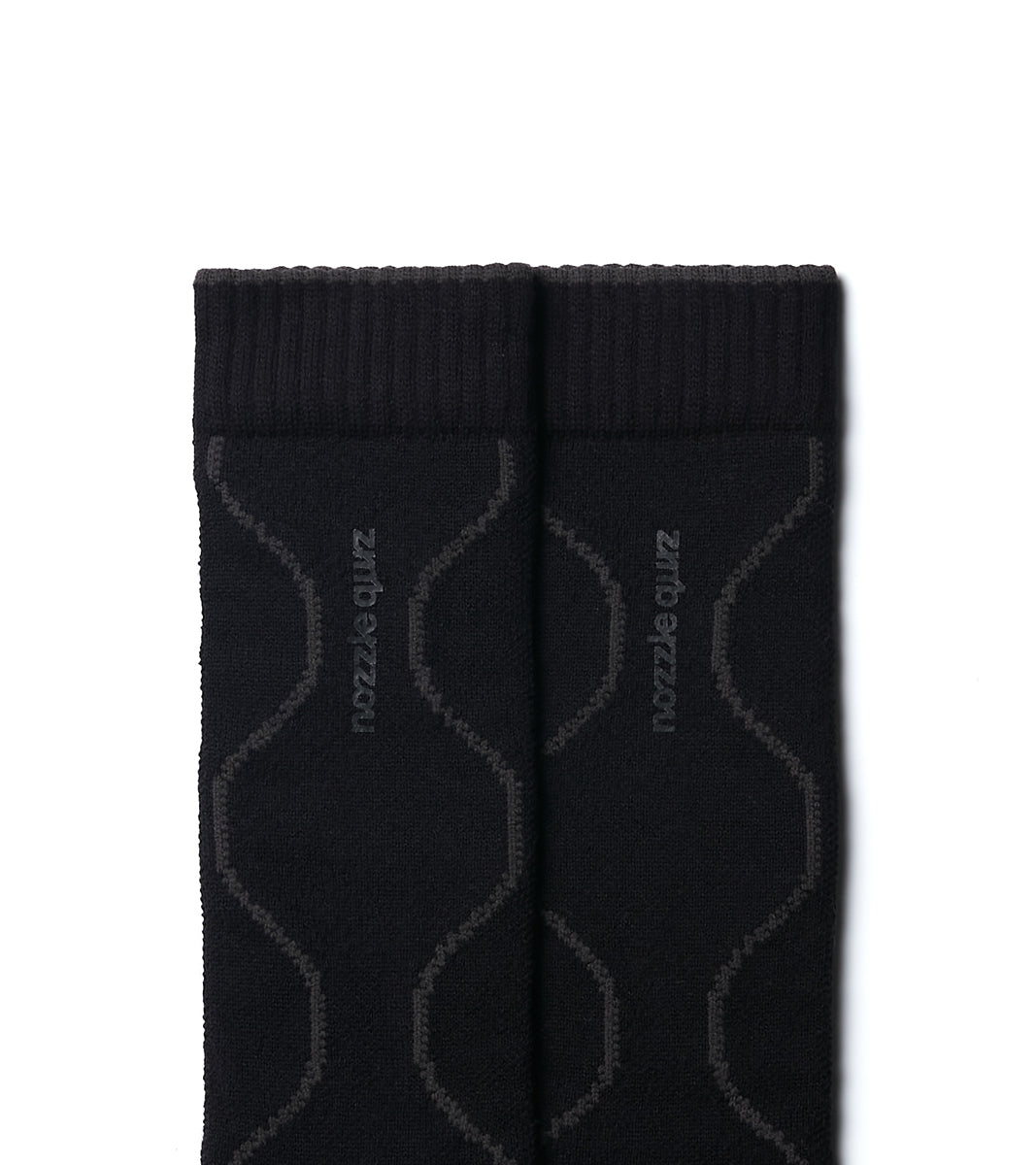The third and final design of the Digit No. collection transforms the quilted layer of standard military winter jackets into patterns for the sock and uses thick yarn for a more rustic, unruly look that, when observed in detail, presents camouflage textures. The socks are available in three different colors that will blend perfectly into any fall/winter outfit. Inspired by the epic world in 1917, the Digit No. collection adopts elements from military uniforms to deliver three drastically different silhouettes.
