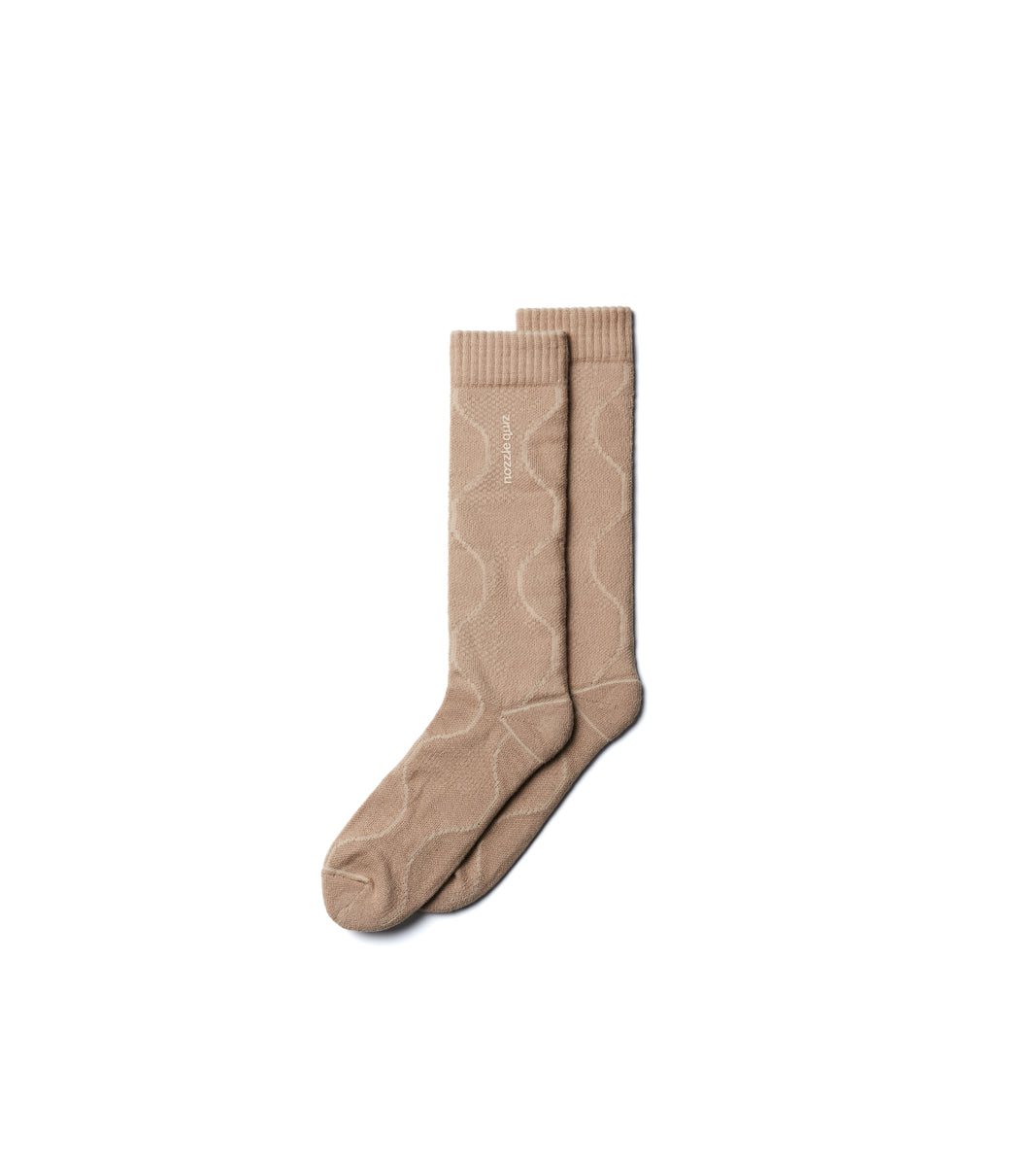 Style : Digit No.Color : Quilted Brn, Quilted Blk, Quilted GrnSize : 23~29cmComposition : 51%Cotton, 40%Nylon, 6%Skinlife®, 3%Lycra®Digit No.The third and final design of the Digit No. collection transforms the quilted layer of standard military winter jackets into patterns for the sock and uses thick yarn for a more rustic, unruly look that, when observed in detail, presents camouflage textures. The socks are available in three different colors that will blend perfectly into any fall/winter outfit.Inspired by the epic world in 1917, the Digit No. collection adopts elements from military uniforms to deliver three drastically different silhouettes.