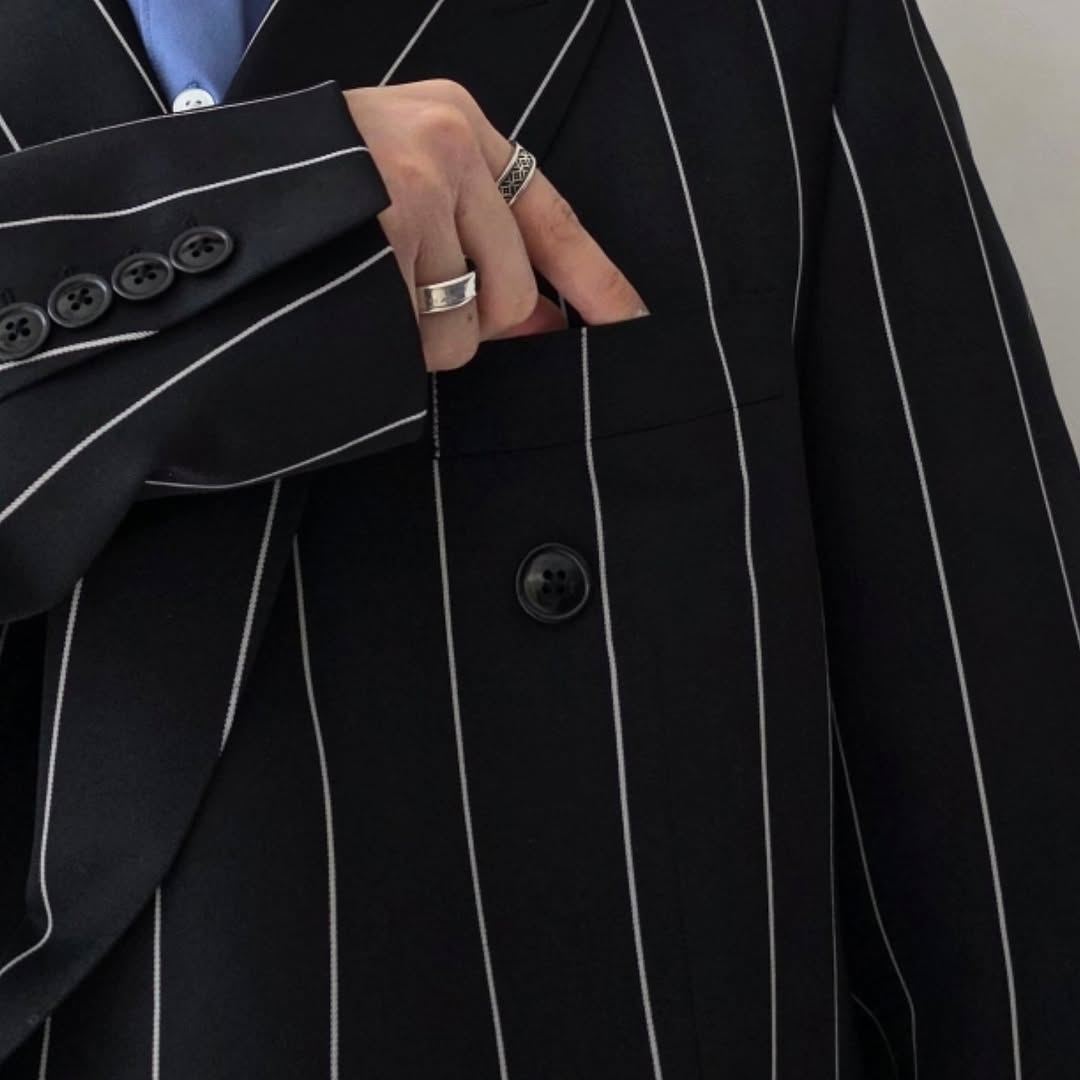 A double-breasted version of REVERBERATE's signature suit jacket.